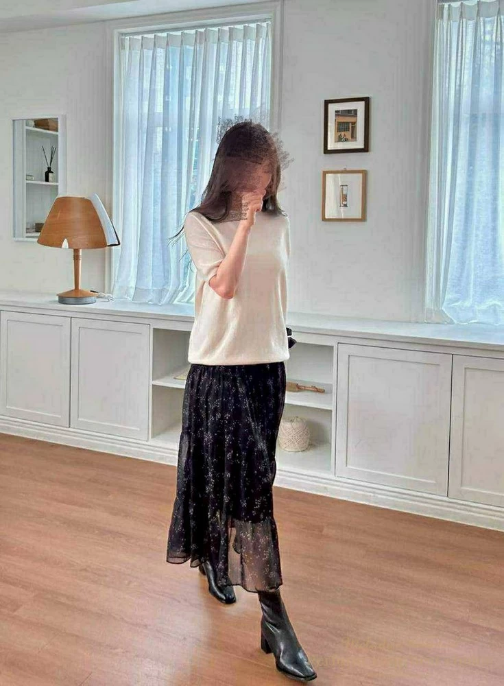 2511-150 質感閃光圖騰蛋糕裙 (4色)
