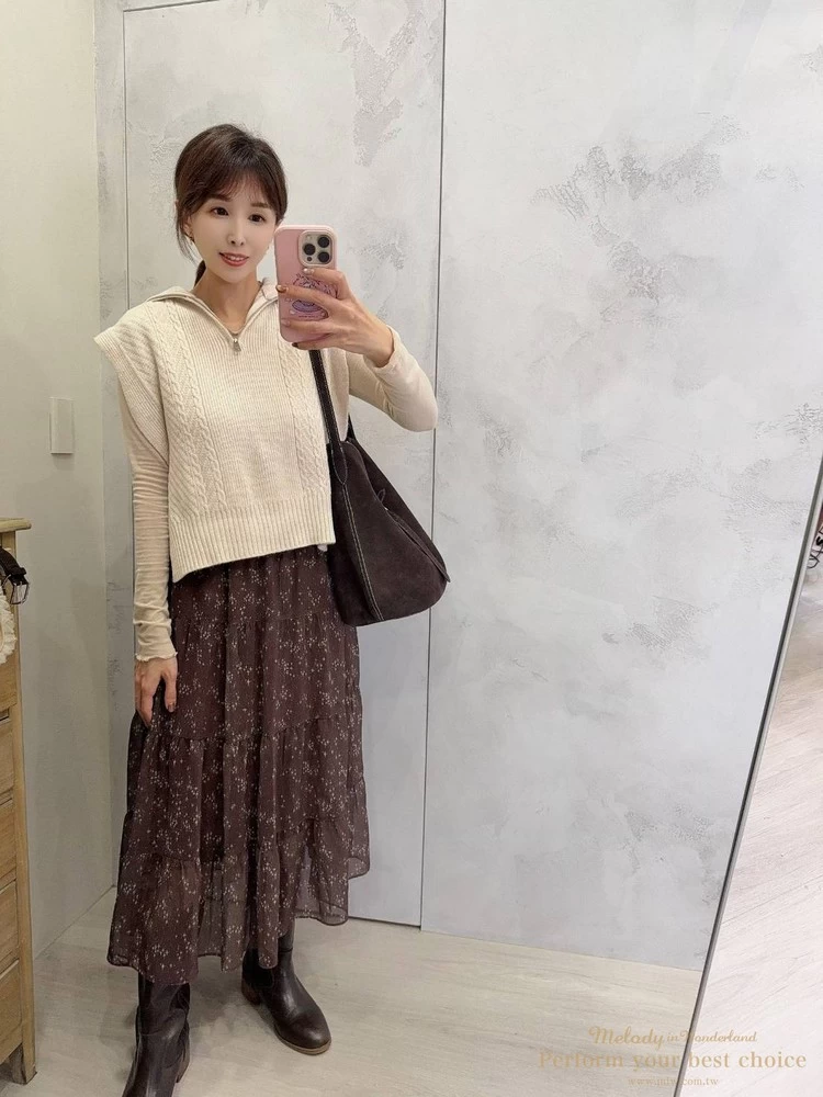 腰寬鬆緊帶28-56(22-44.1吋)/臀寬彈性內裡56(44.1吋)/臀寬59(46.5吋)/內裡裙長68/全長87