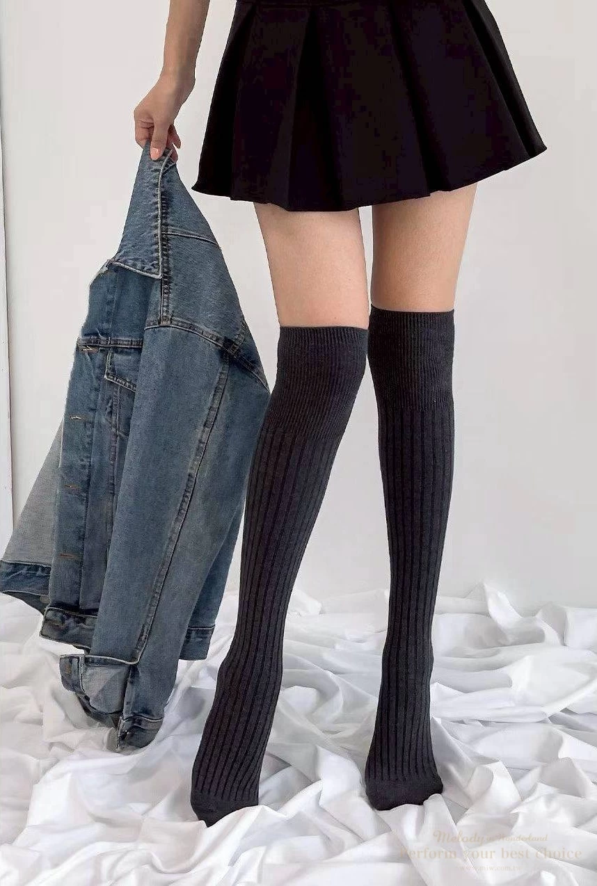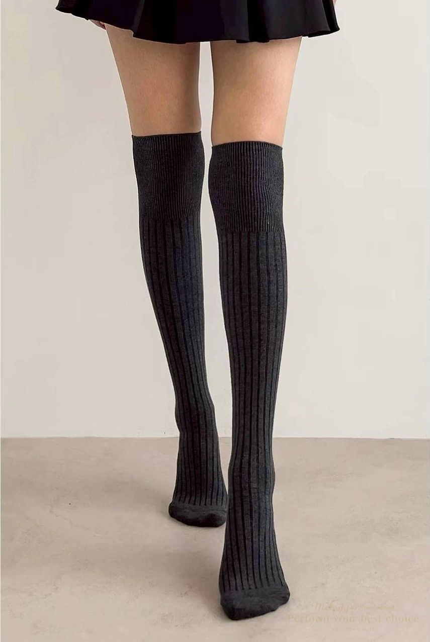 坑條膝上棉襪(3色)