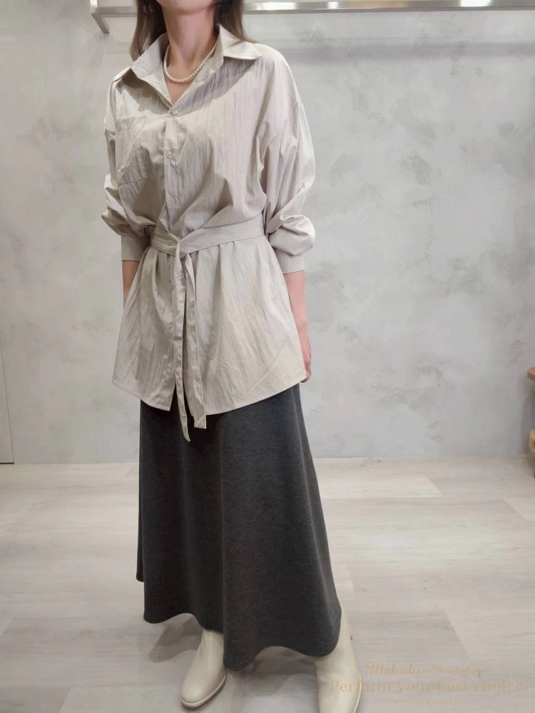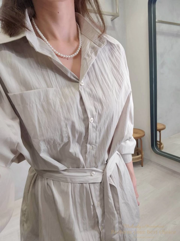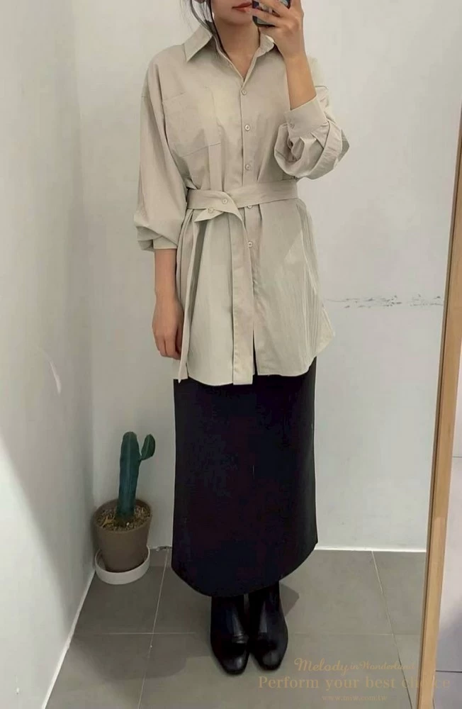 率性腰扣造型長版襯衫-附腰帶(3色)
