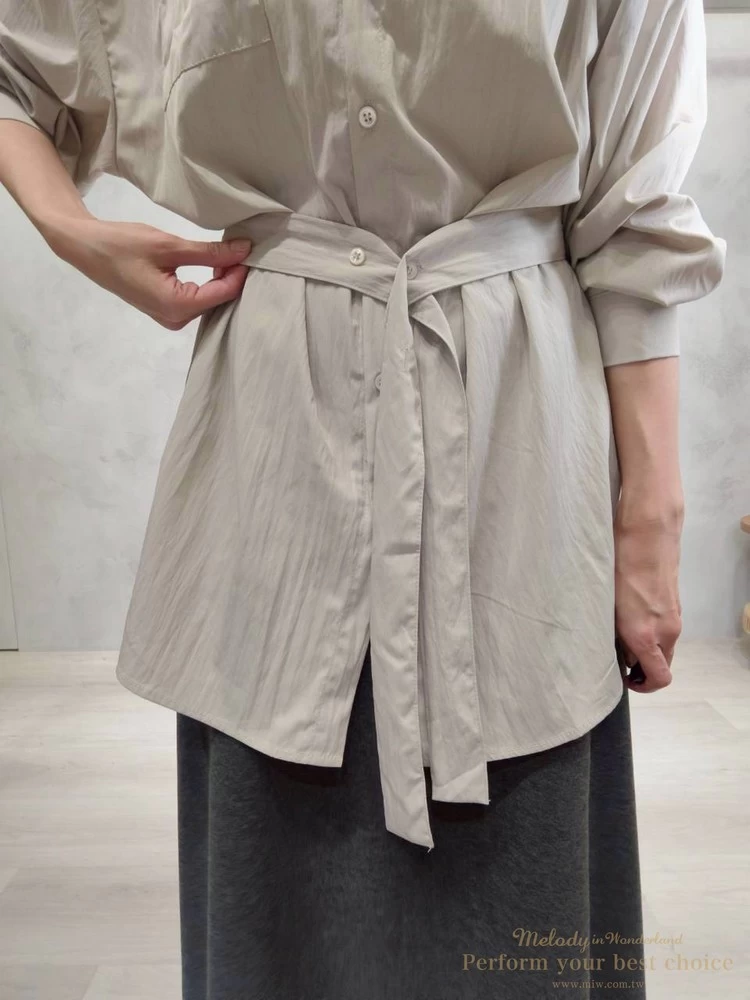 2601-004 率性腰扣造型長版襯衫-附腰帶(3色)