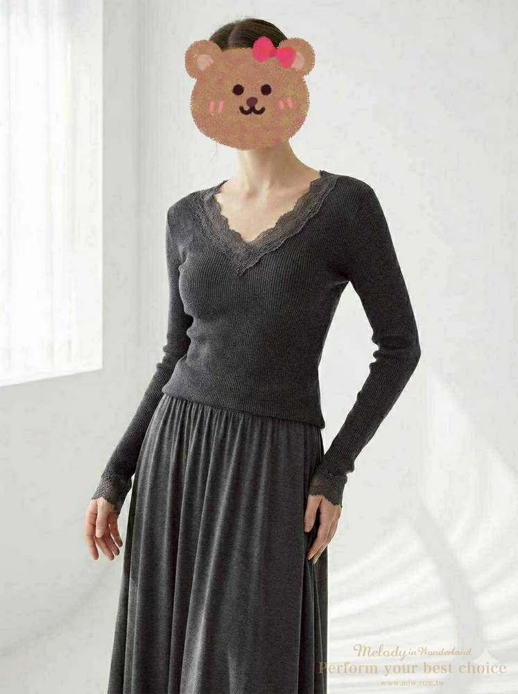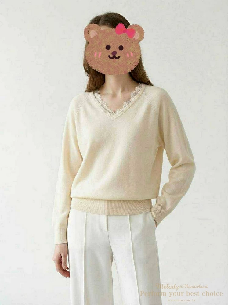 質感V領蕾絲捲邊下擺造型上衣(4色)
