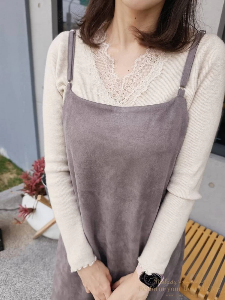 2601-010 質感V領蕾絲捲邊下擺造型上衣(4色)