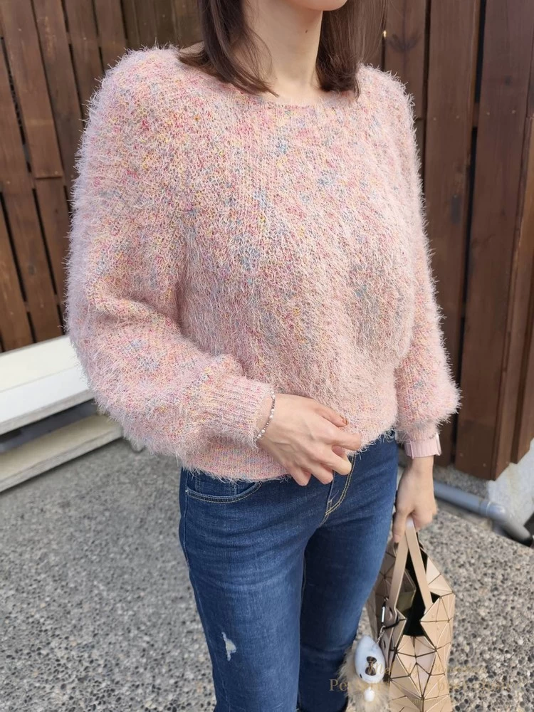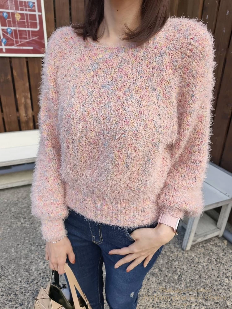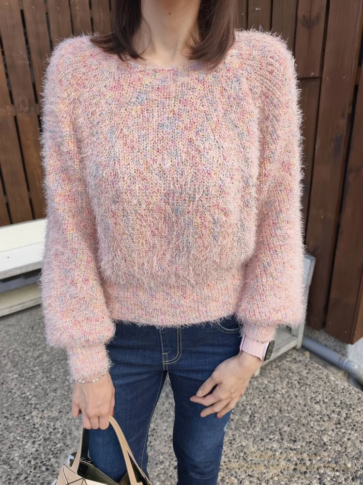 2601-011 繽紛混色毛毛縮腰造型上衣(3色)