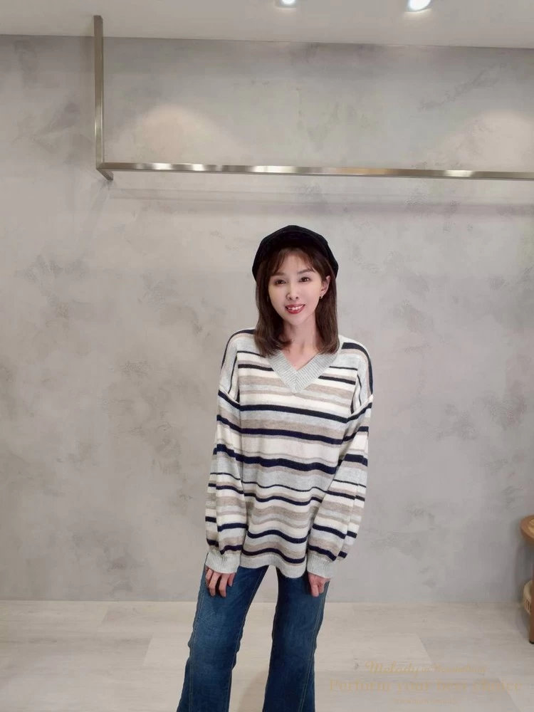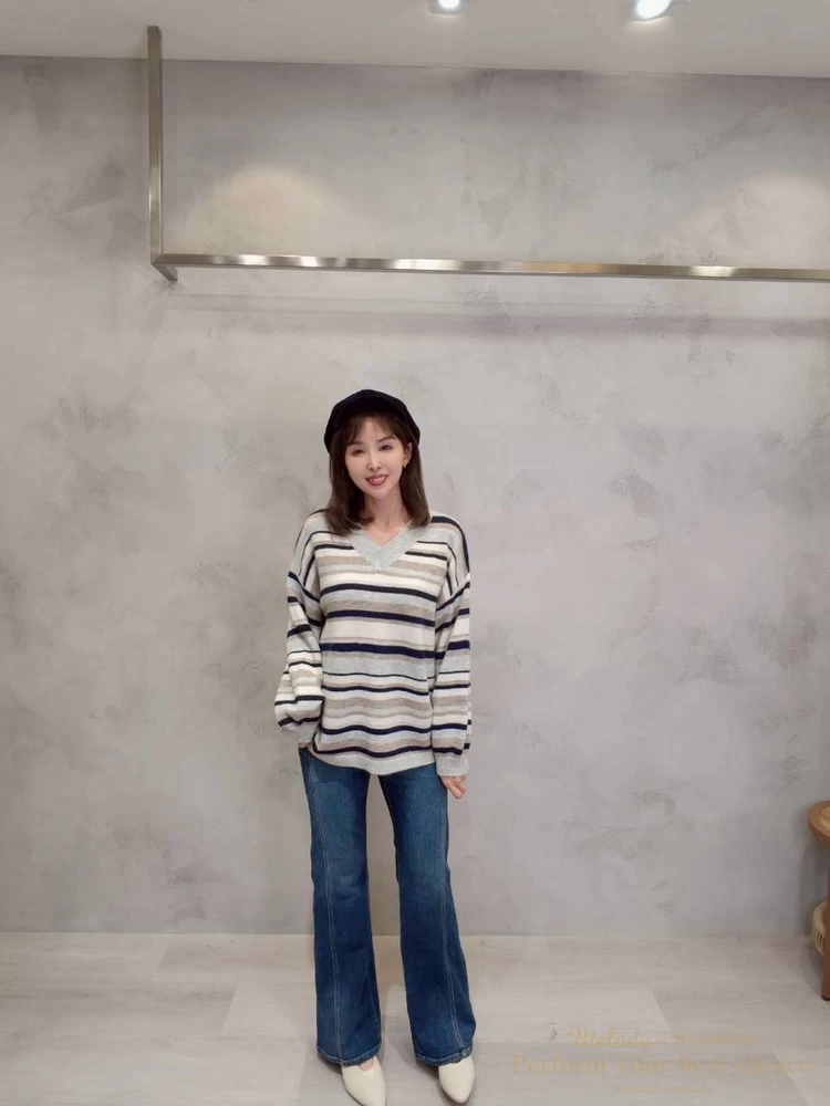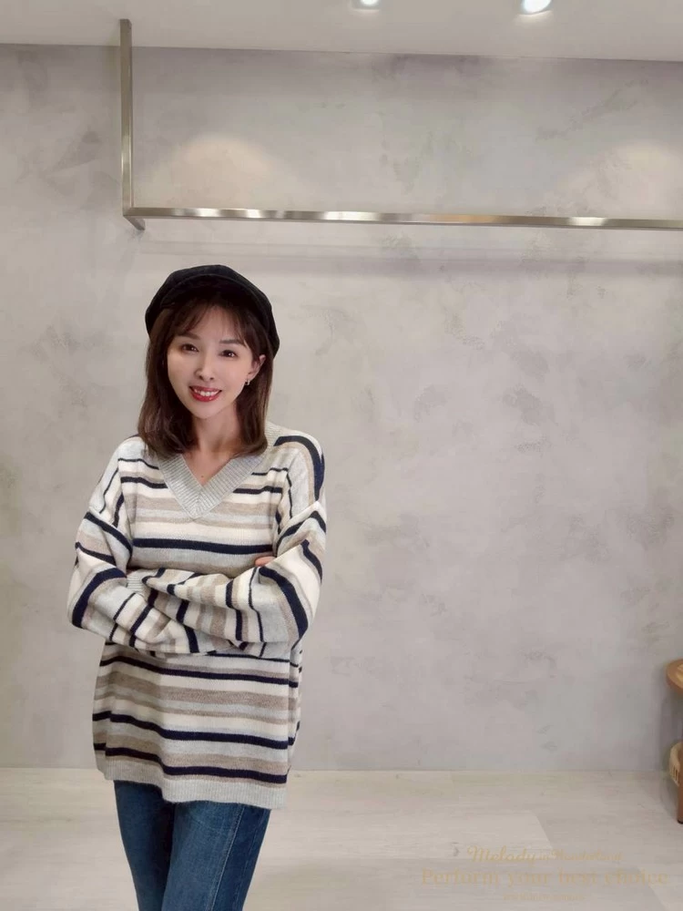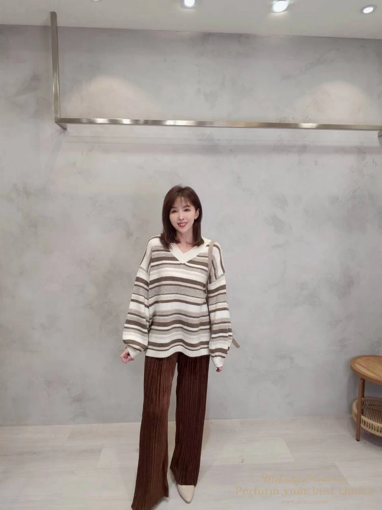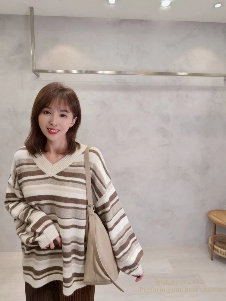 V領拚色條紋長版上衣(4色)