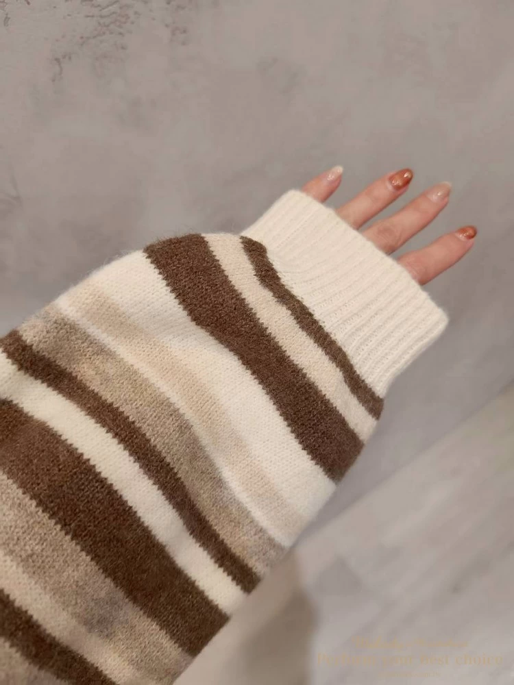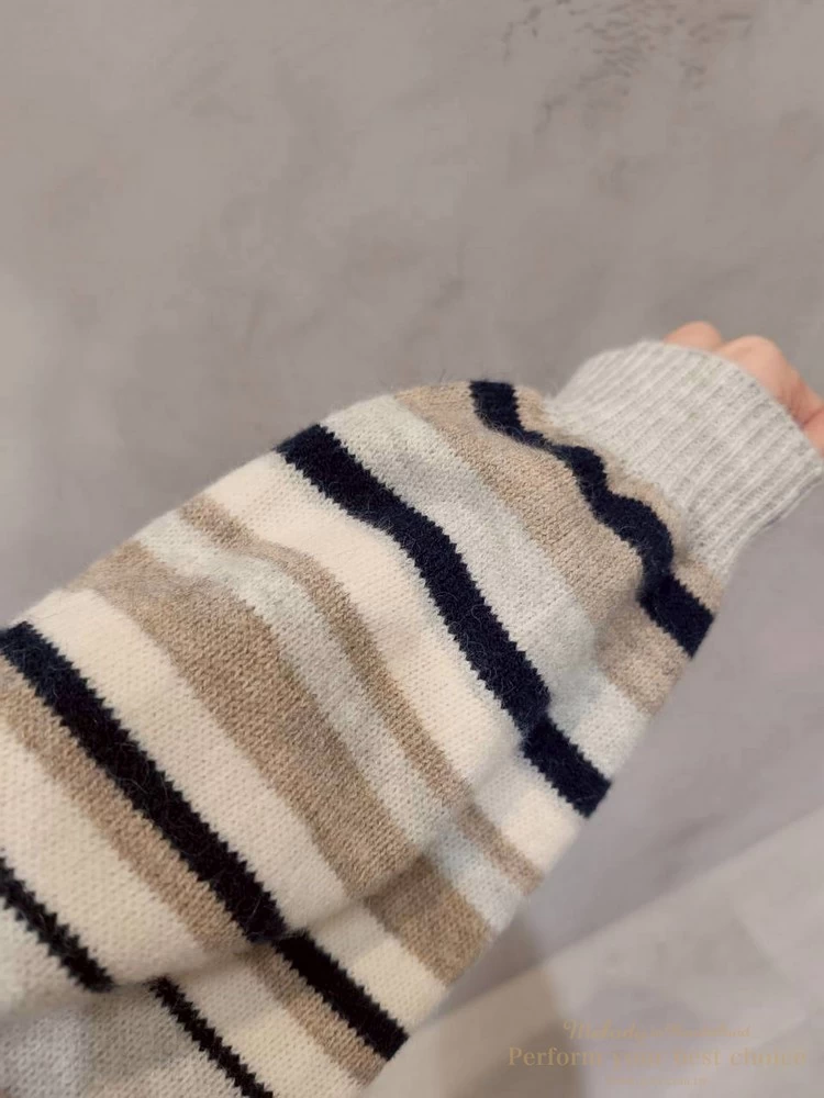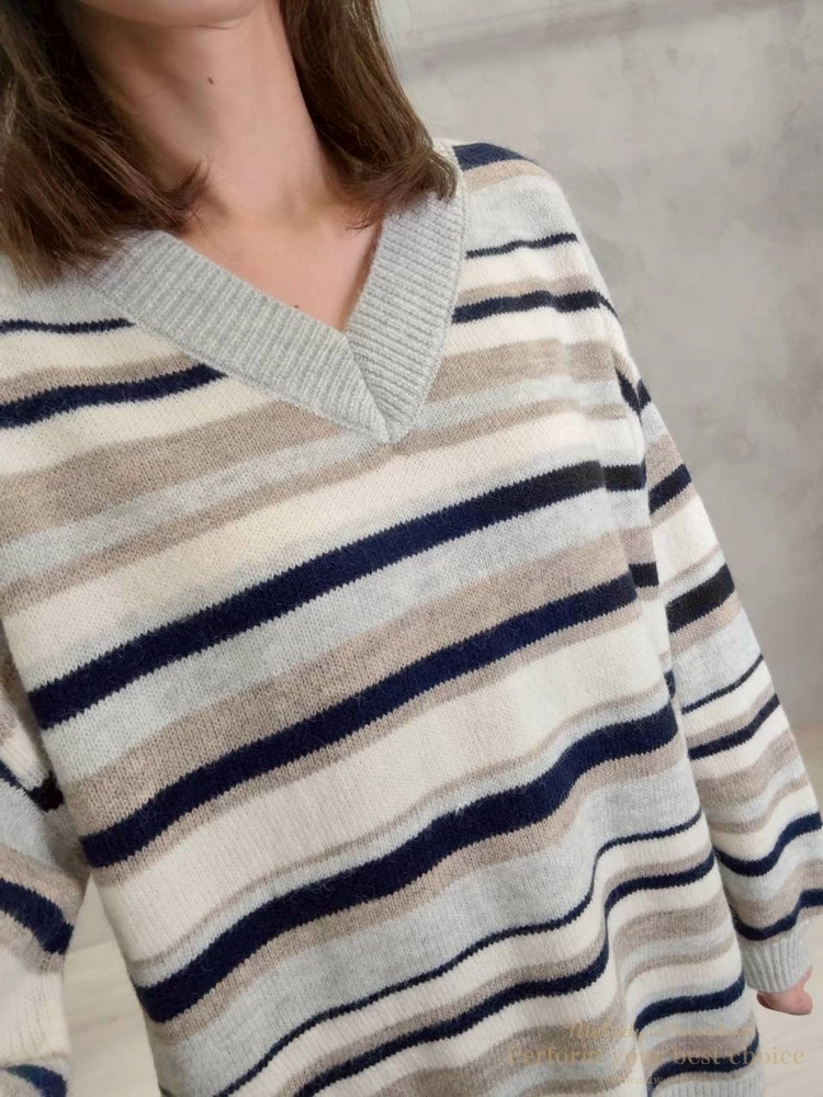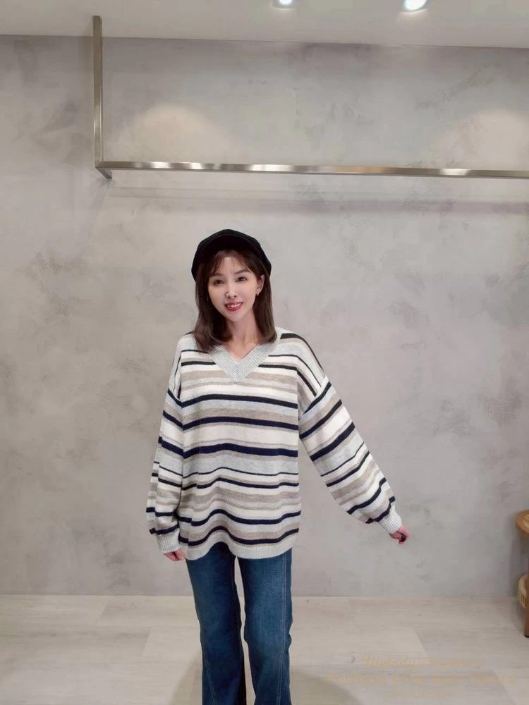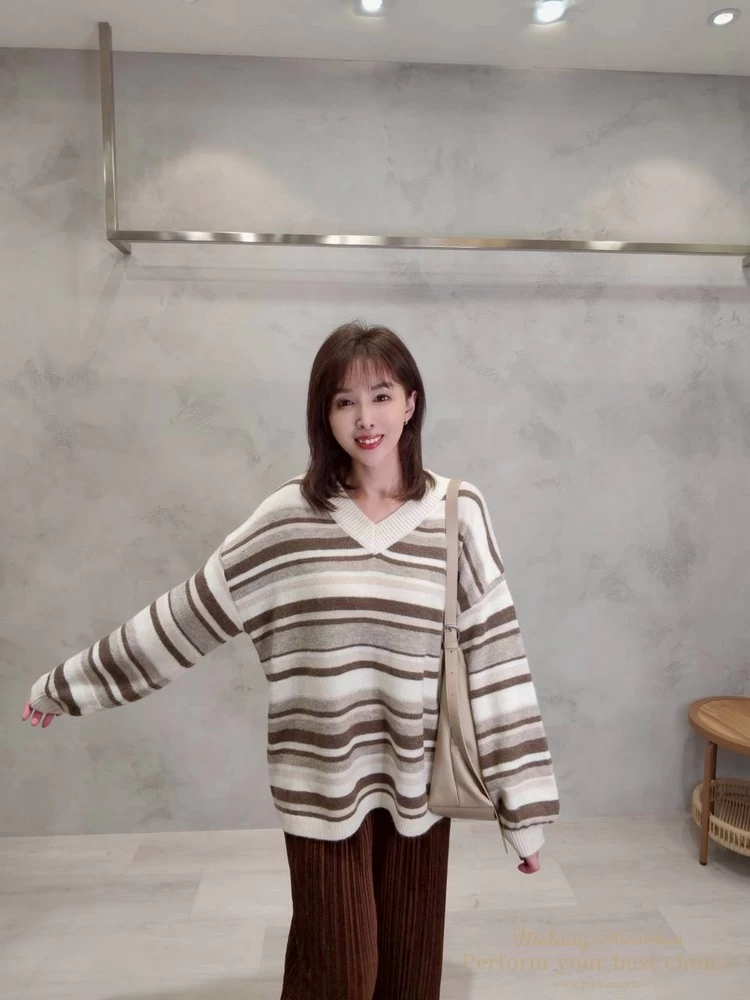 V領拚色條紋長版上衣(4色)