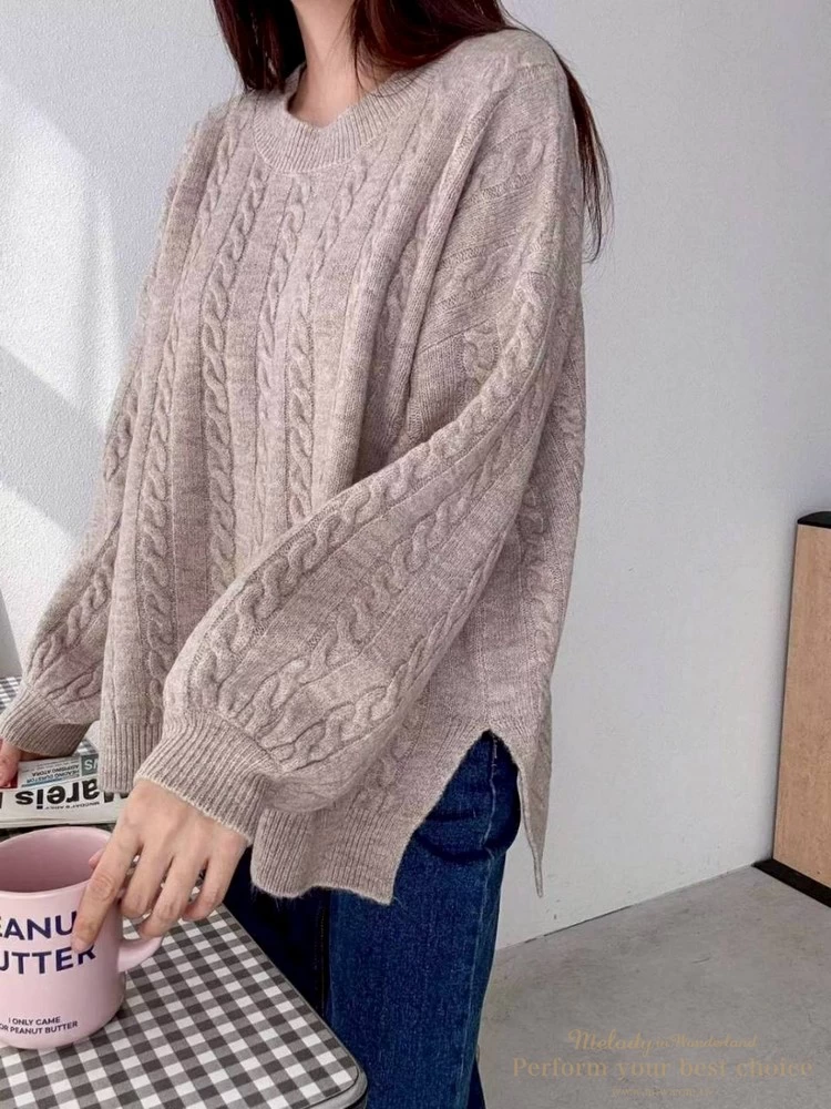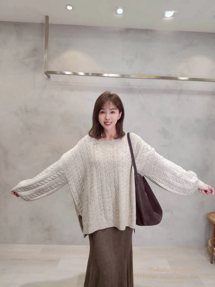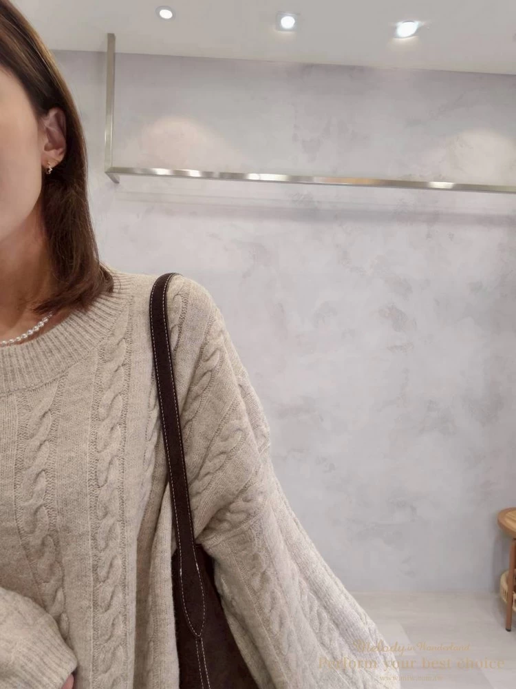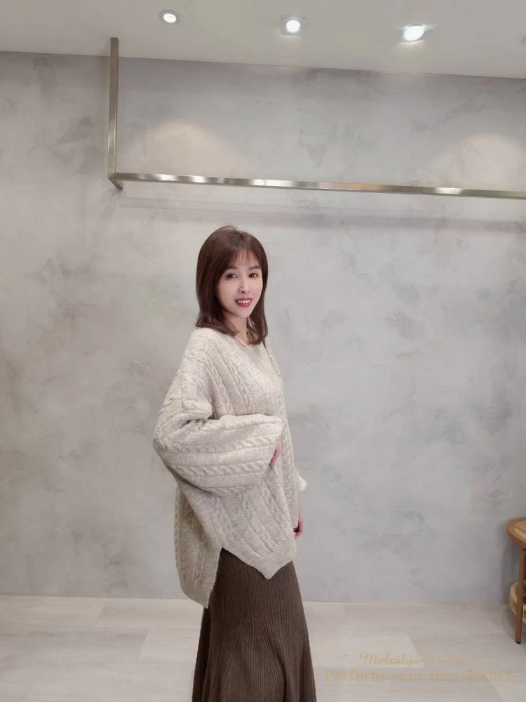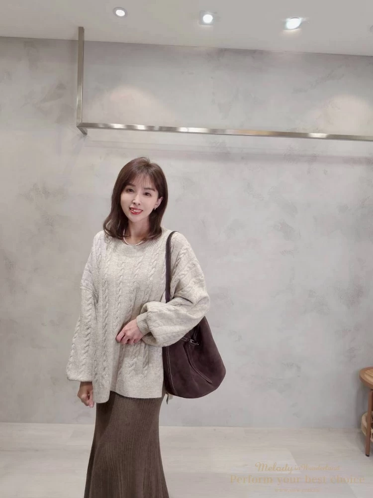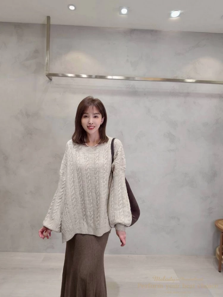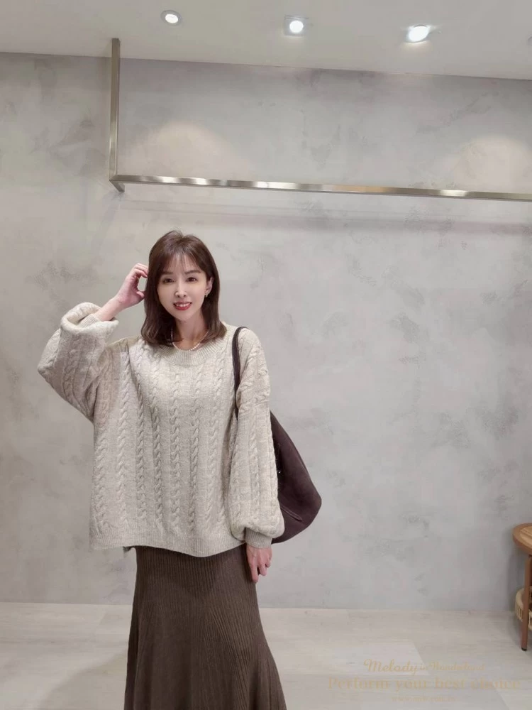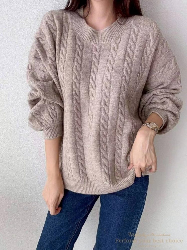 2601-021 圓領麻花造型落肩上衣(3色)