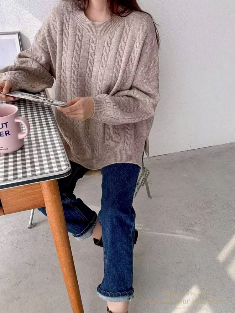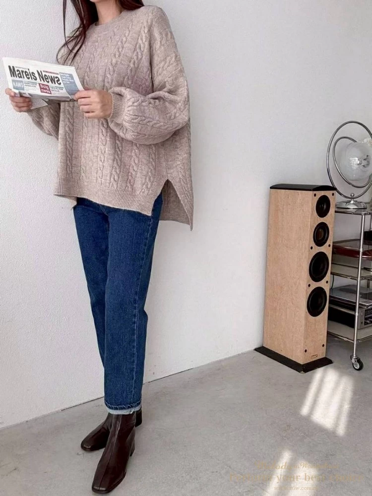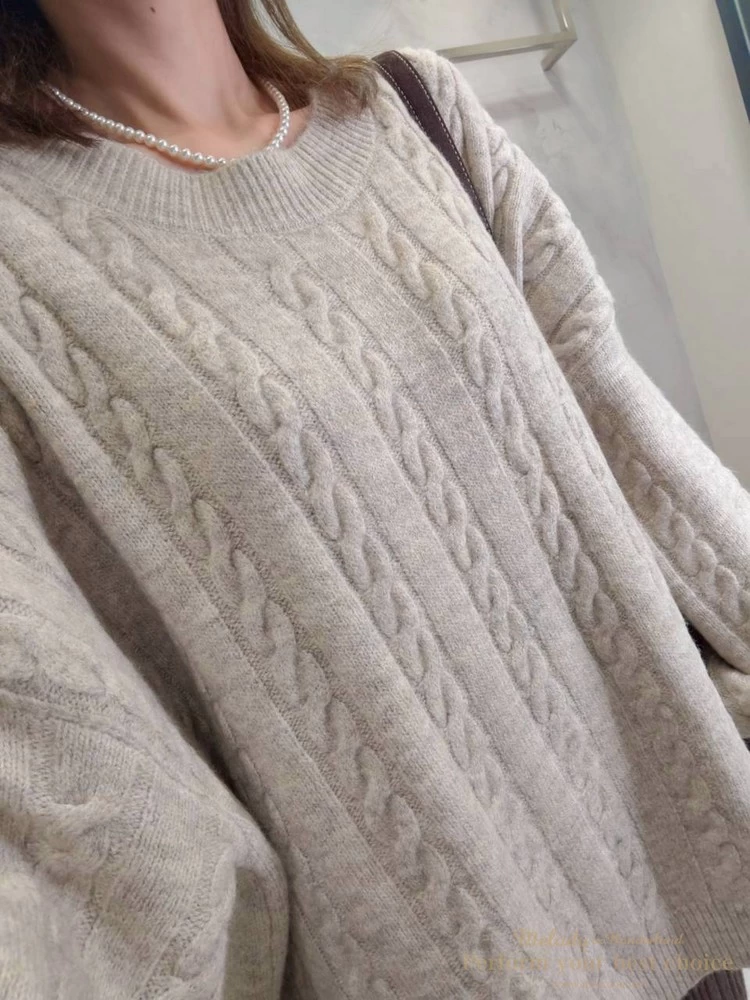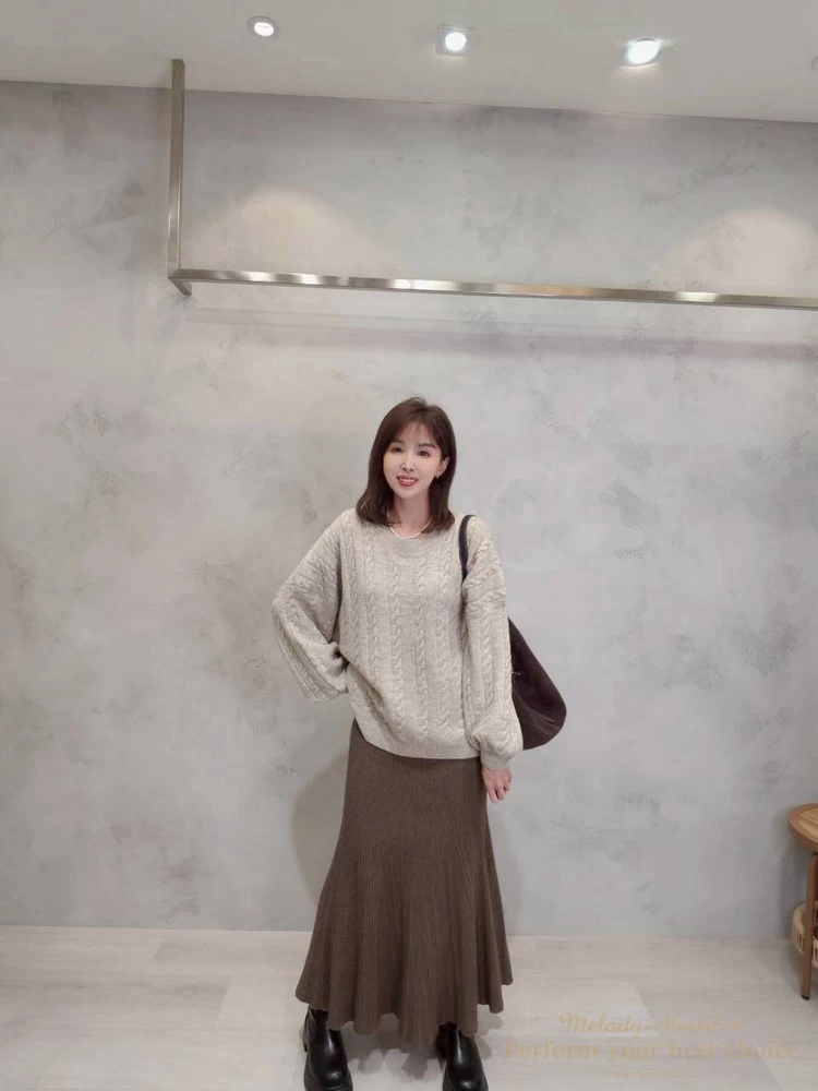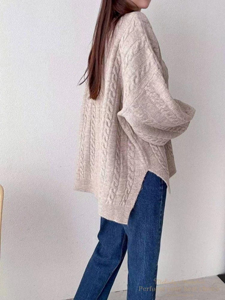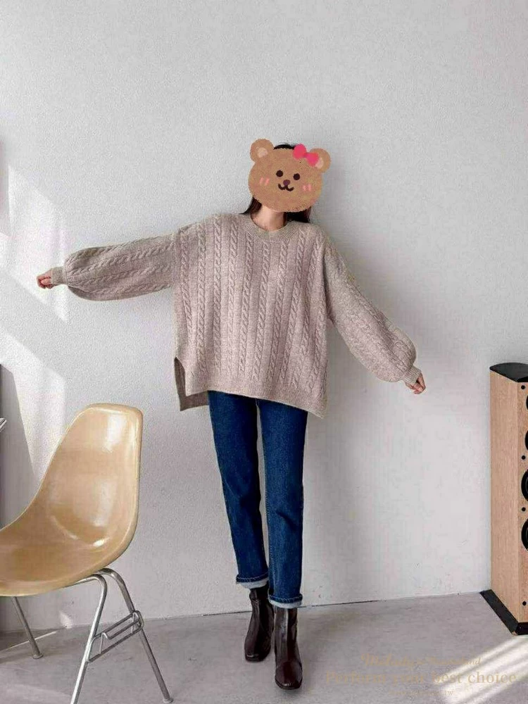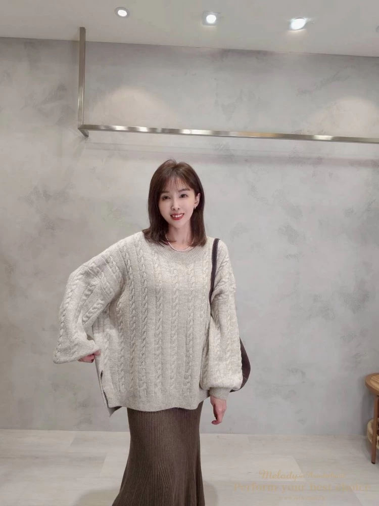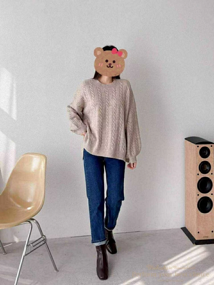 2601-021 圓領麻花造型落肩上衣(3色)
