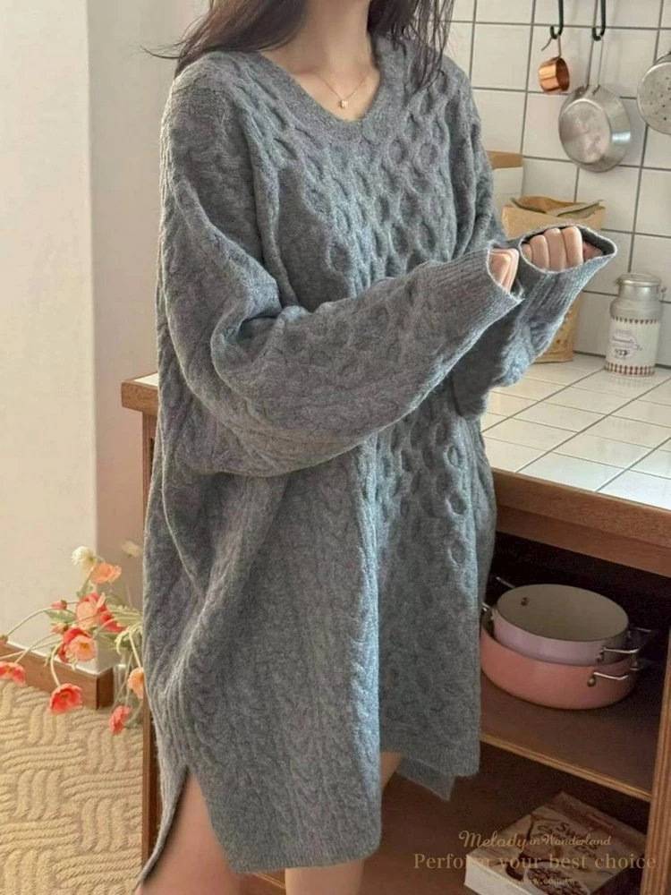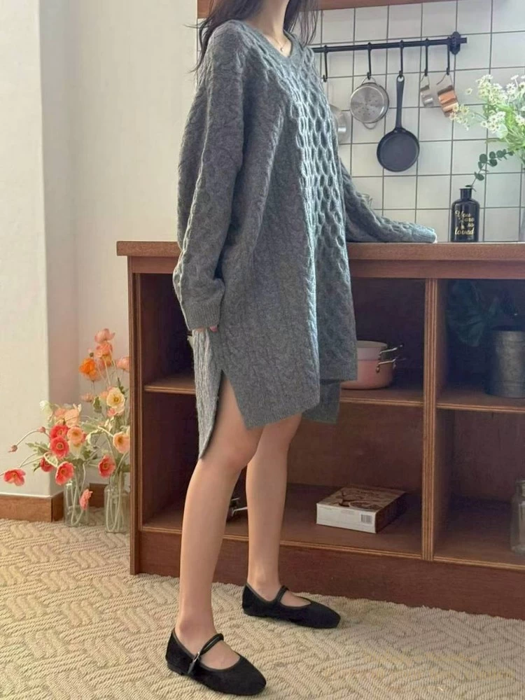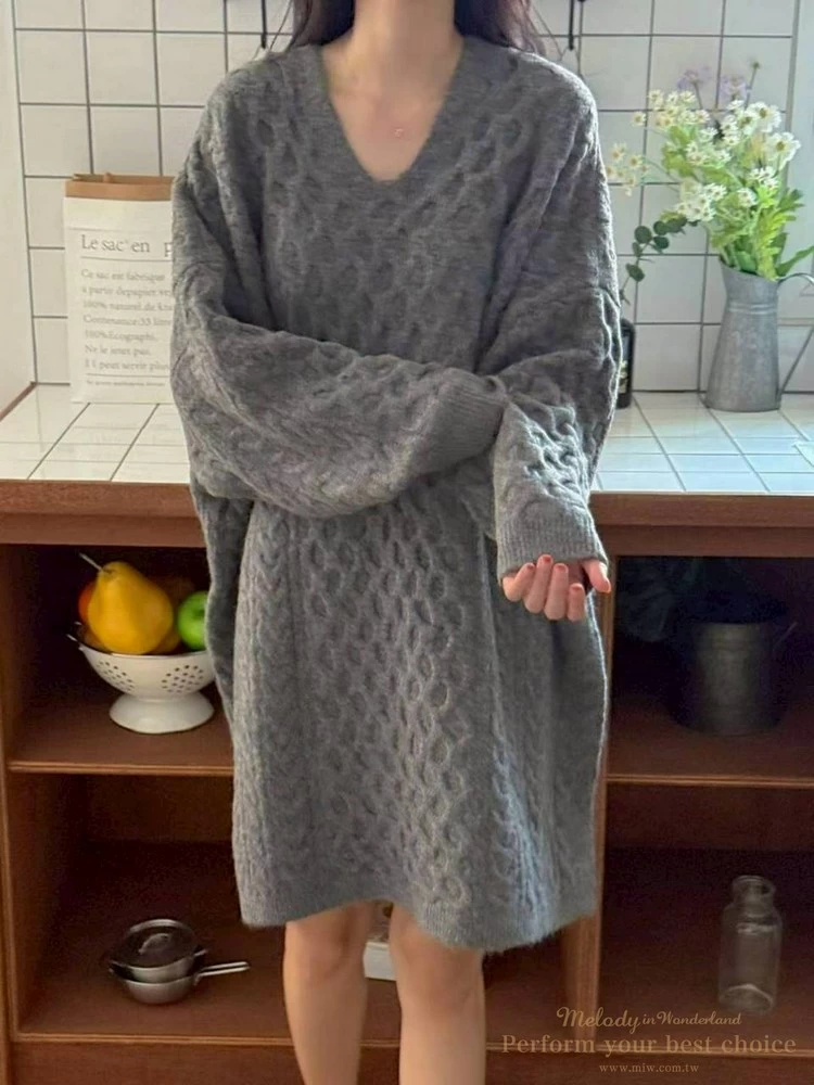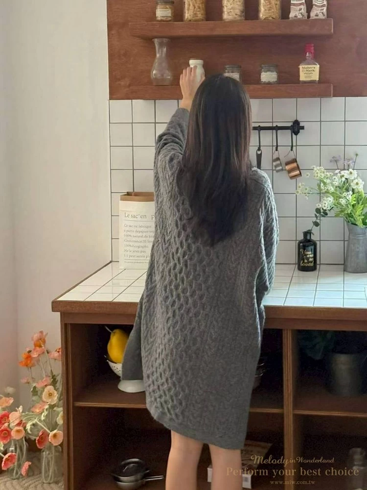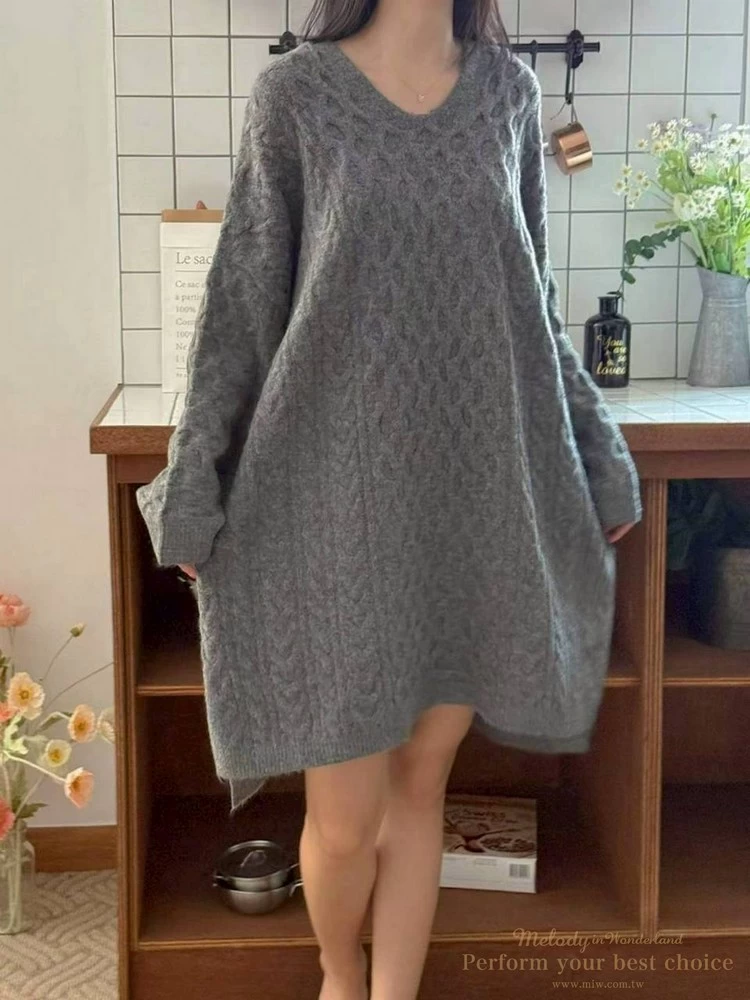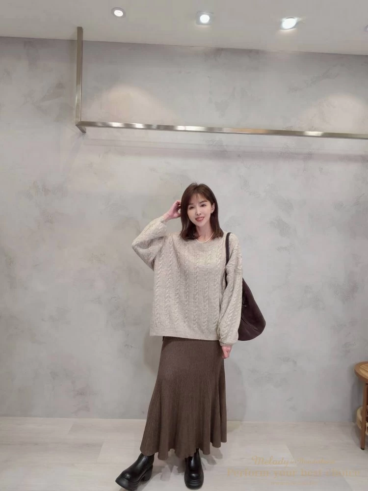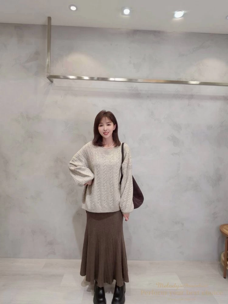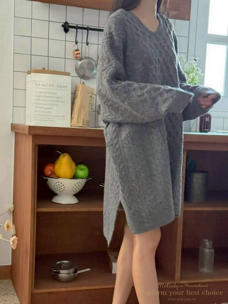 2601-021 圓領麻花造型落肩上衣(3色)