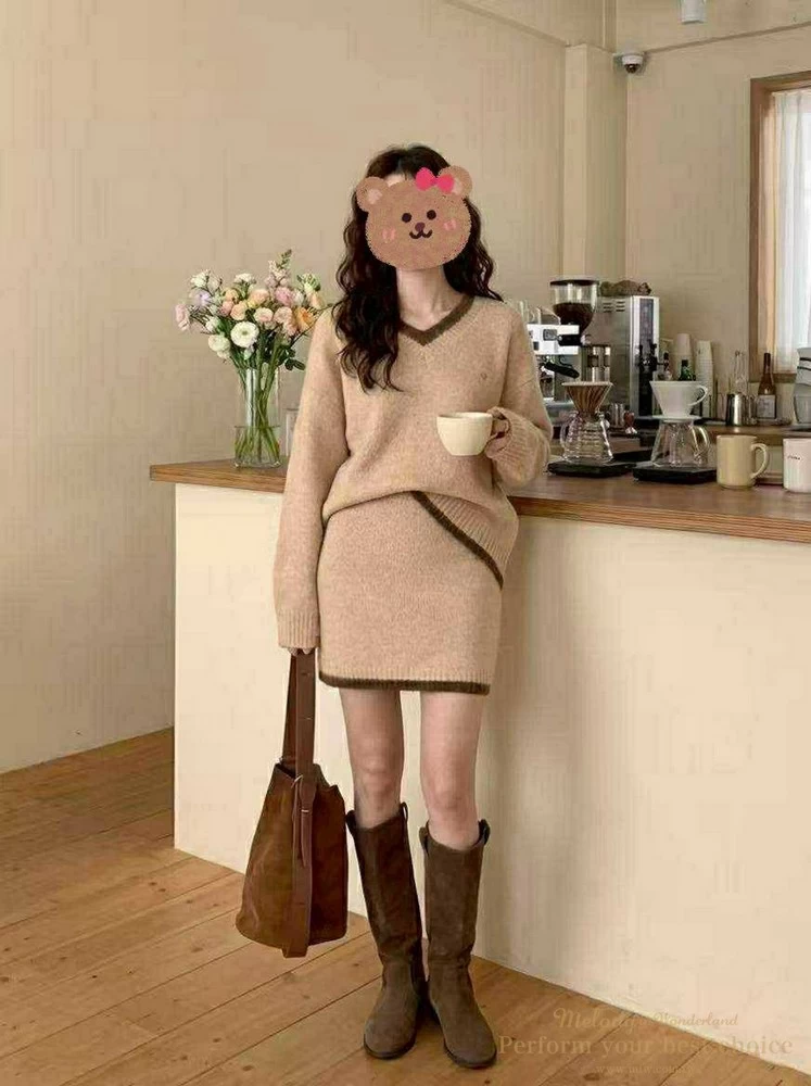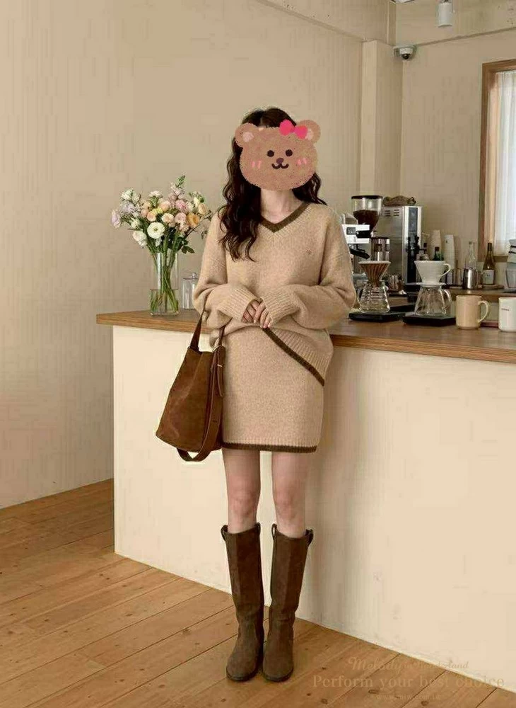 學院風愛心掛牌短裙套裝(2色)
