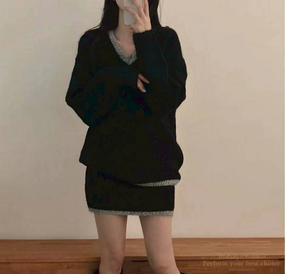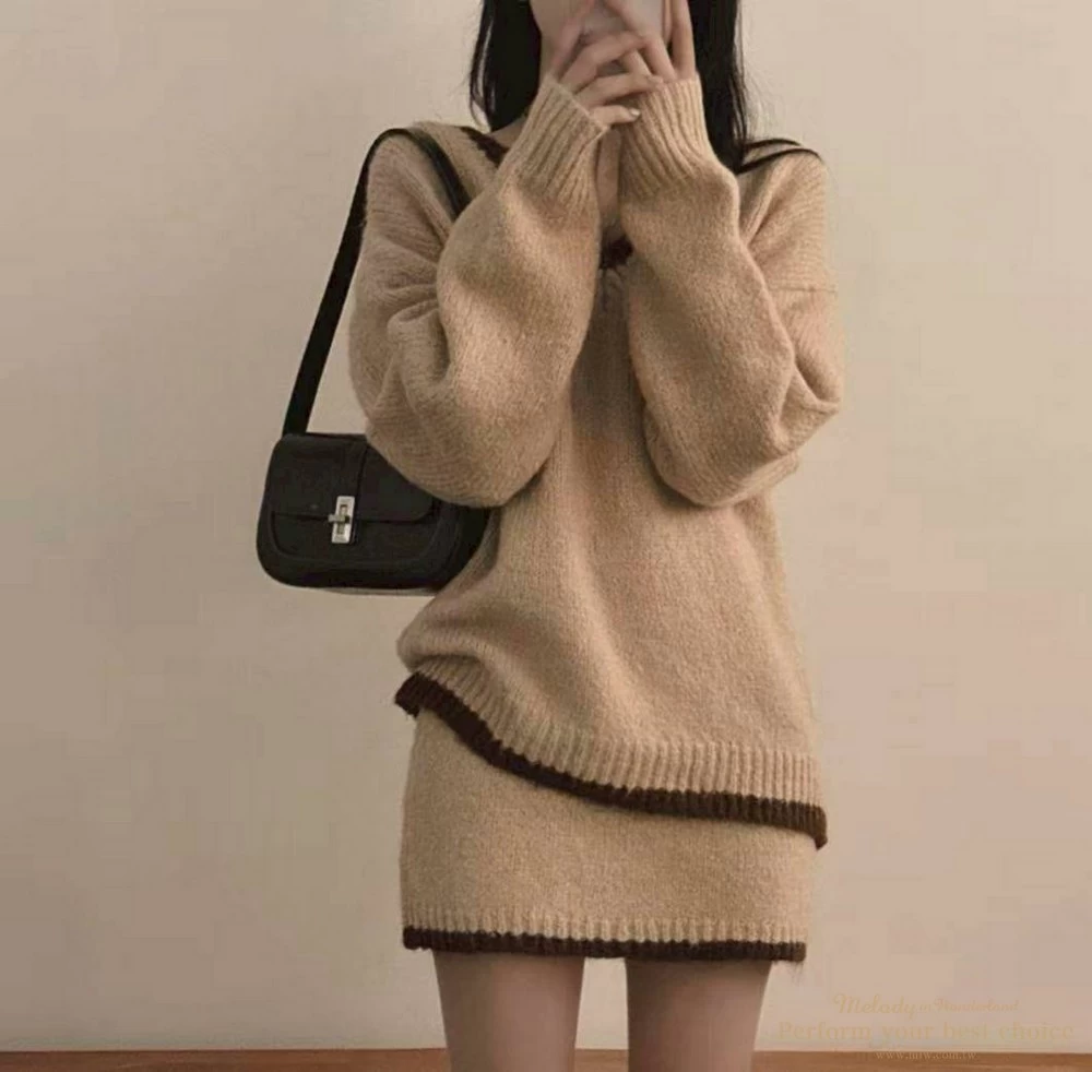 2601-051 學院風愛心掛牌短裙套裝(2色)