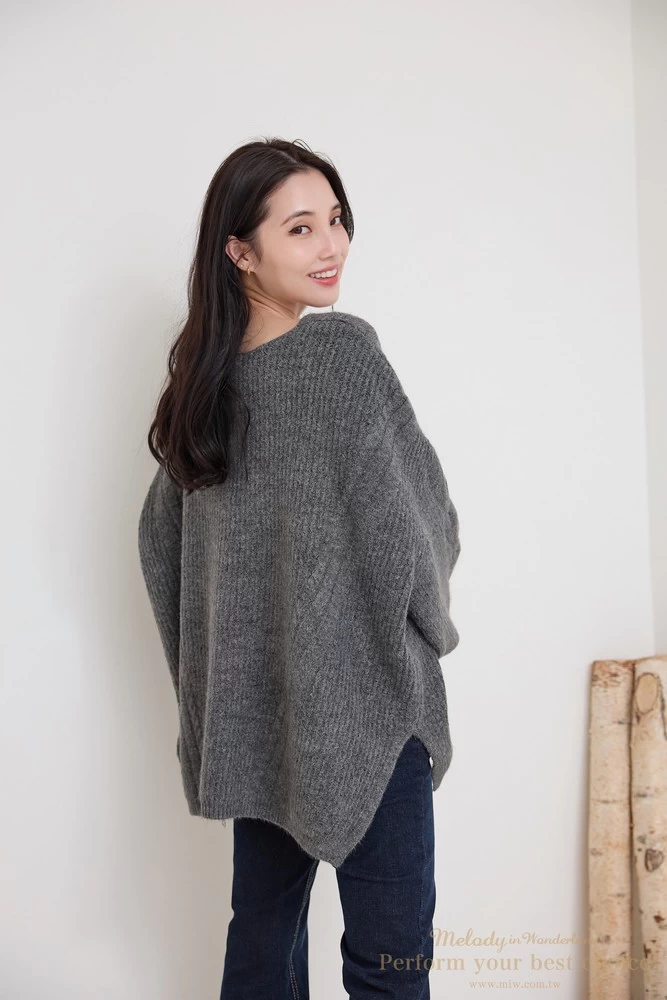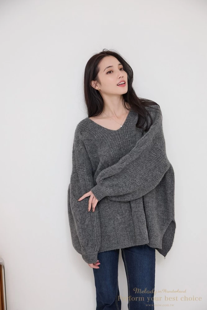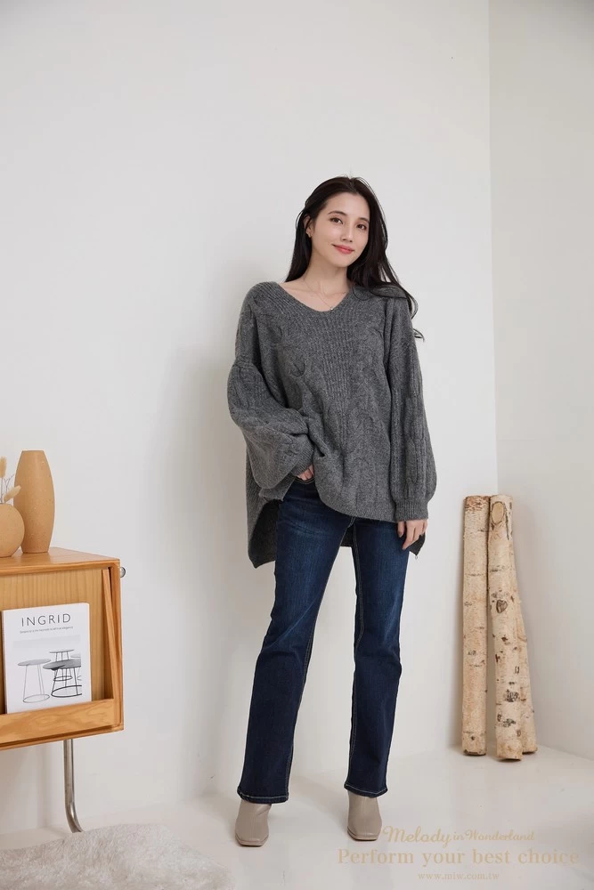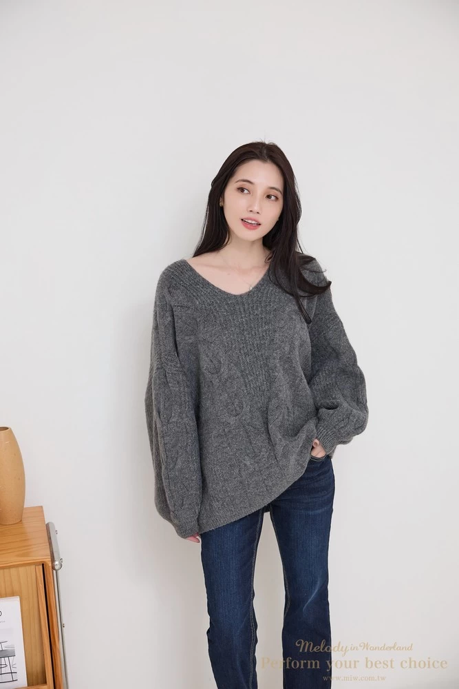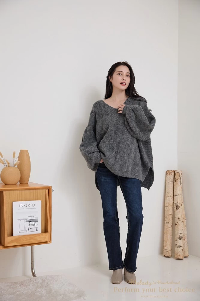 2601-025 慵懶落肩V領造型中長版上衣(5色)
