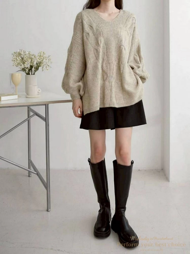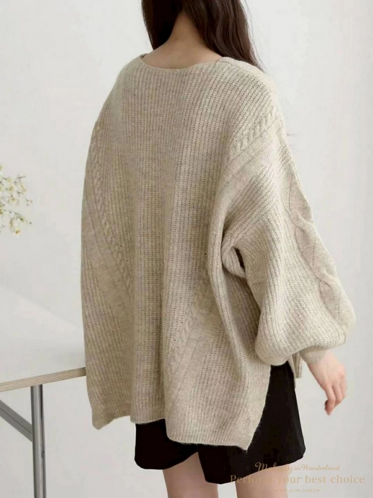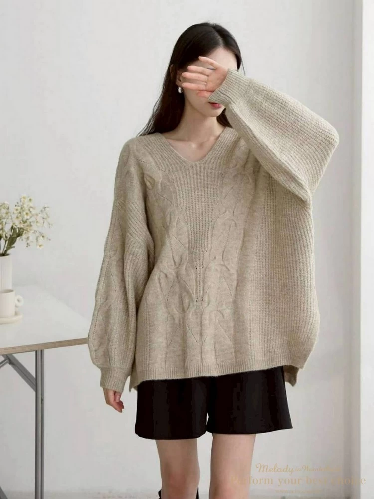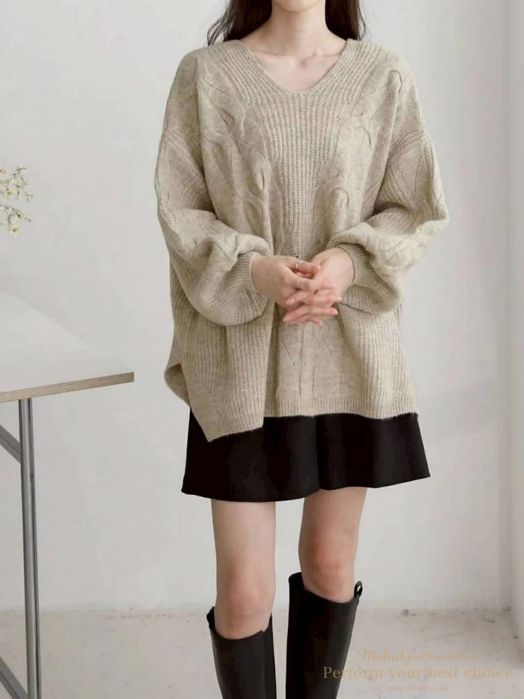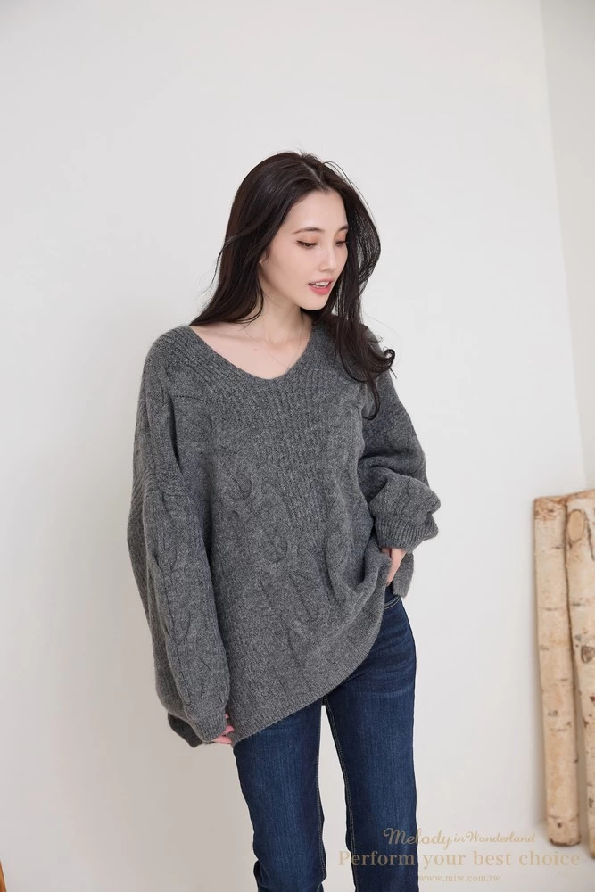 2601-025 慵懶落肩V領造型中長版上衣(5色)