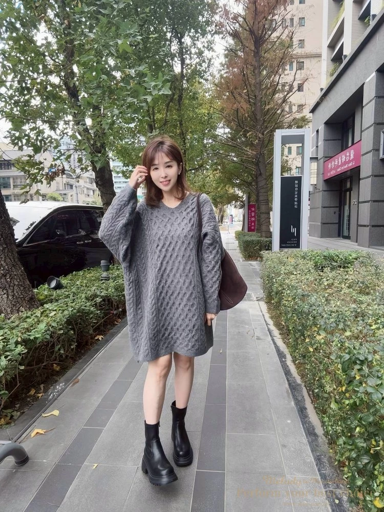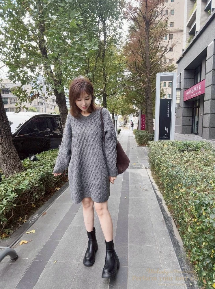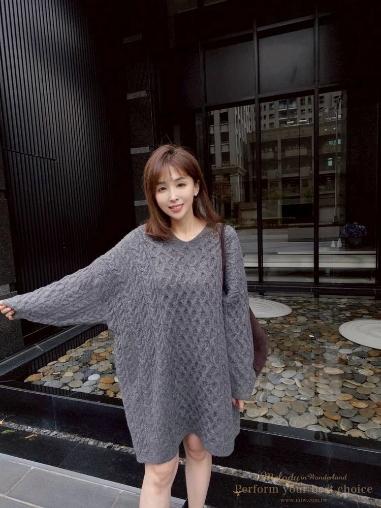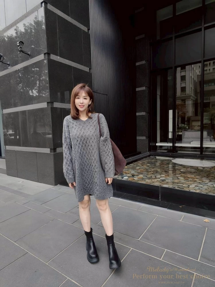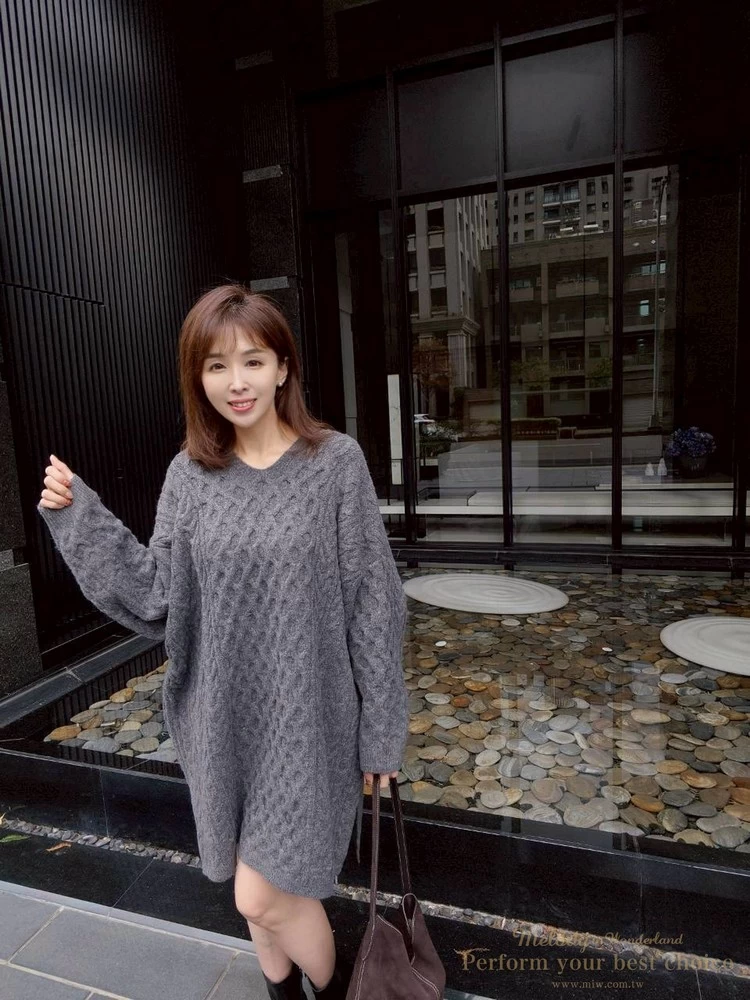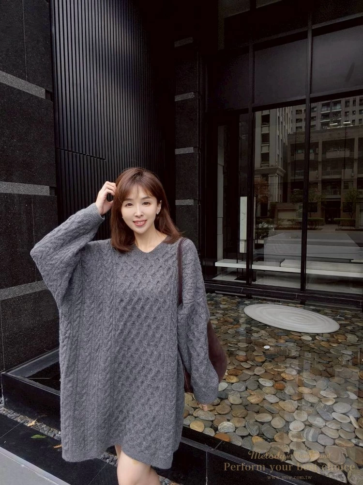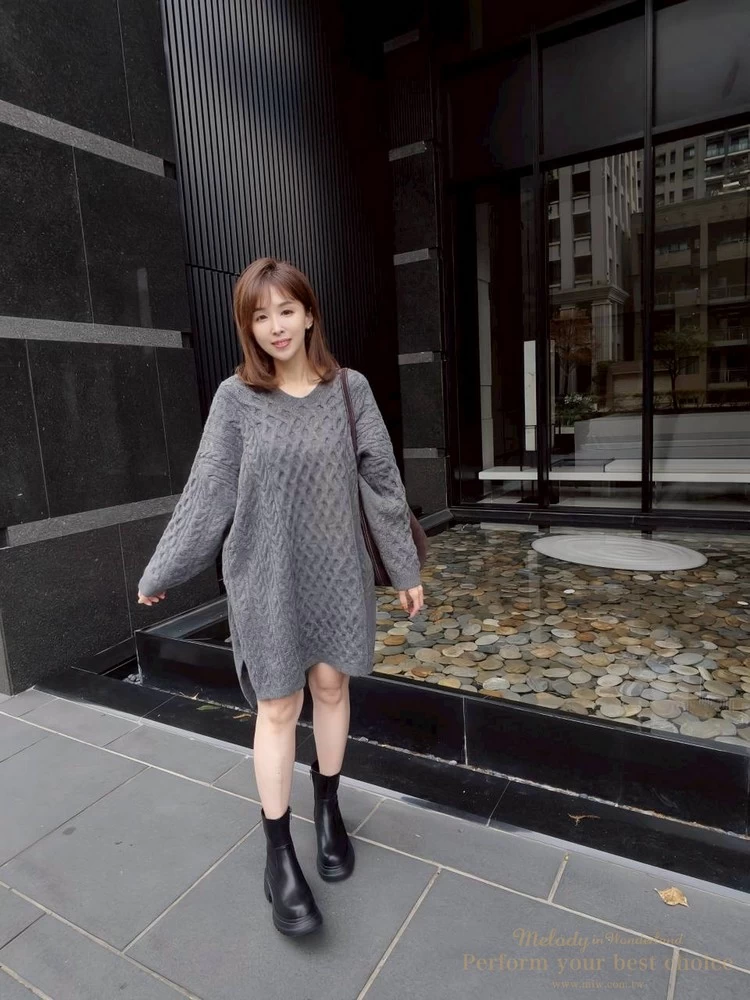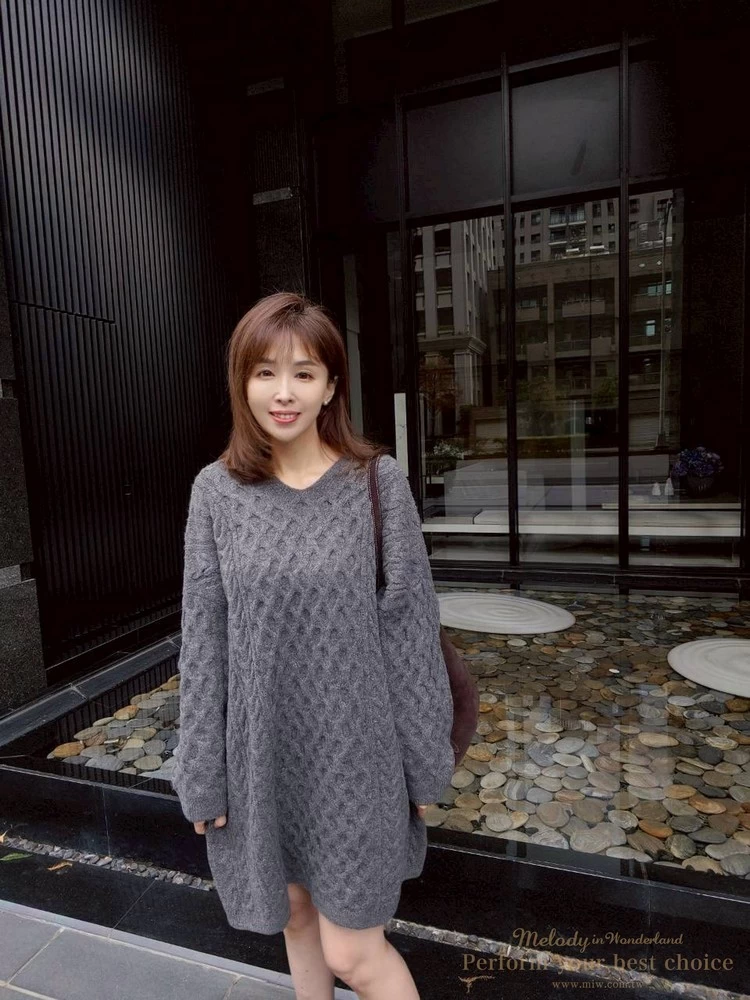 蜂巢壓紋V領長版毛衣(3色)