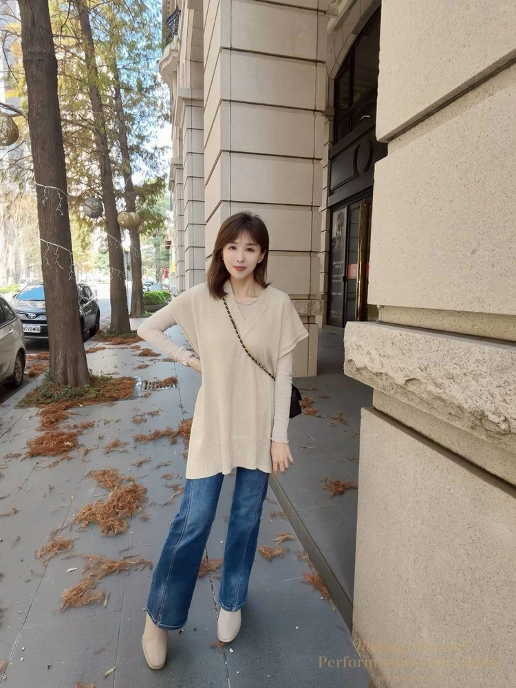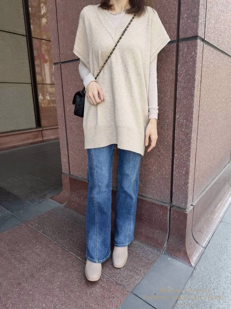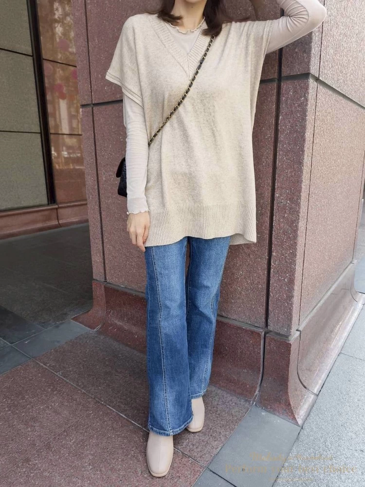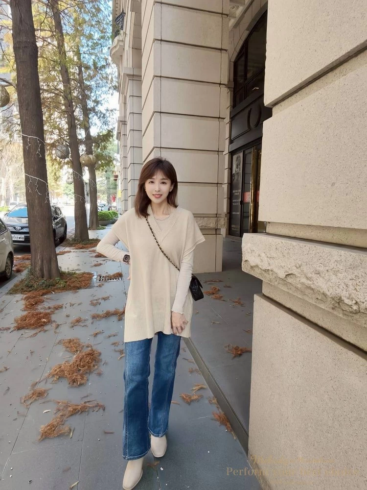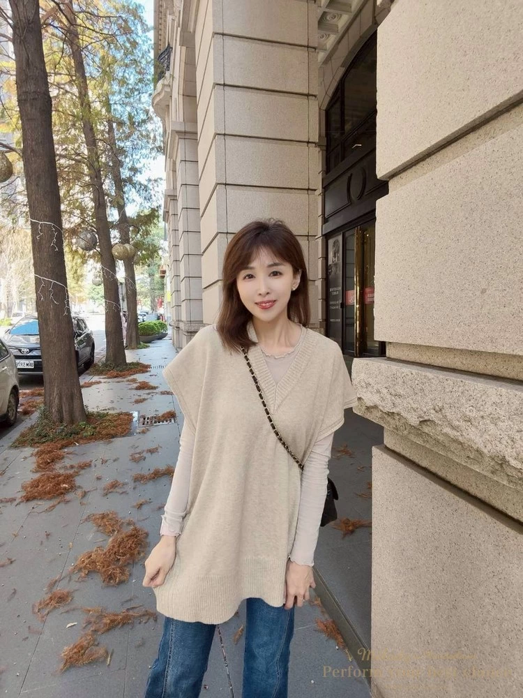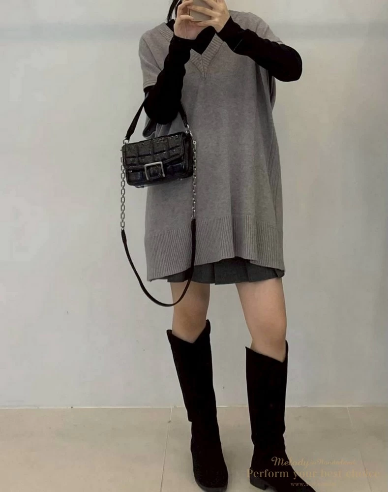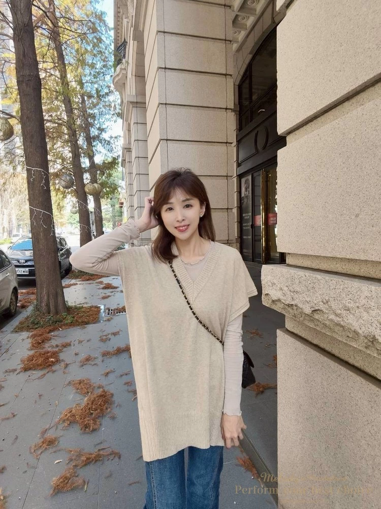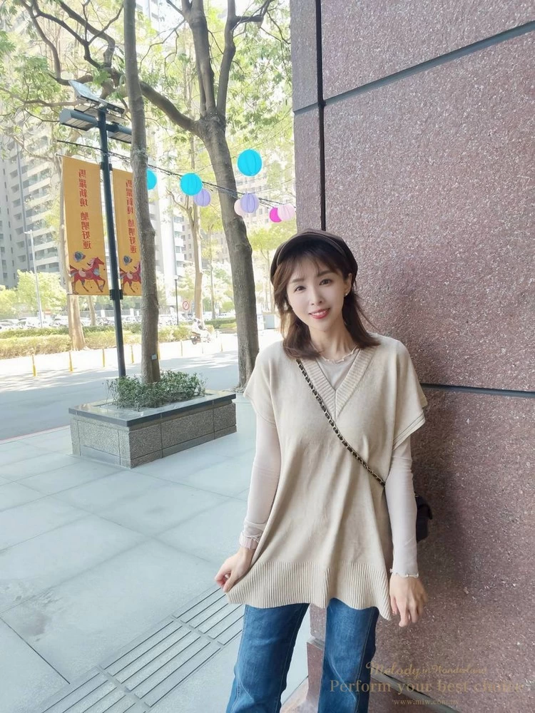 氣質坑條造型長版V領背心(3色)