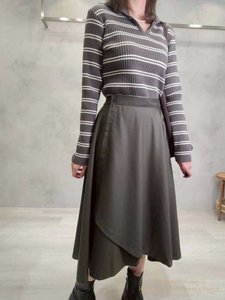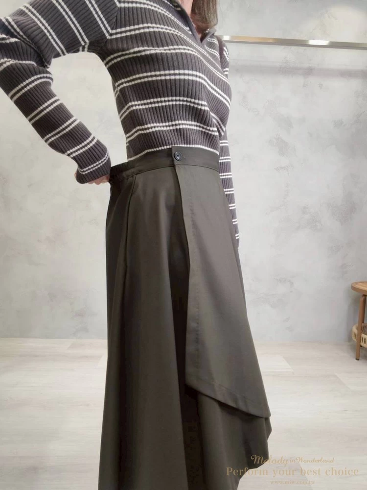 2601-063 質感單扣斜擺造型一片裙(2色)