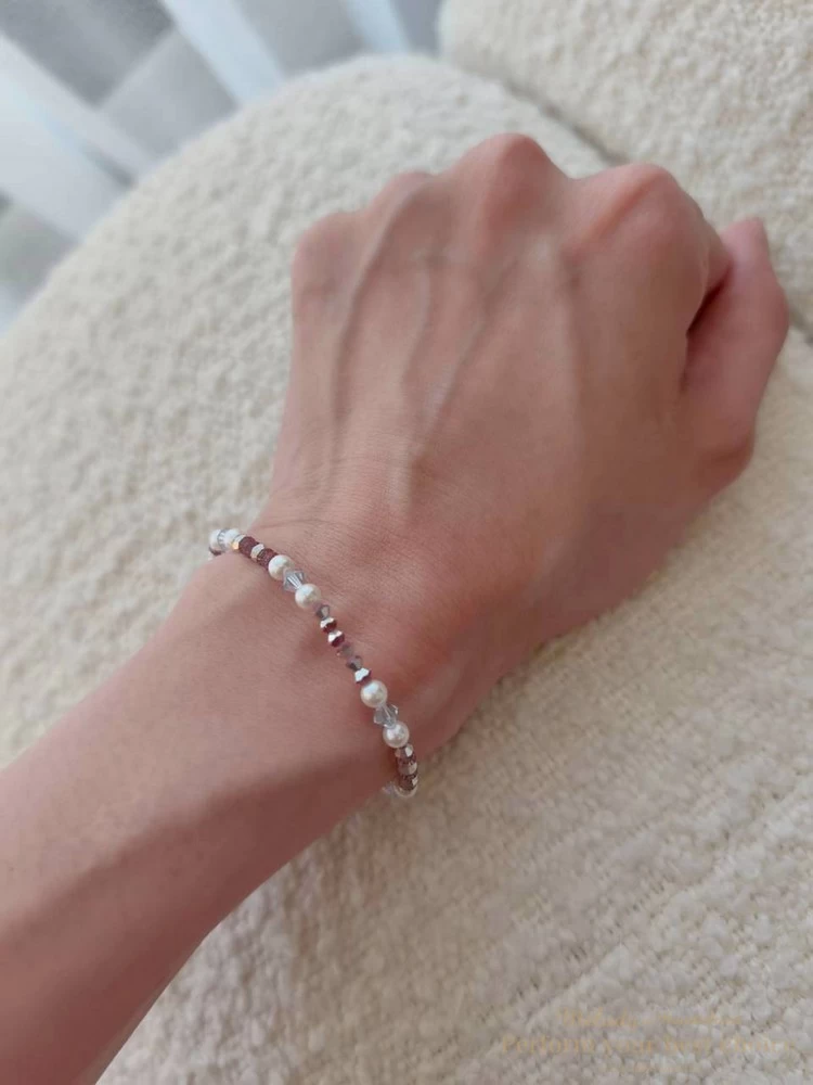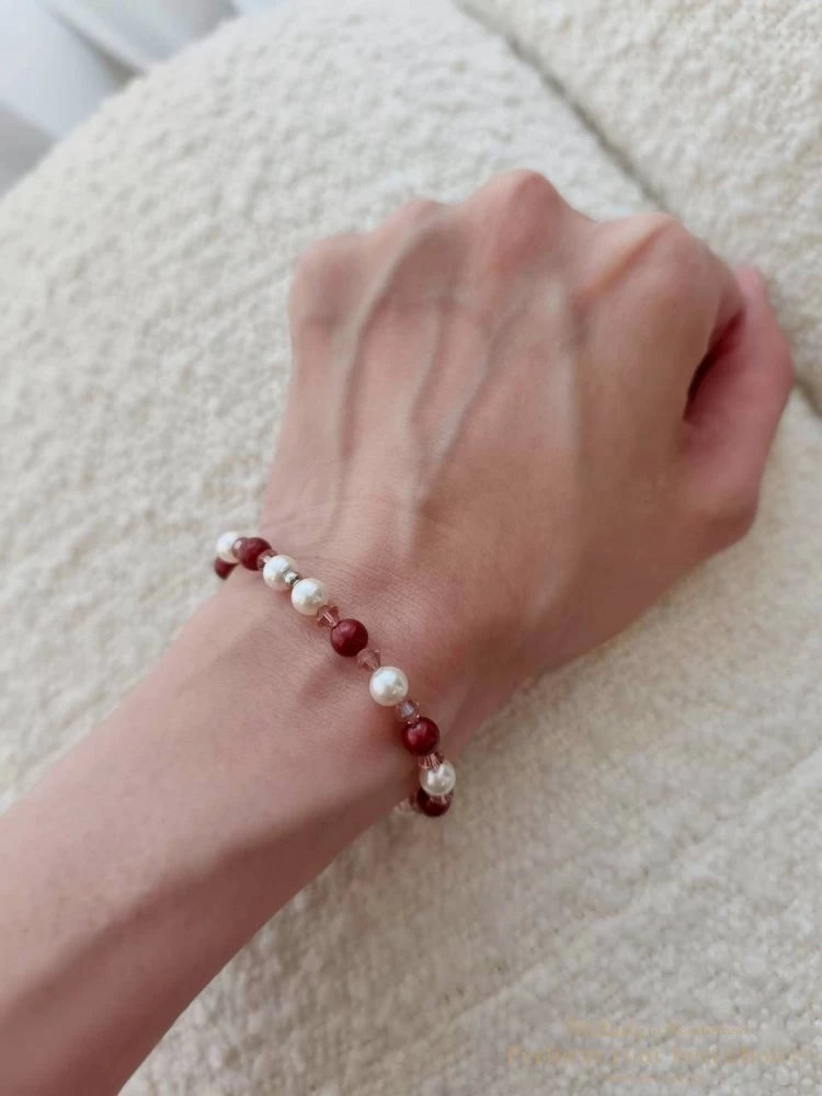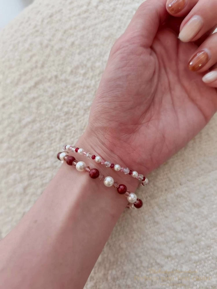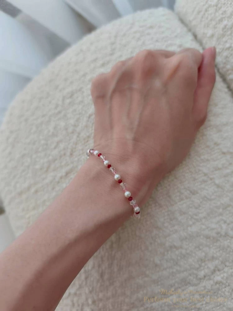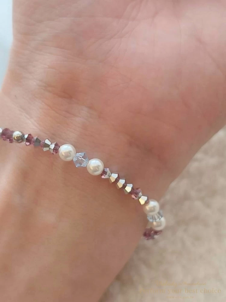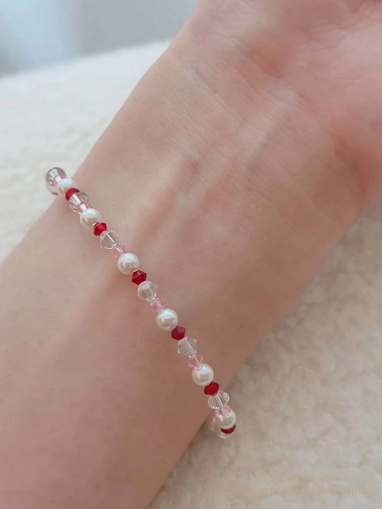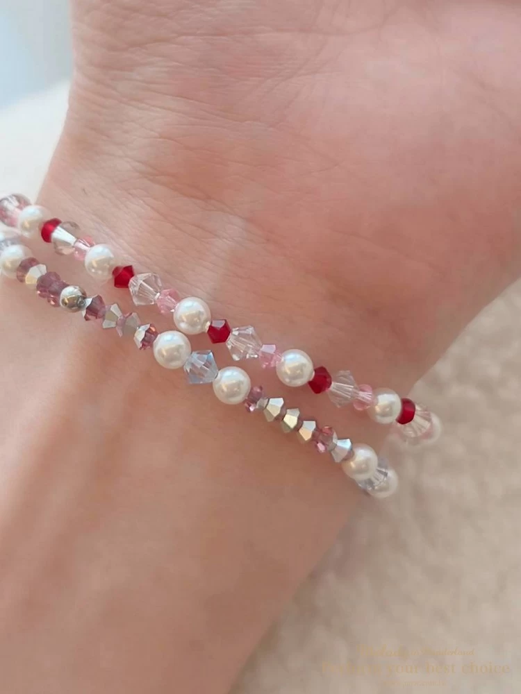 施華洛世奇4MM澳白珍珠+3MM櫻花粉尖珠+3MM新年紅尖珠+4MM夜晚銀河尖珠