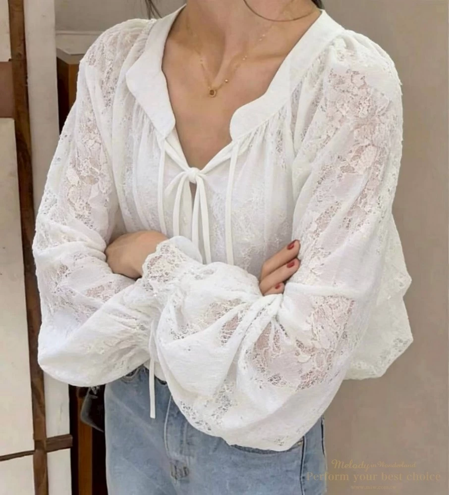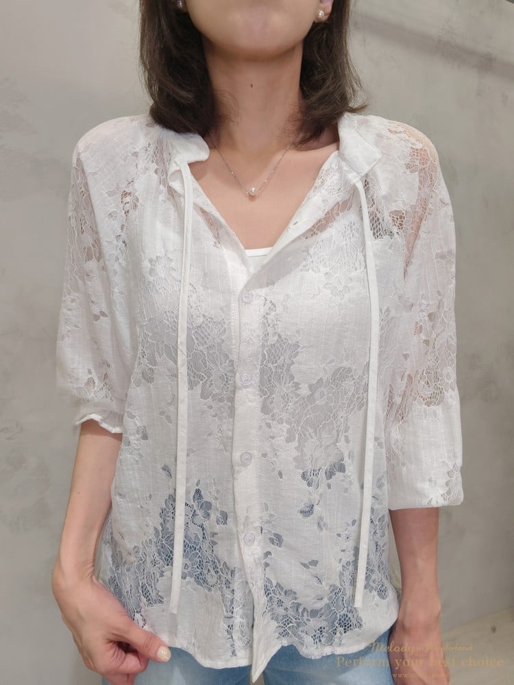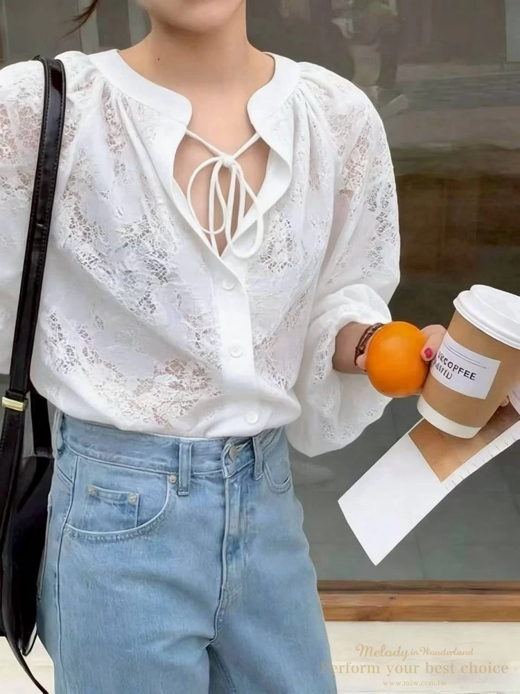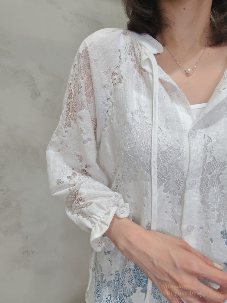 2603-002 復古直紋蕾絲襯衫上衣(2色)