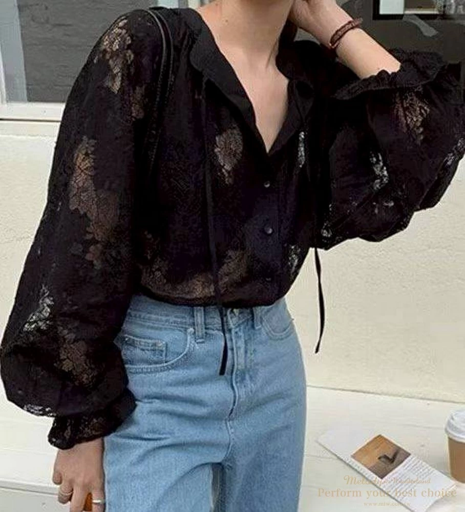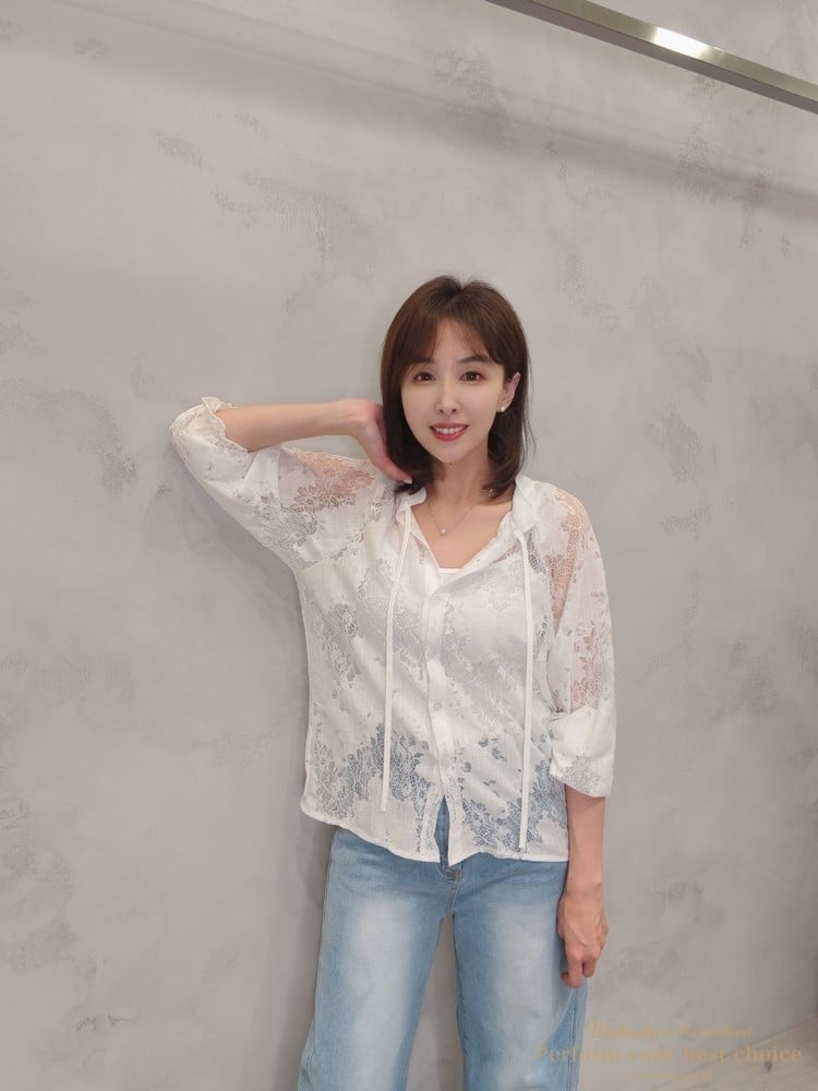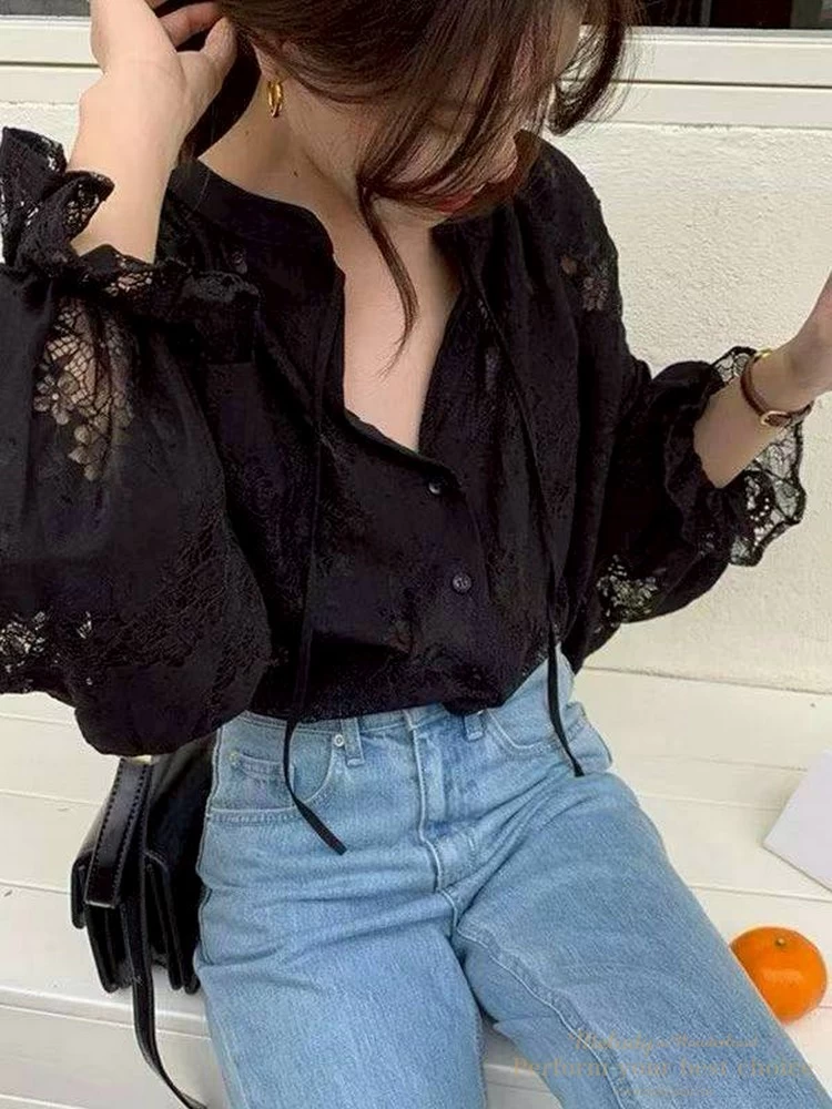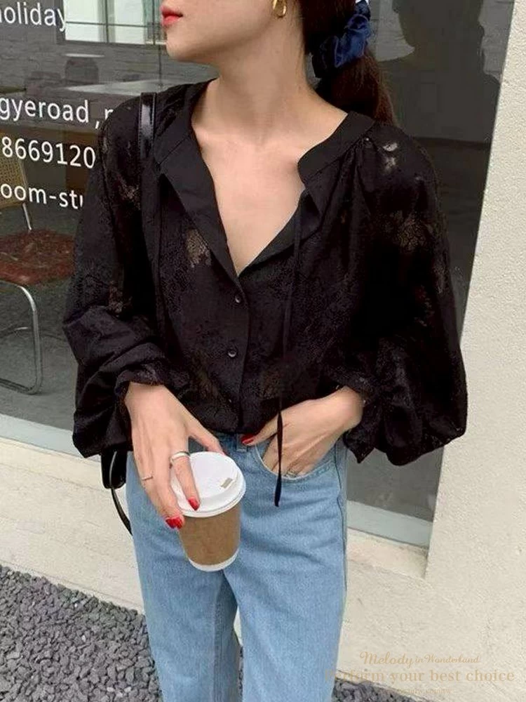 2603-002 復古直紋蕾絲襯衫上衣(2色)