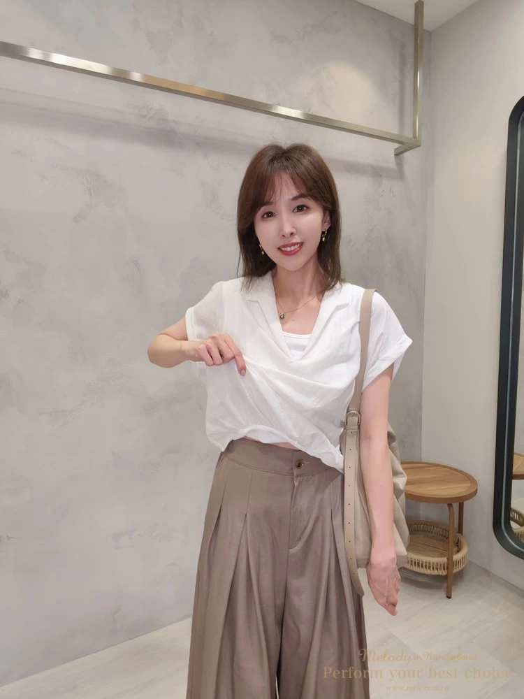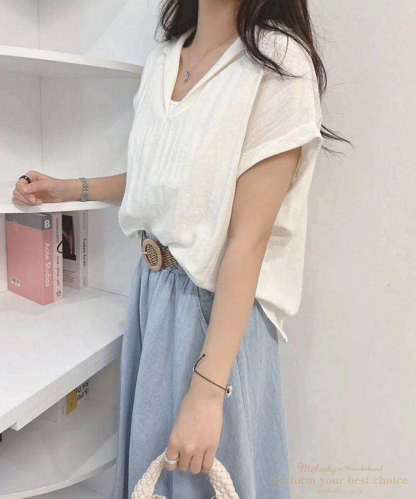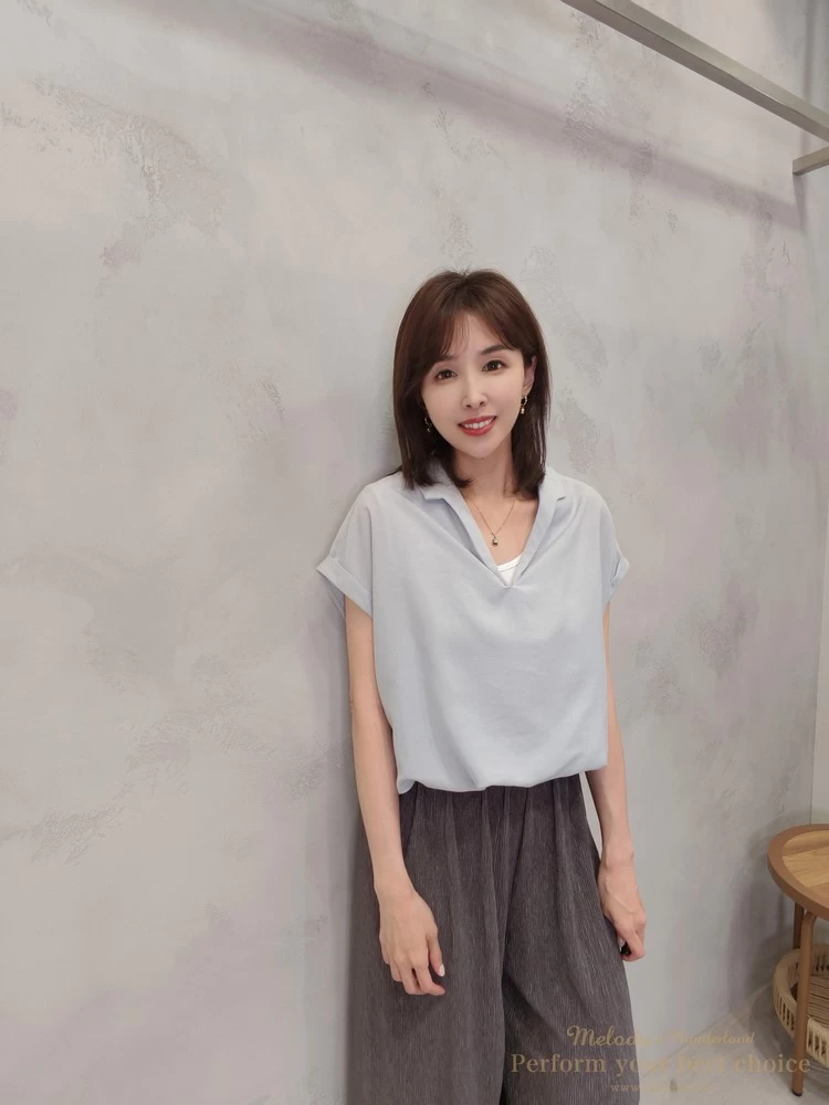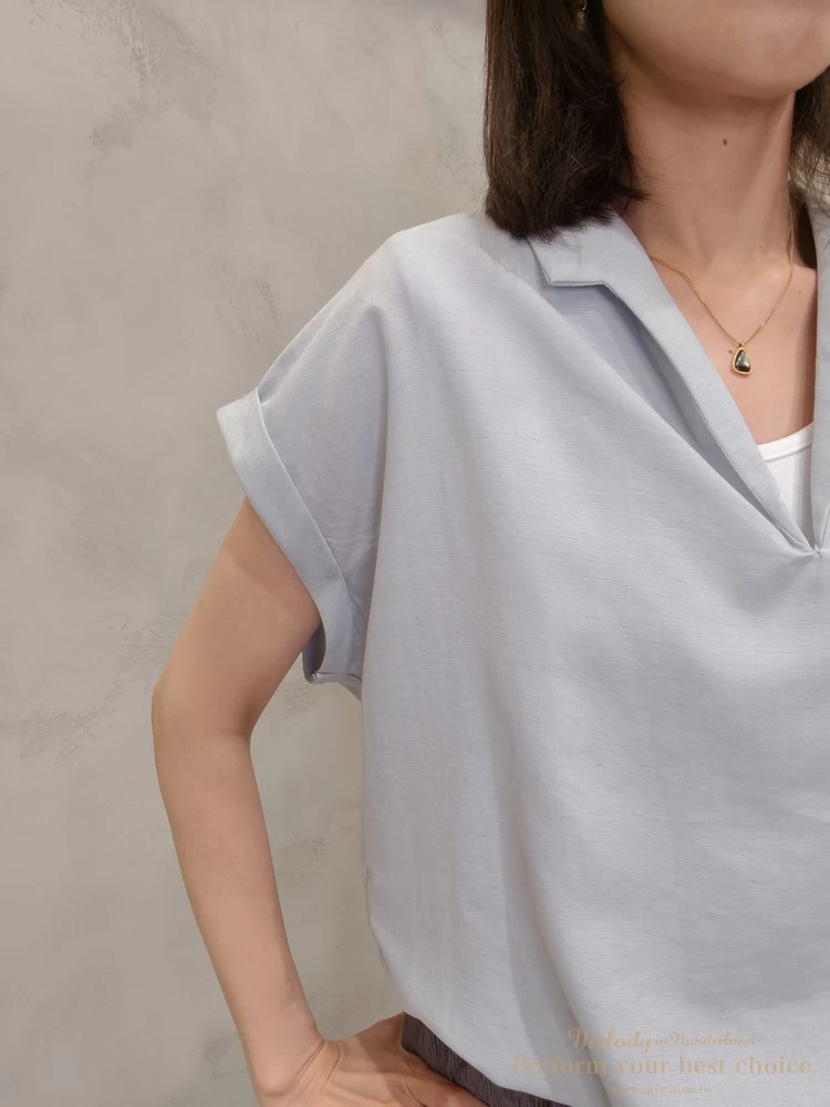 假兩件翻領抓摺下擺造型上衣(2色)