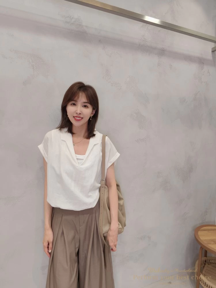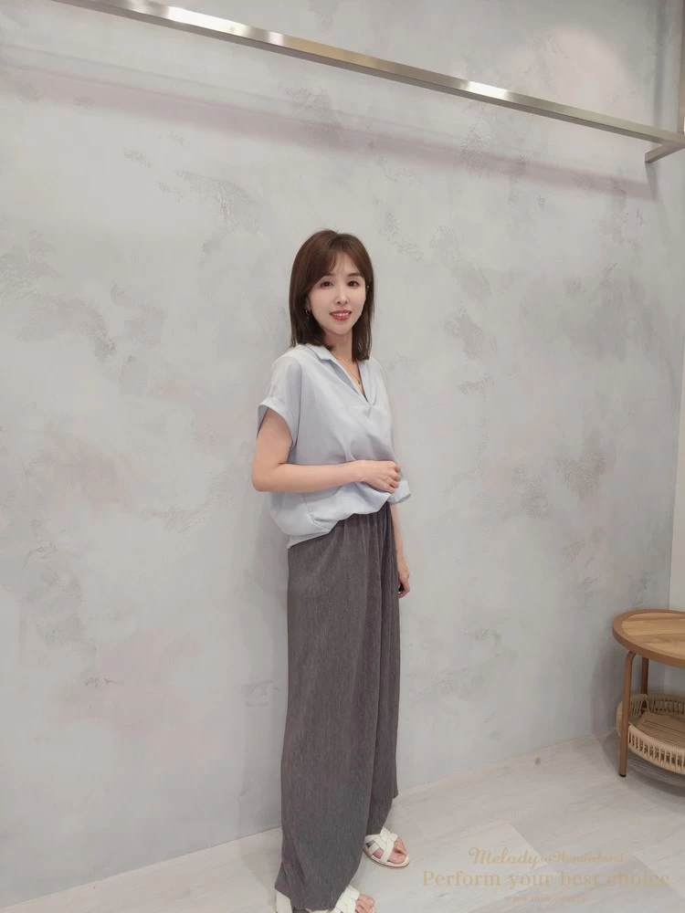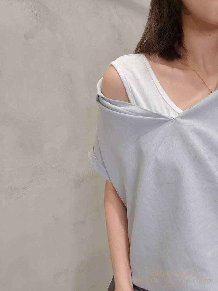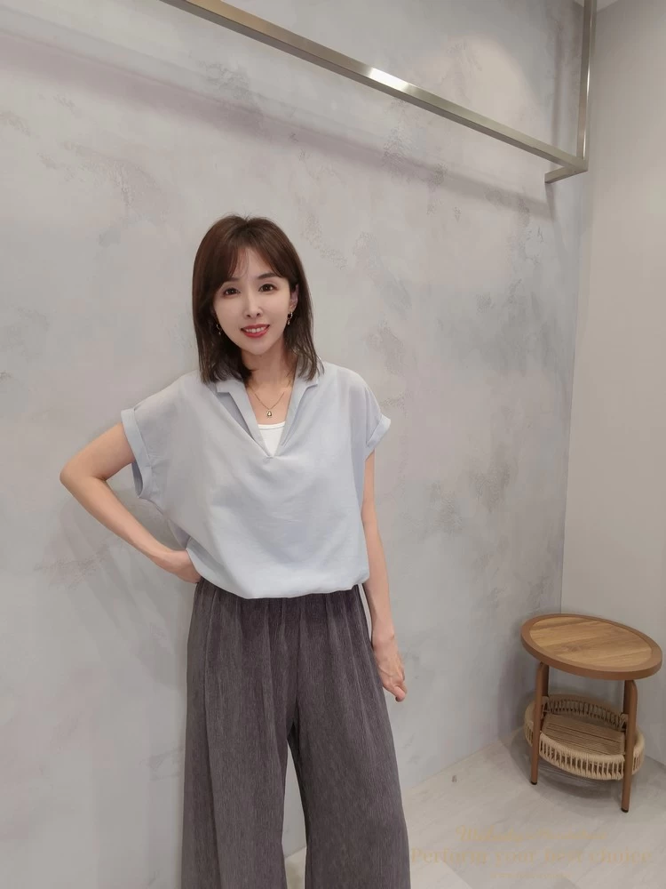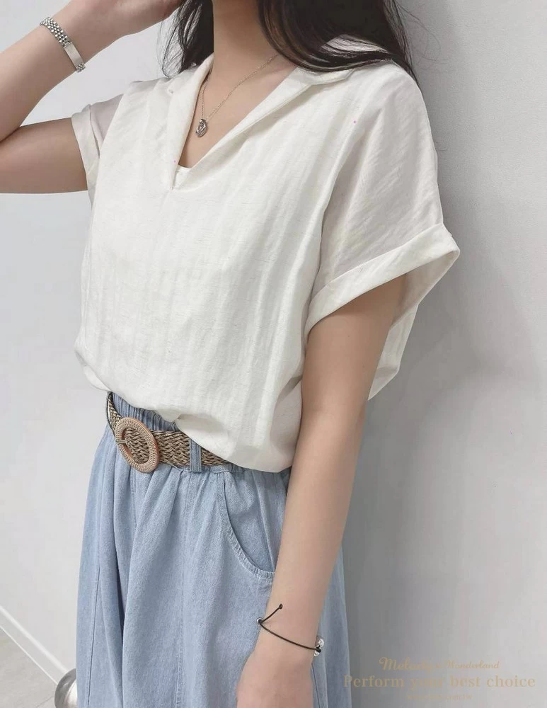 假兩件翻領抓摺下擺造型上衣(2色)
