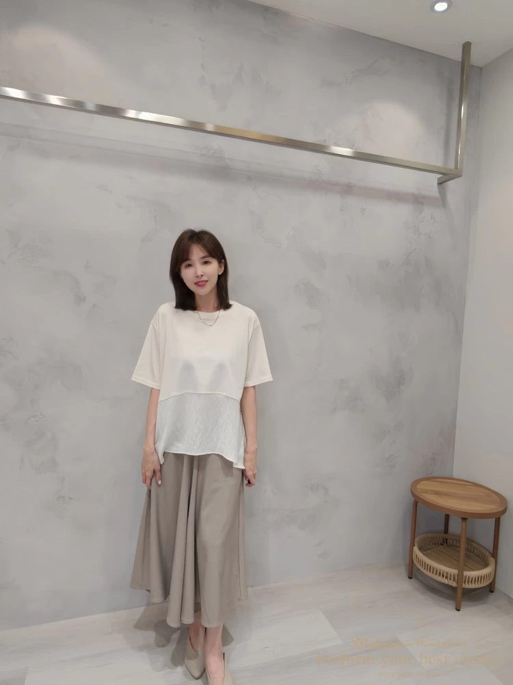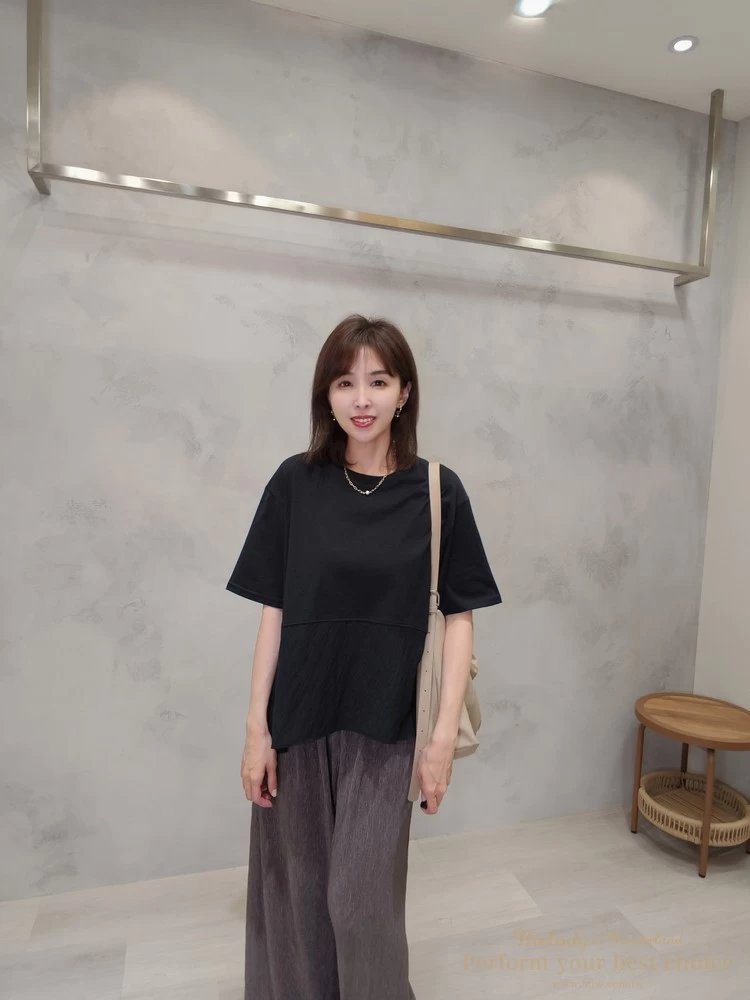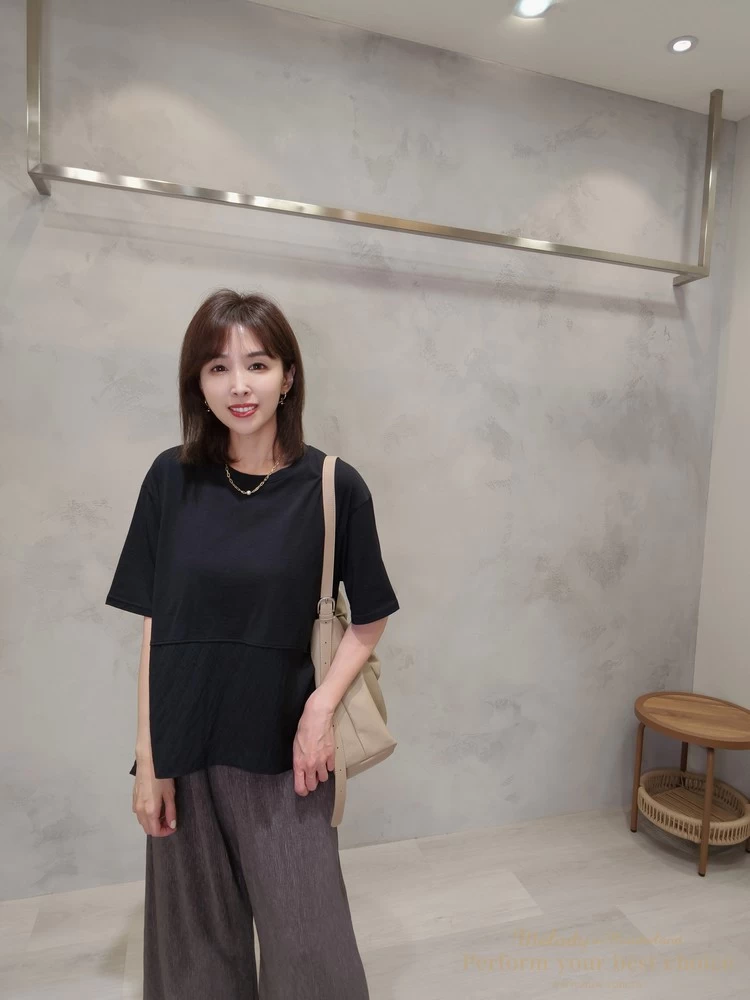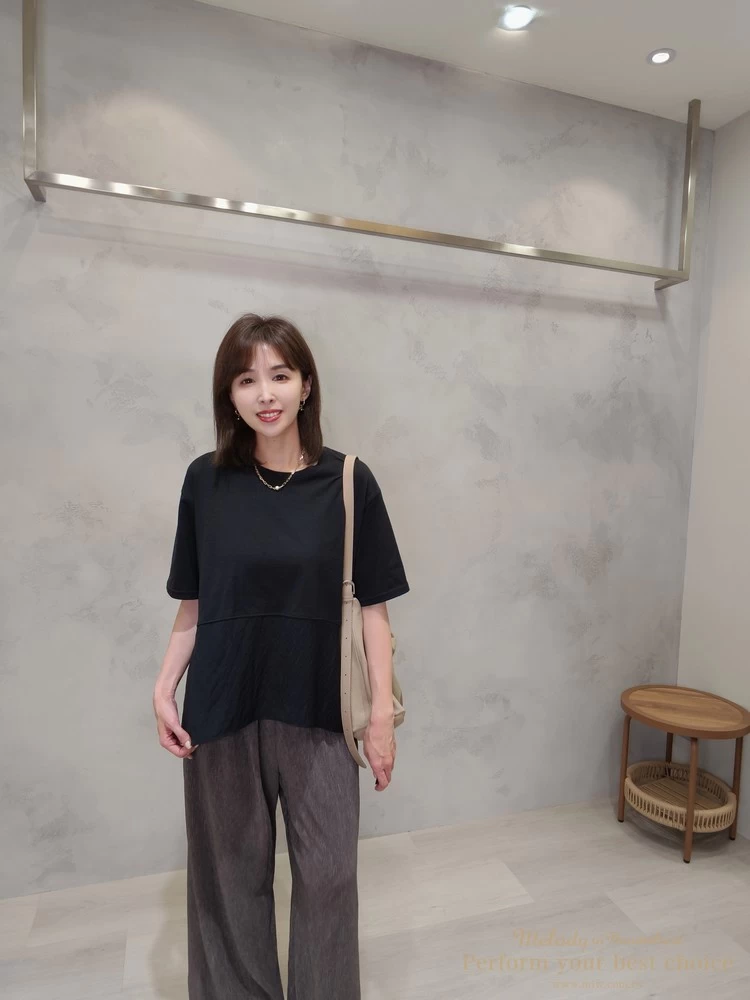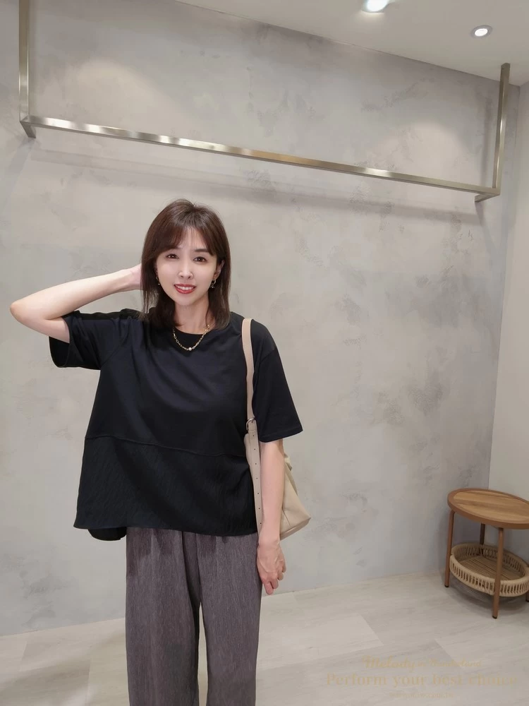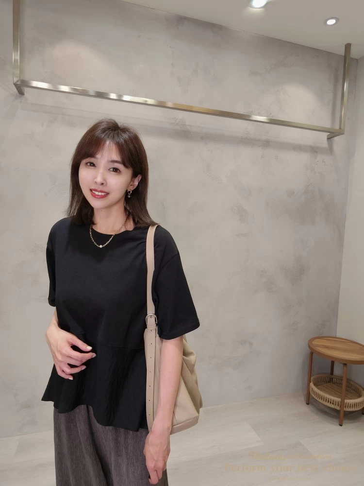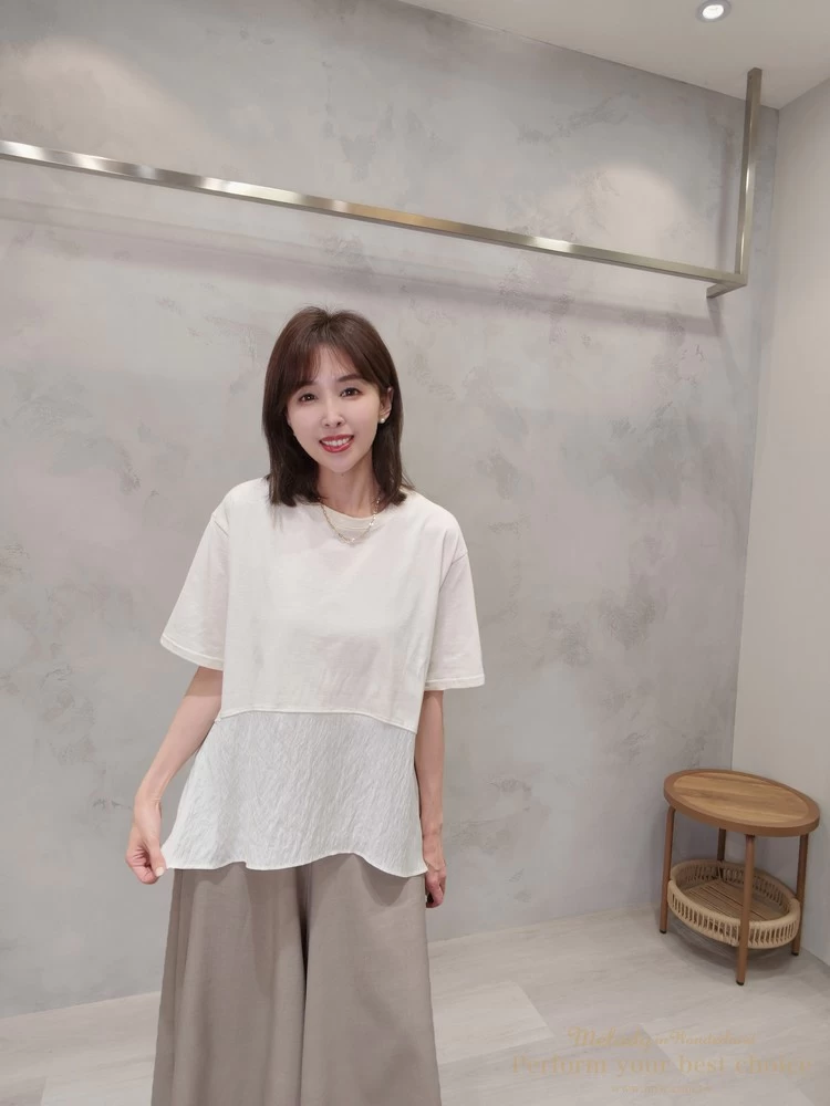 飄逸拼接造型前短後長上衣(3色)