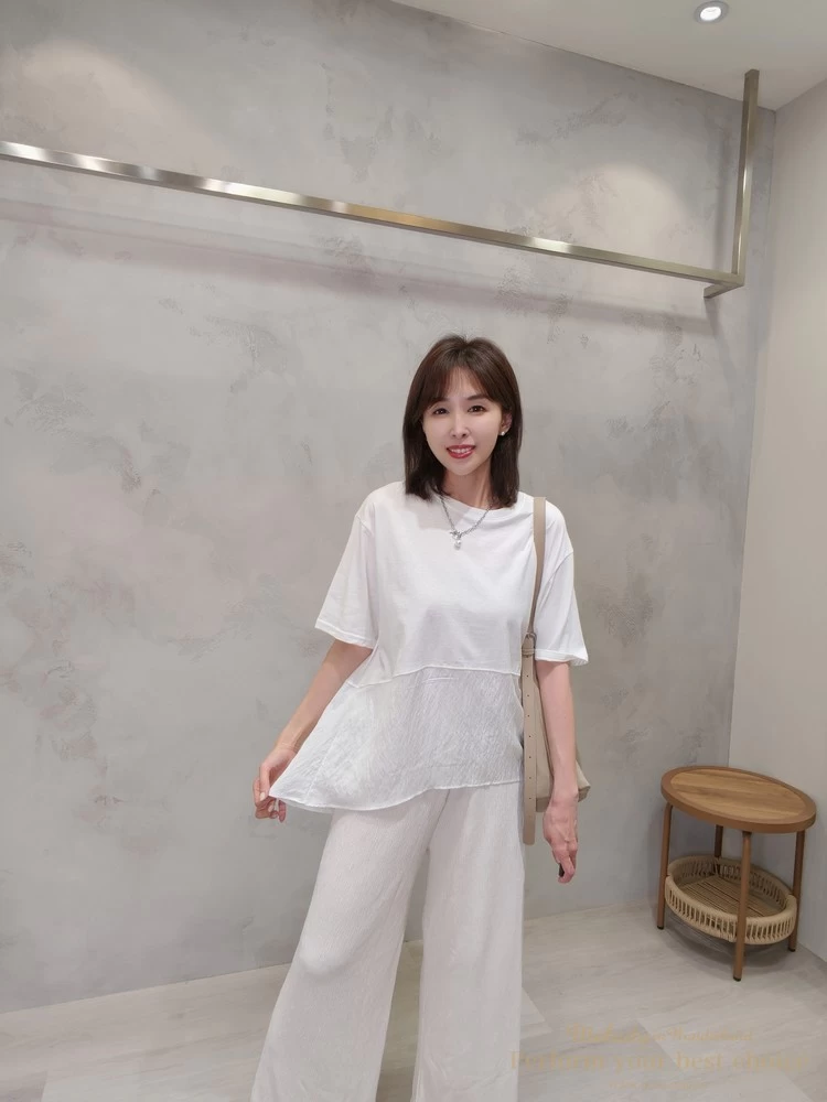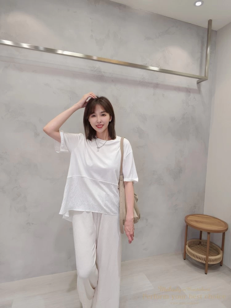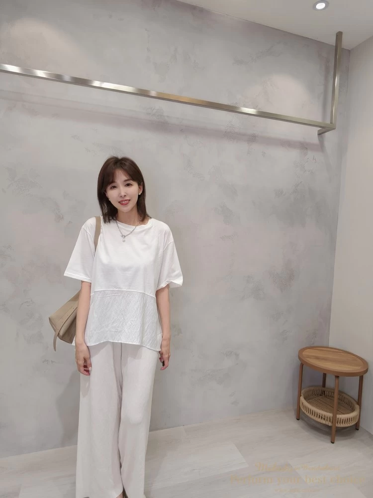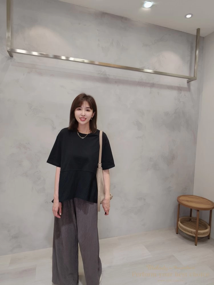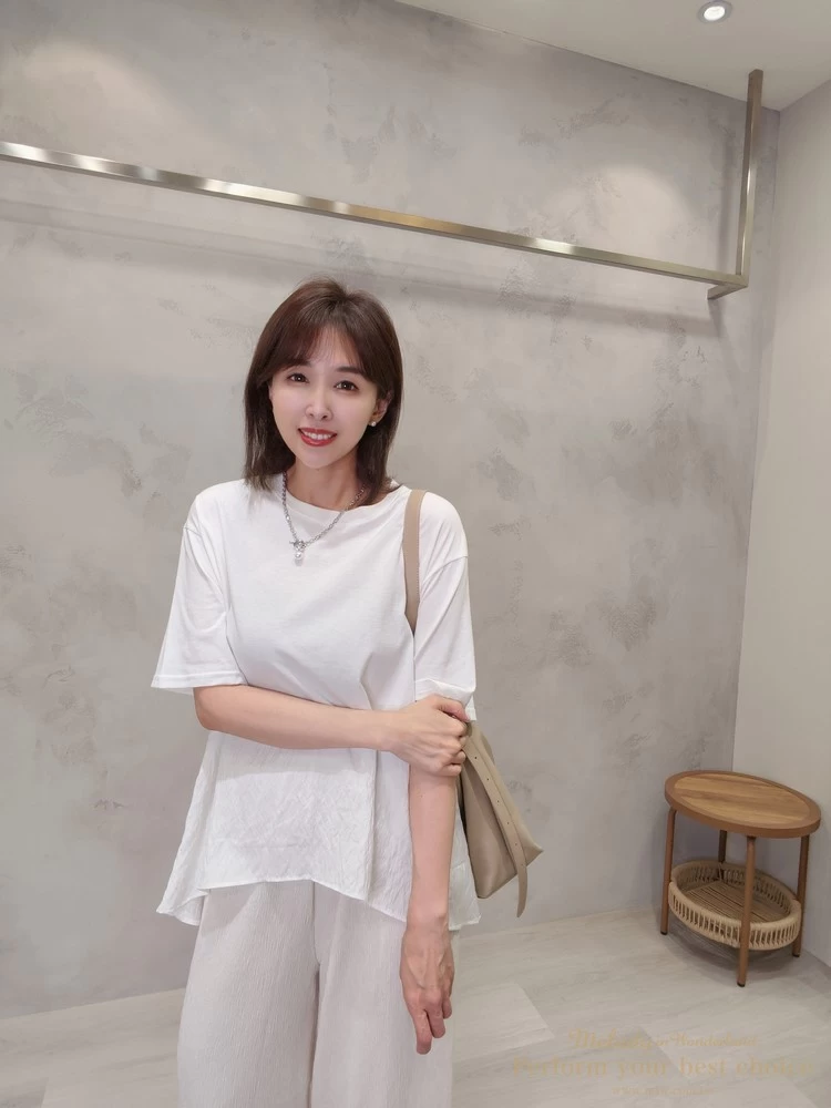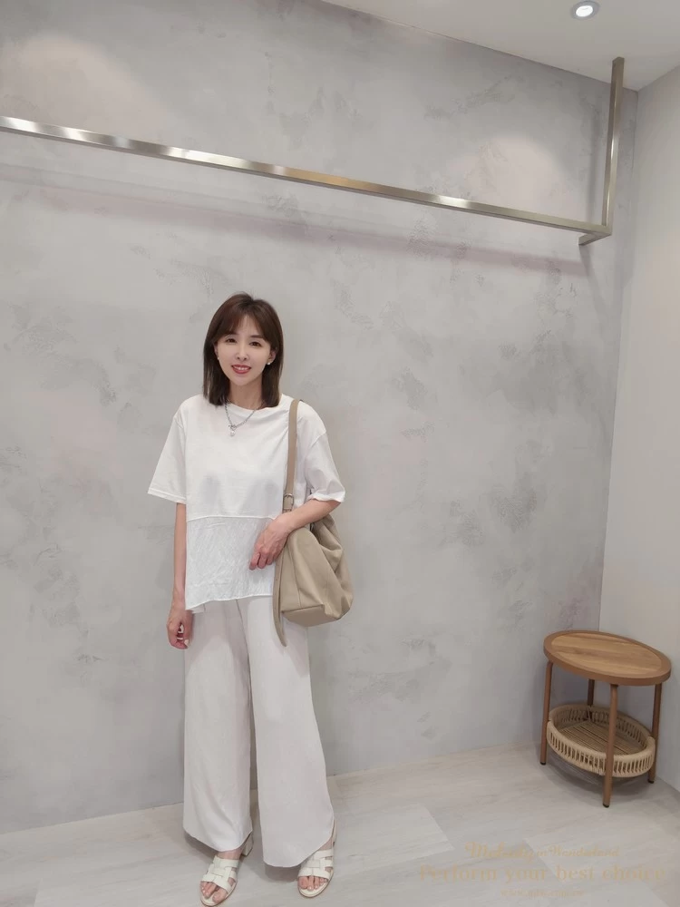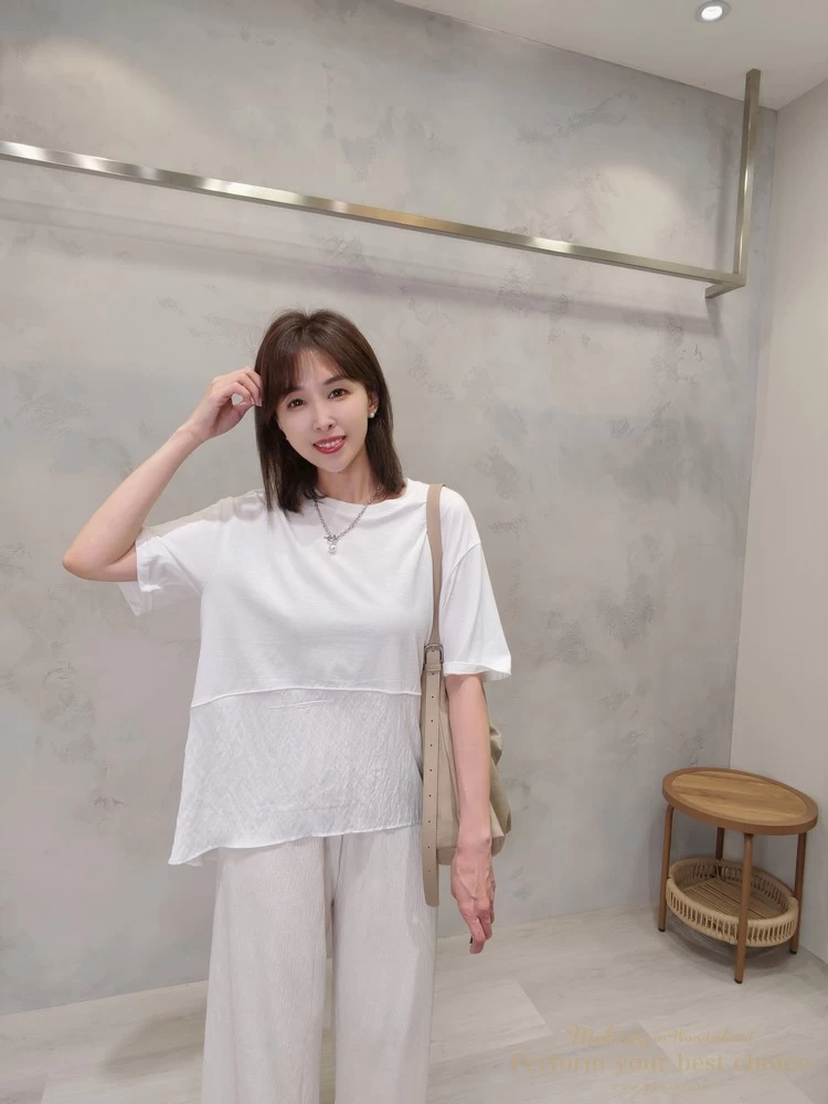 飄逸拼接造型前短後長上衣(3色)