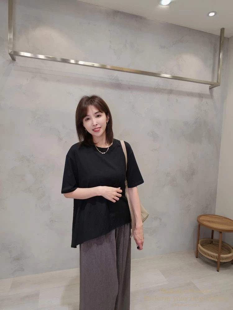2603-005 飄逸拼接造型前短後長上衣(3色)