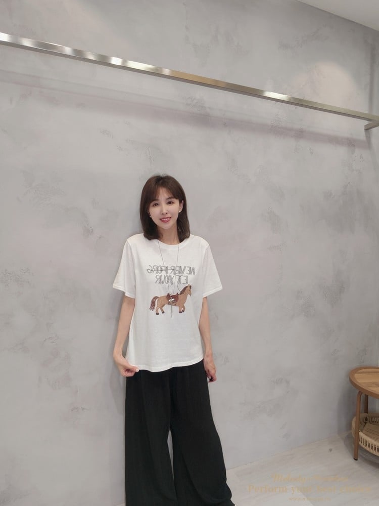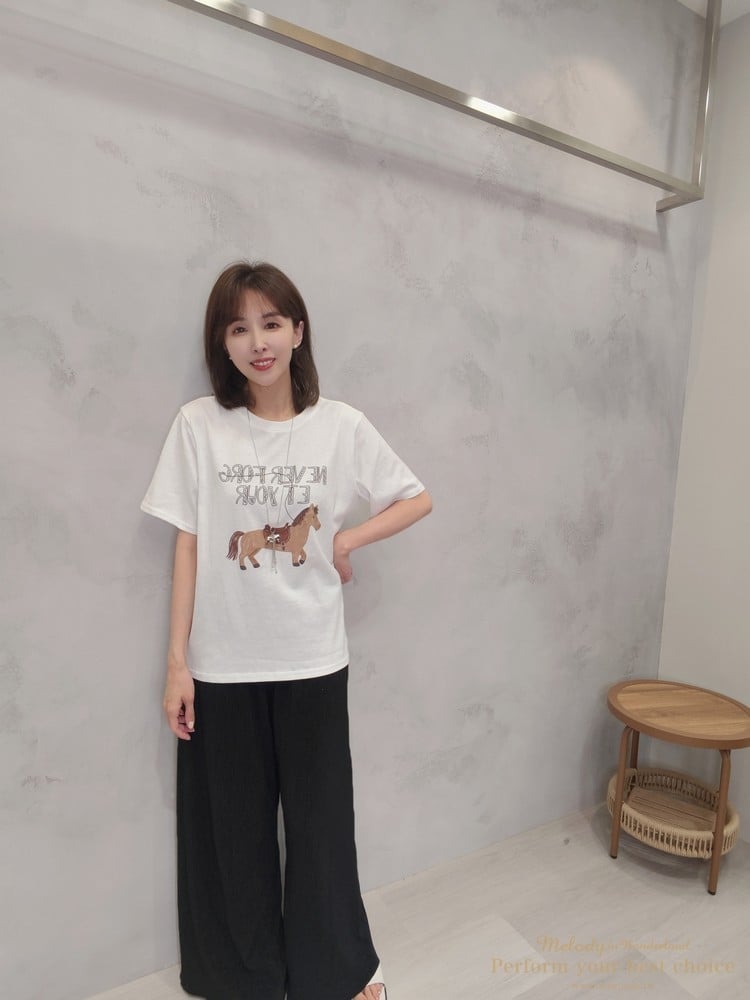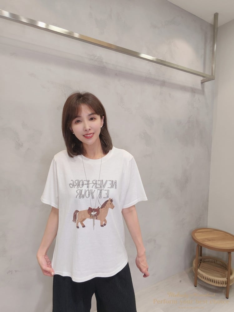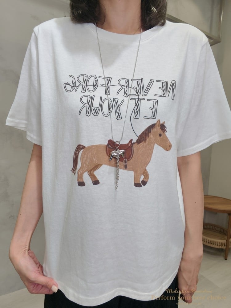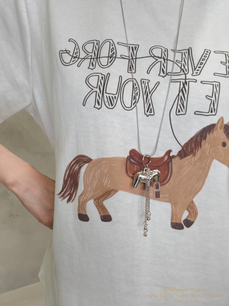 NEVER FORGET馬匹圖騰上衣-附項鍊(2色)