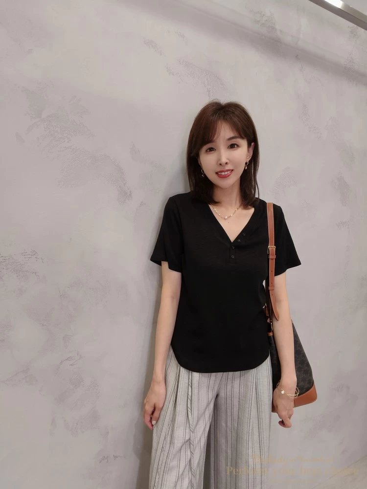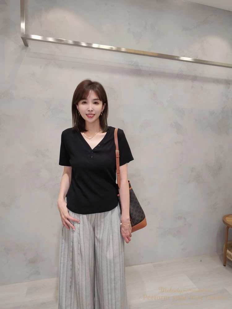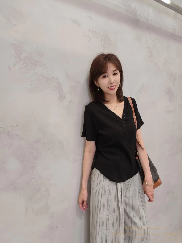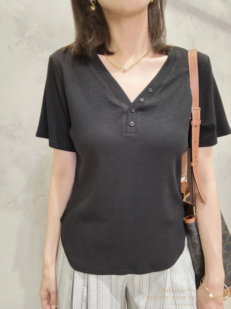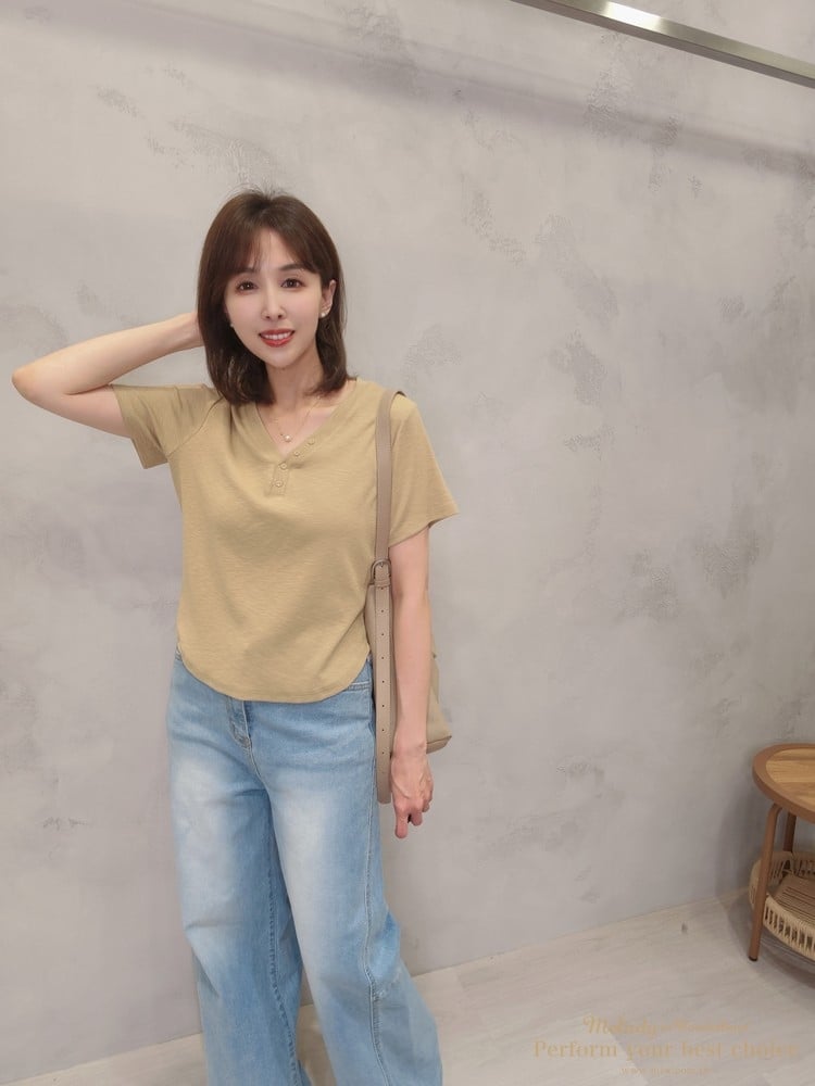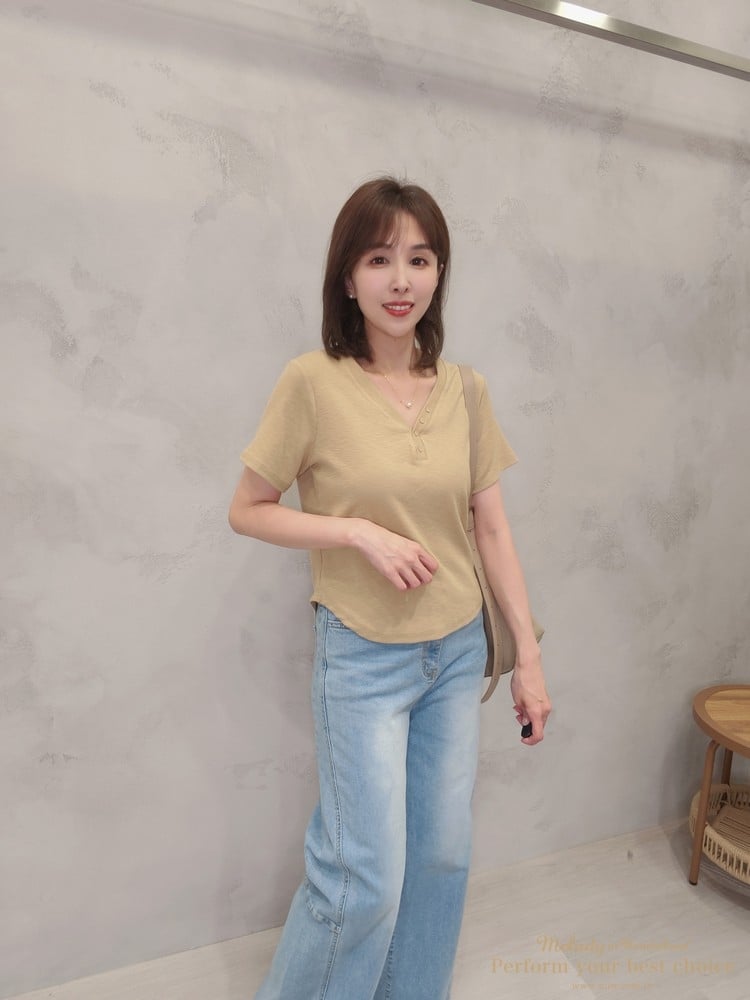 2603-018 大V領圓弧下擺造型上衣(4色)