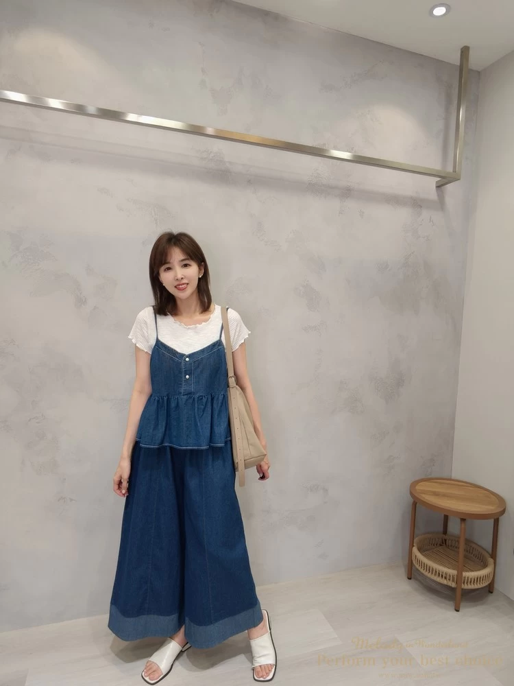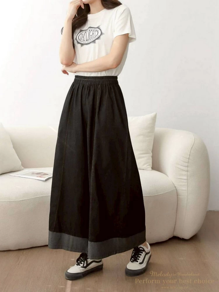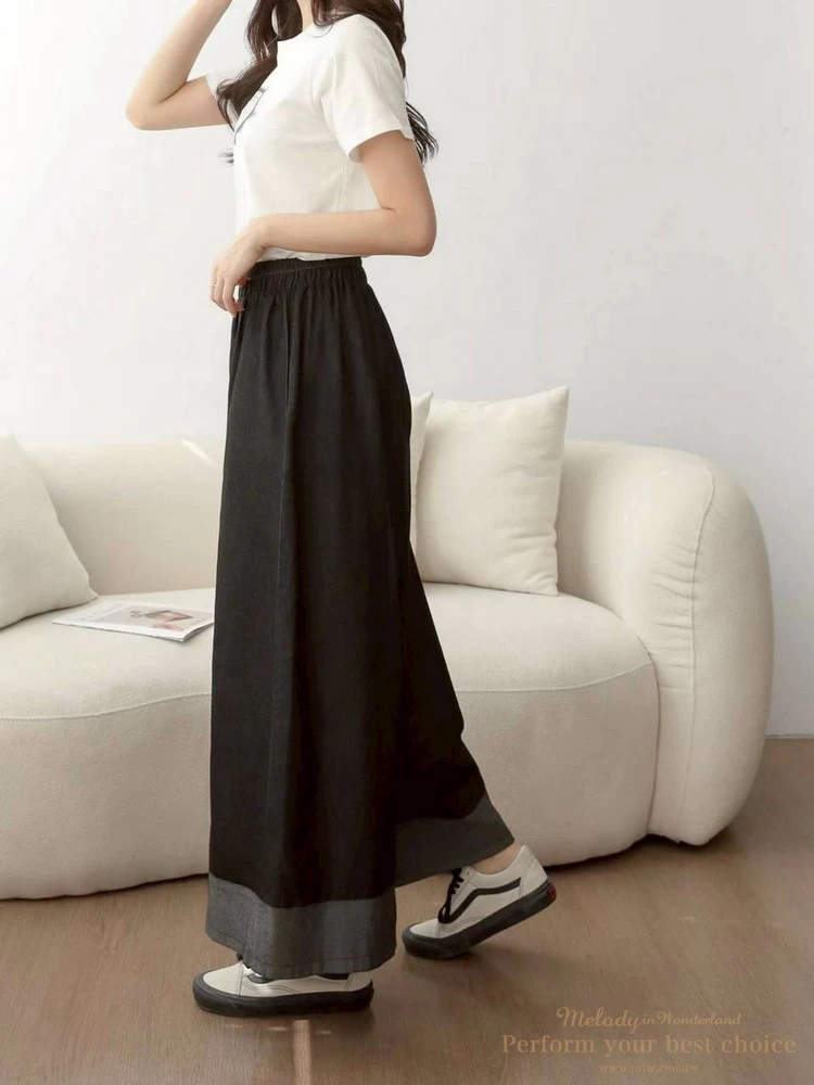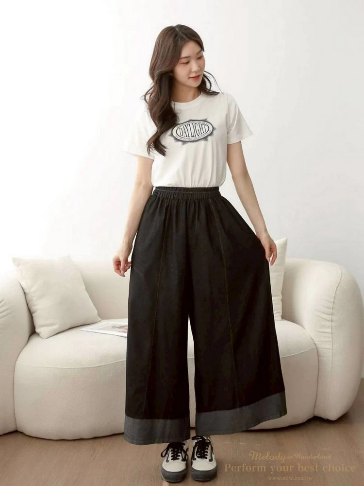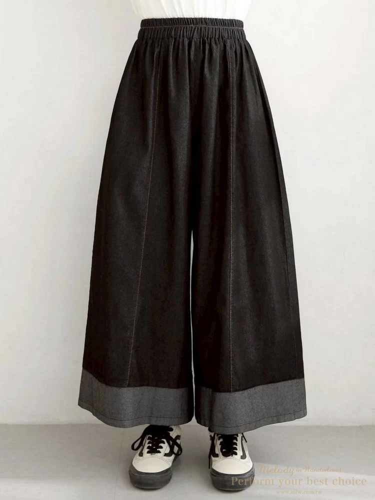 拚色造型單寧寬褲(2色)