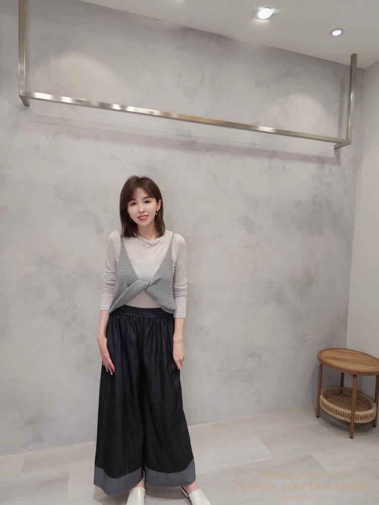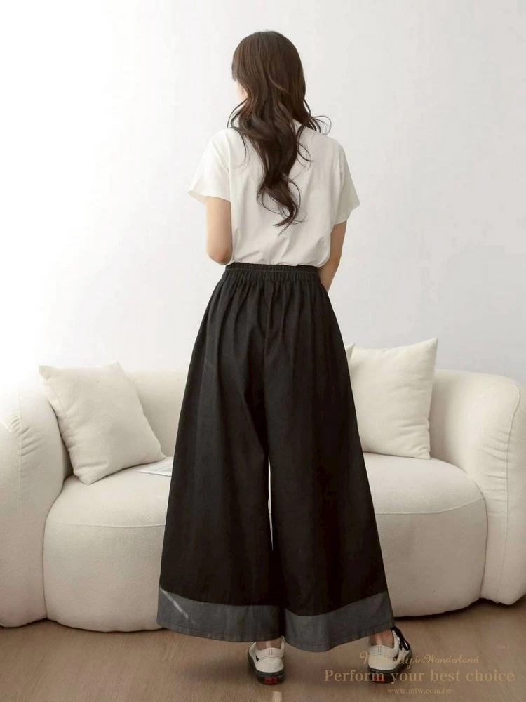2603-075 拚色造型單寧寬褲(2色)