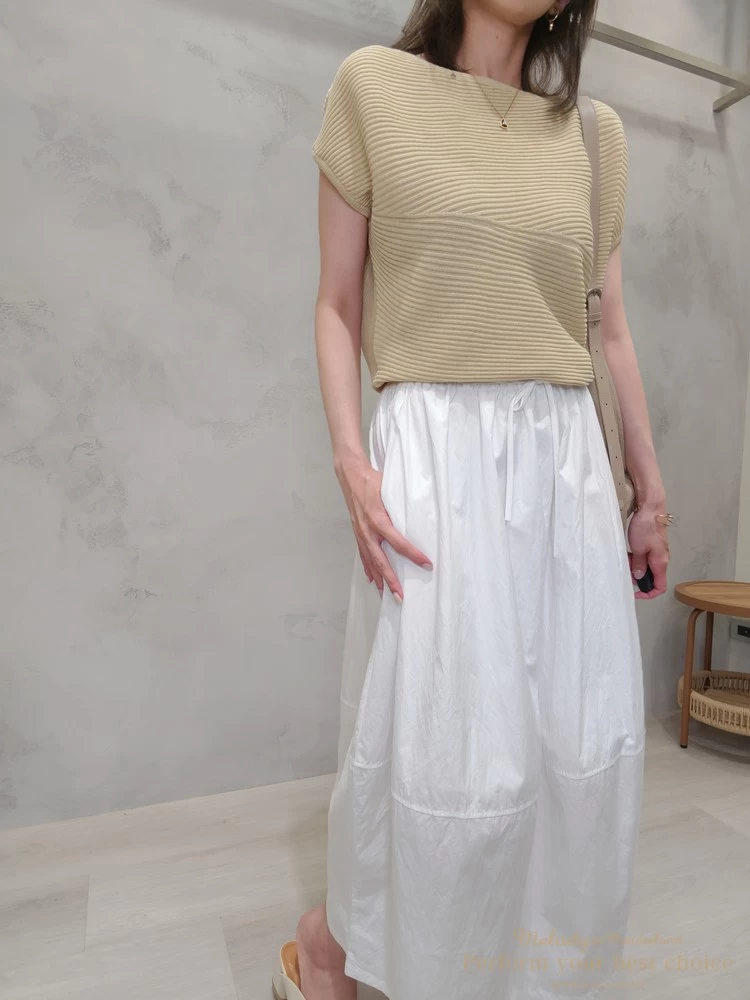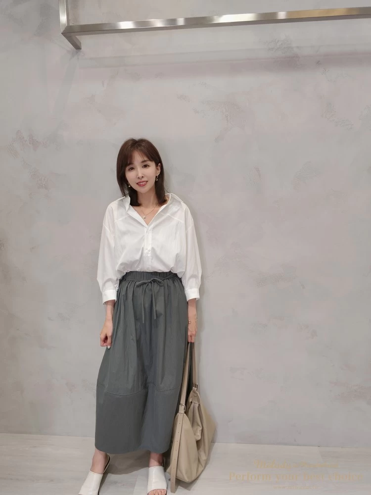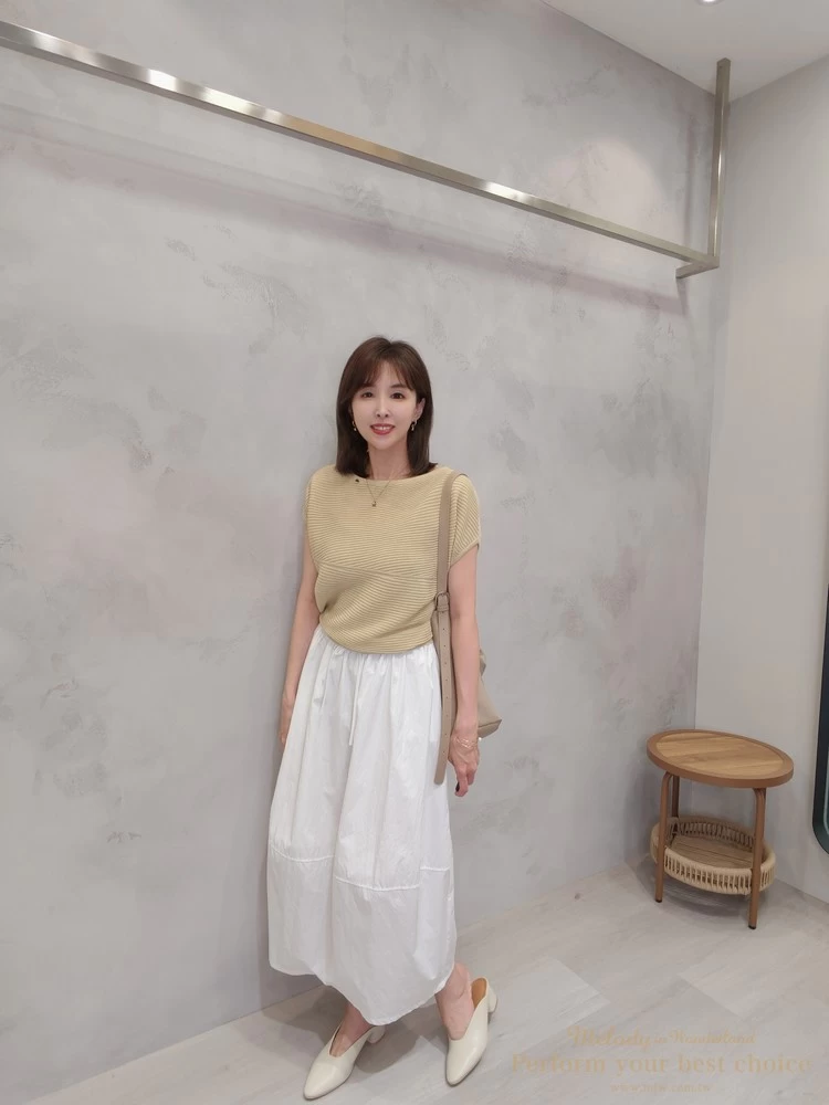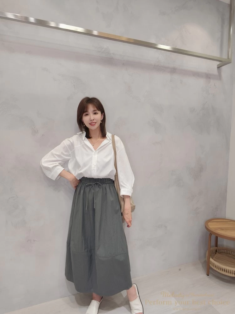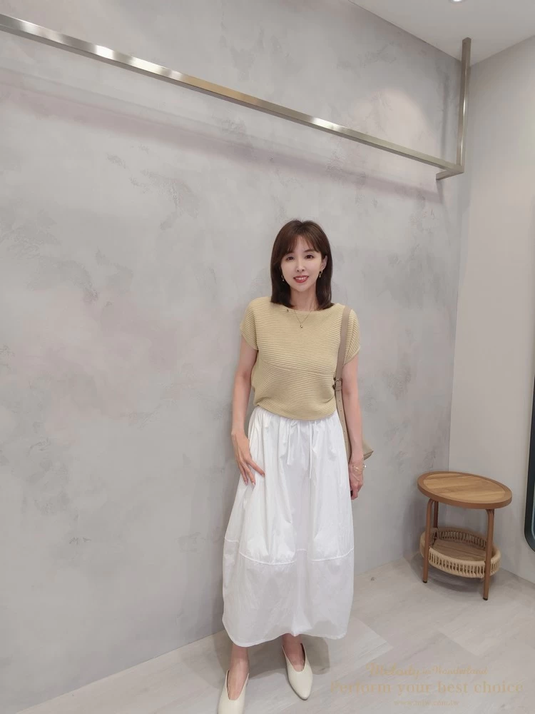 腰寬鬆緊帶33-56(26-44.1吋)/臀寬約70(55.1吋)/內裡裙長約52/全長86