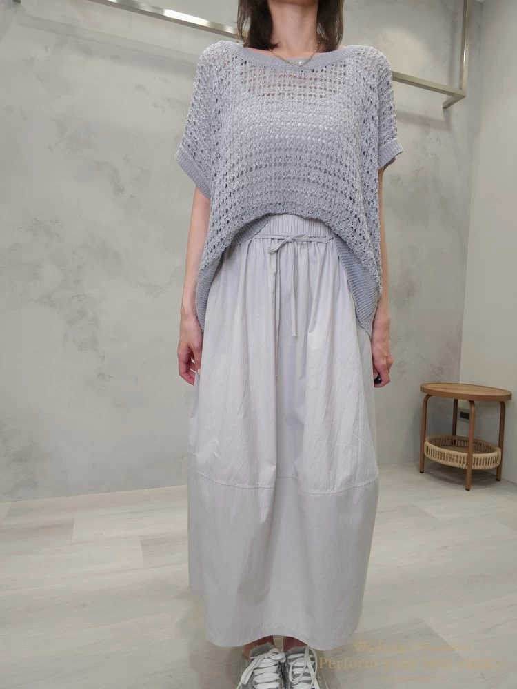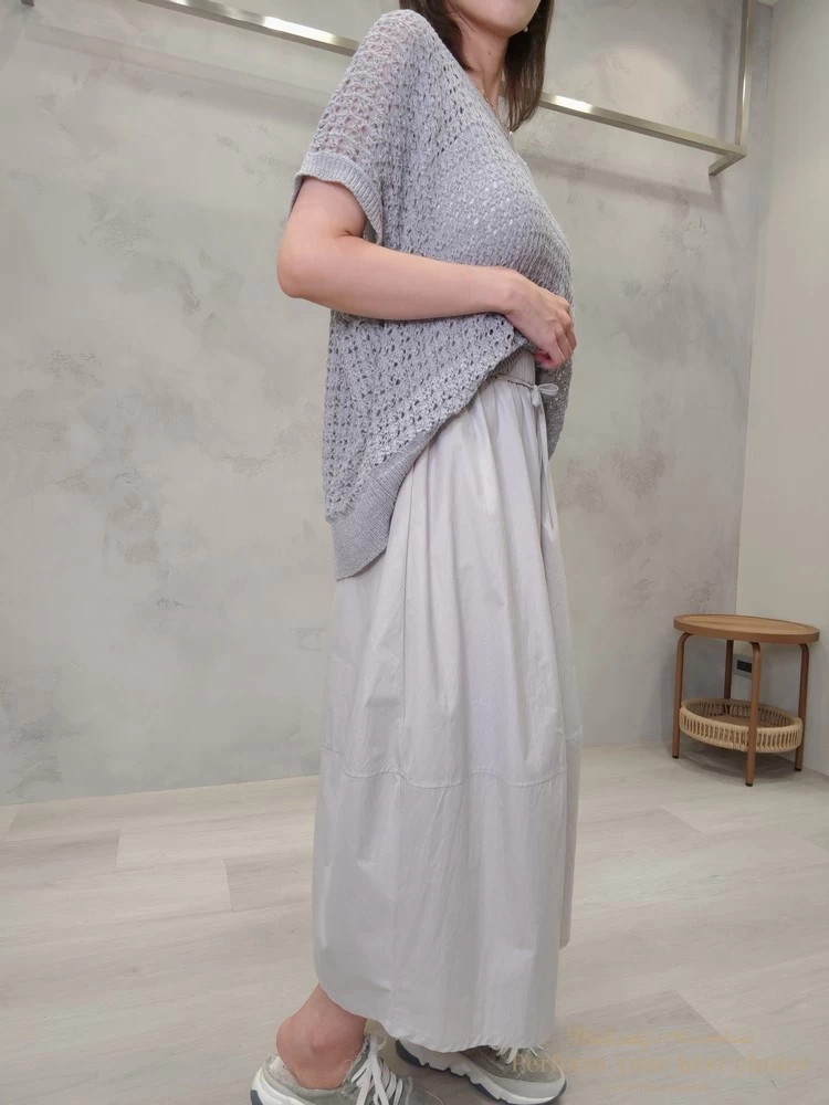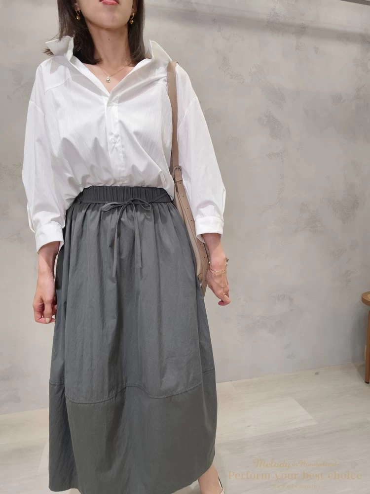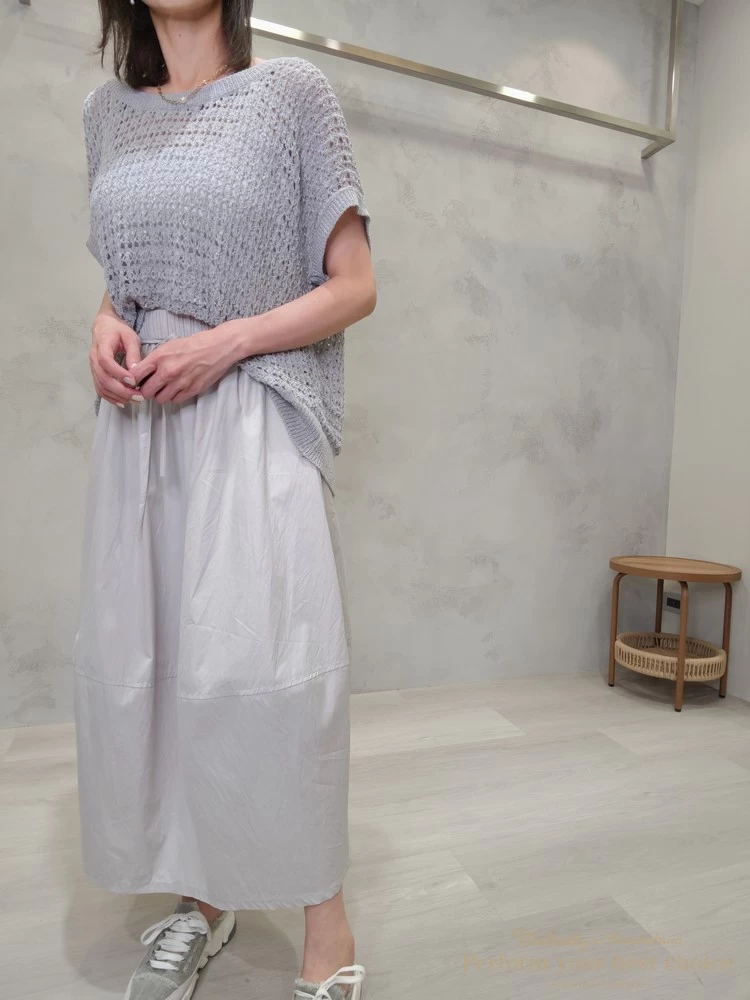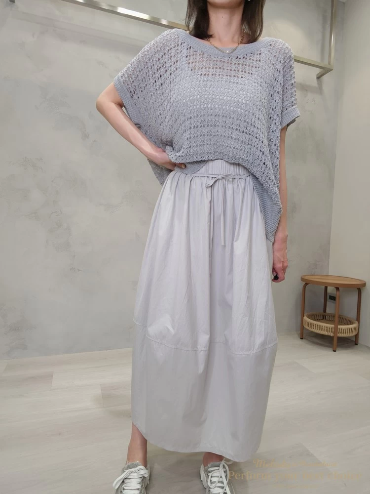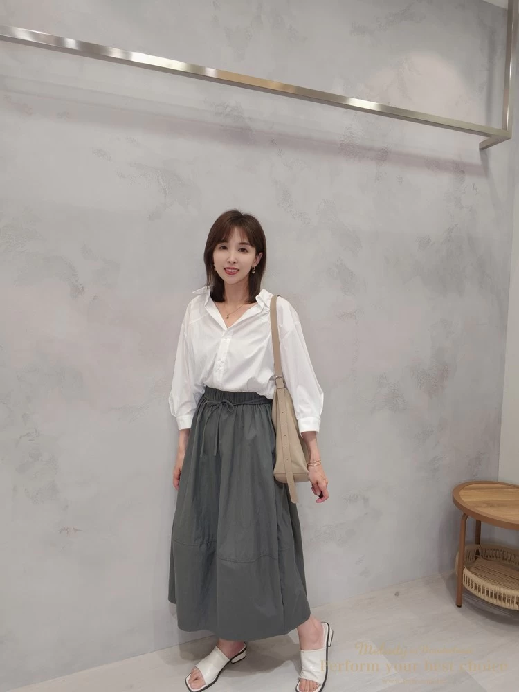 腰寬鬆緊帶33-56(26-44.1吋)/臀寬約70(55.1吋)/內裡裙長約52/全長86