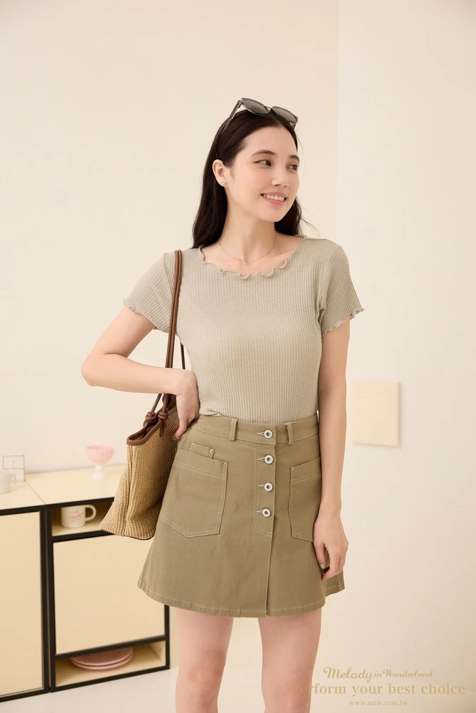 2603-024 捲邊造型羅紋上衣(4色)