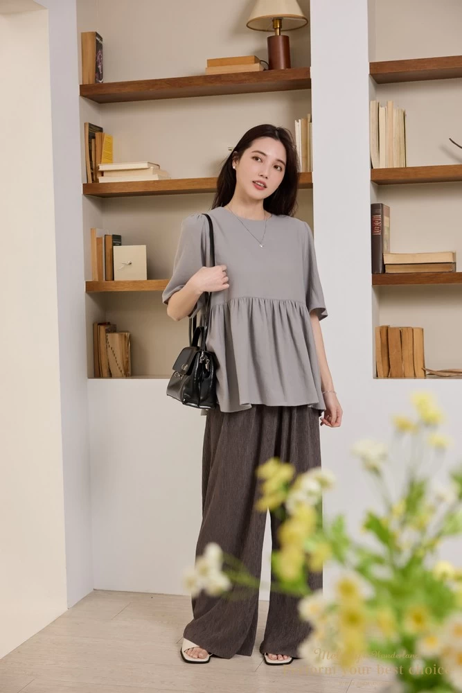 2603-076 自訂款-質感率性細摺造型寬褲(3色)