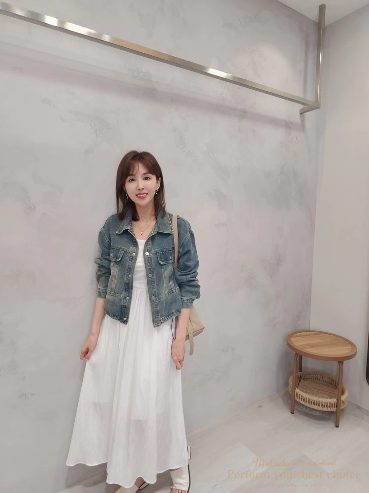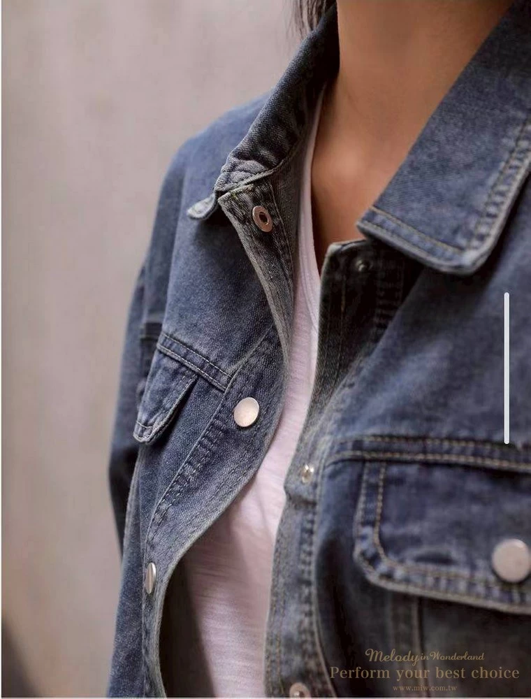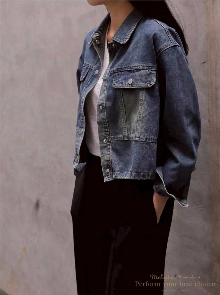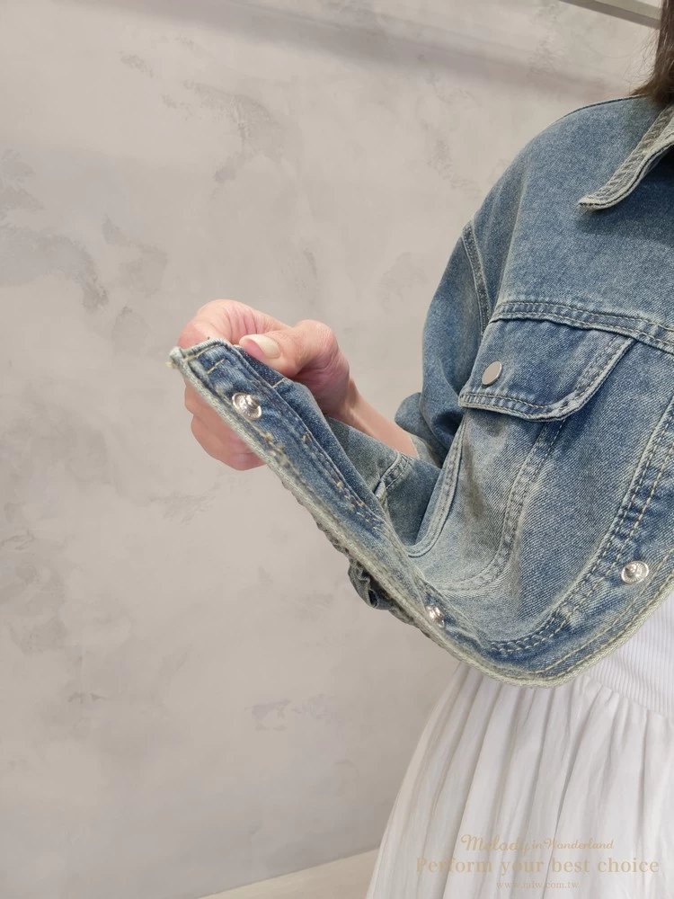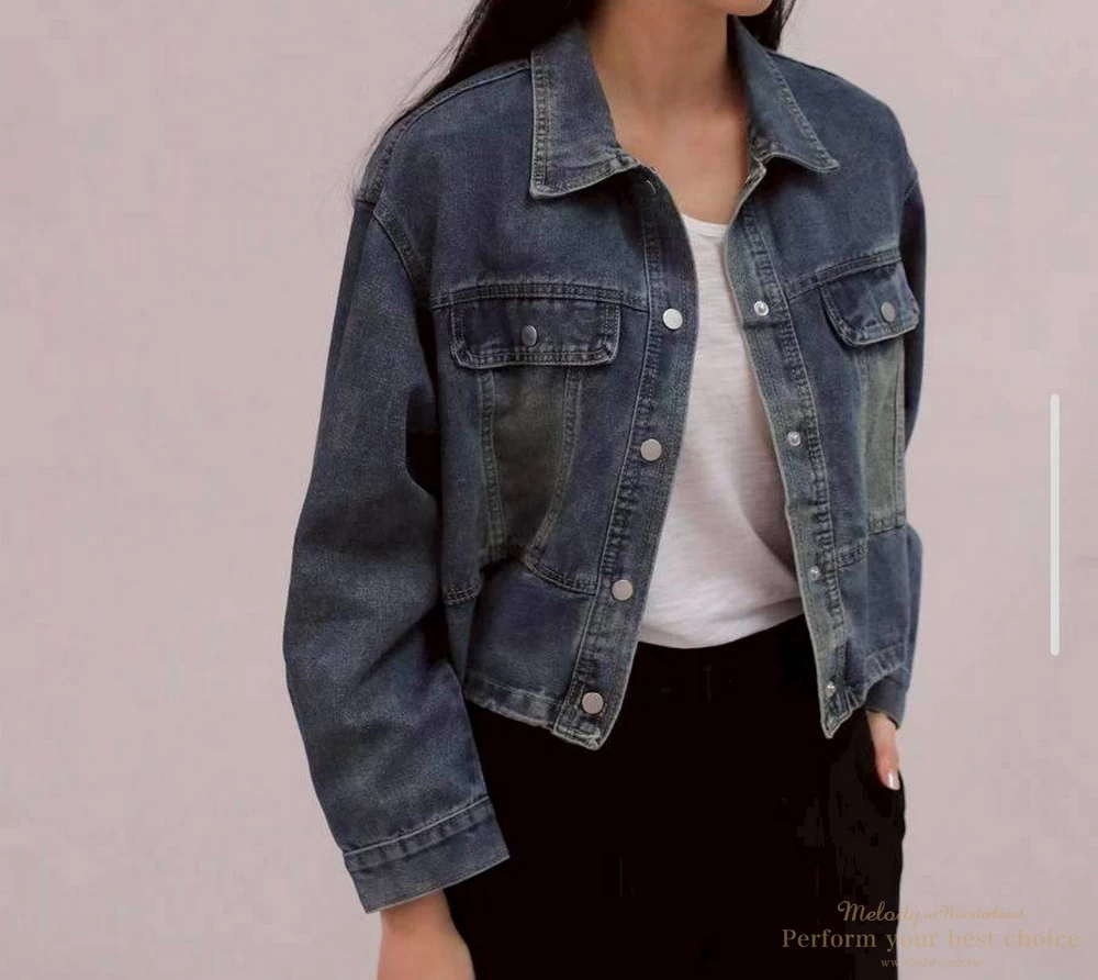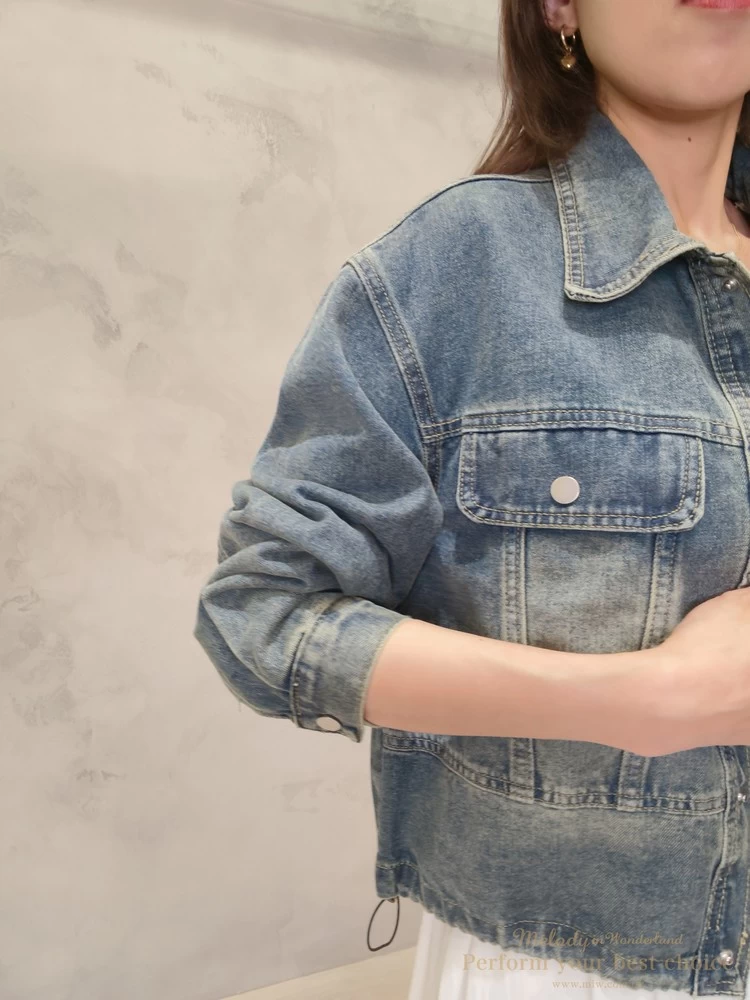 2603-042 仿舊刷色下擺抽繩造型牛仔外套(2色)