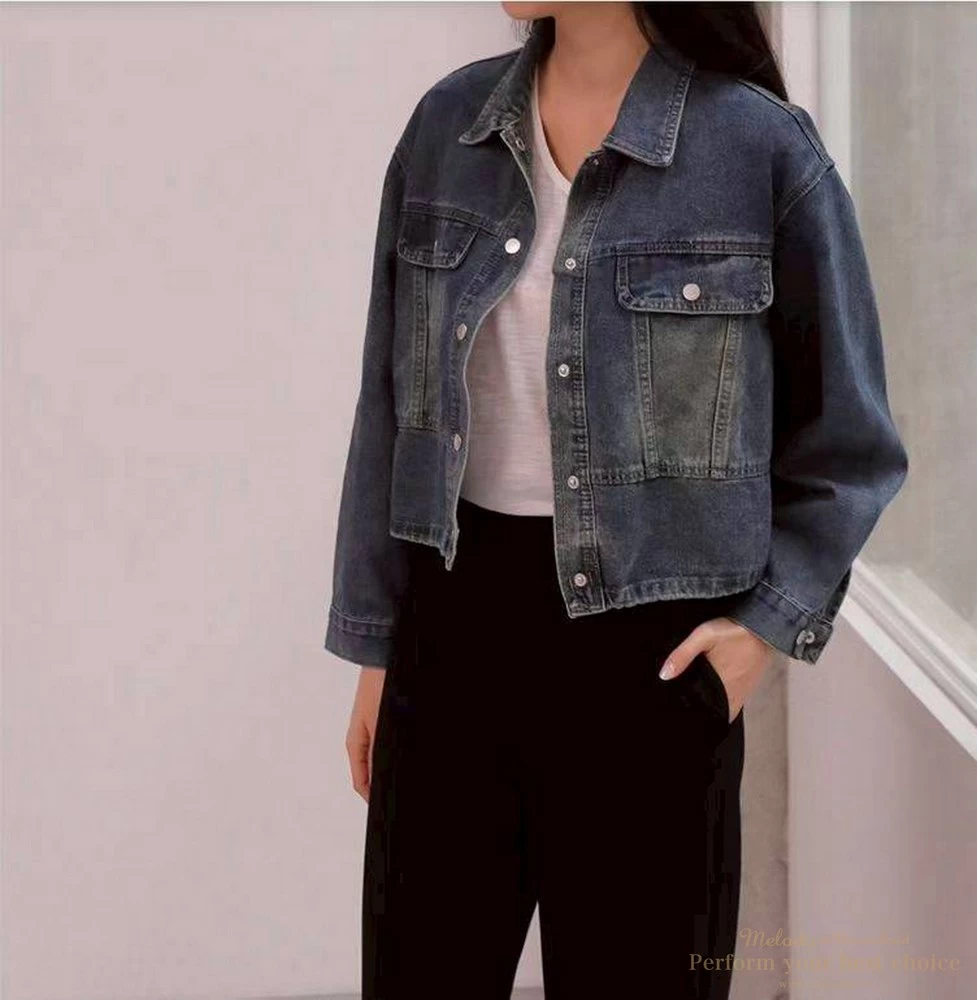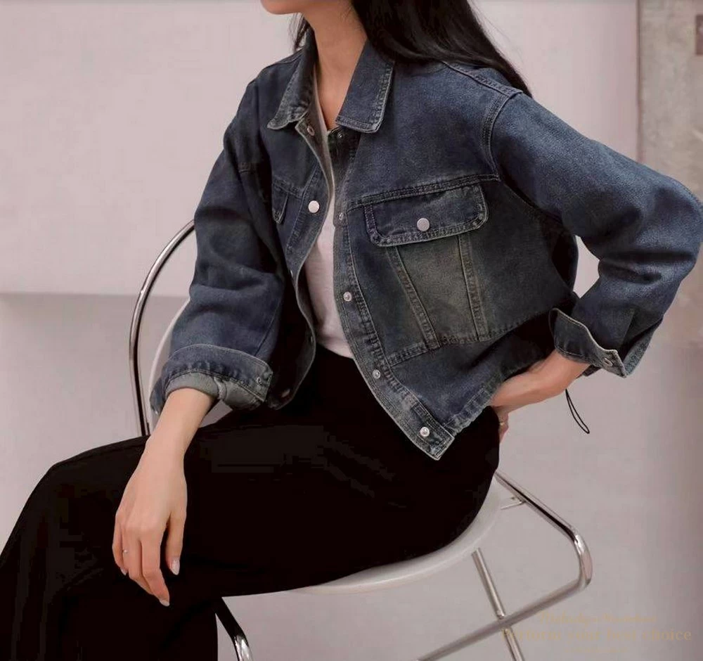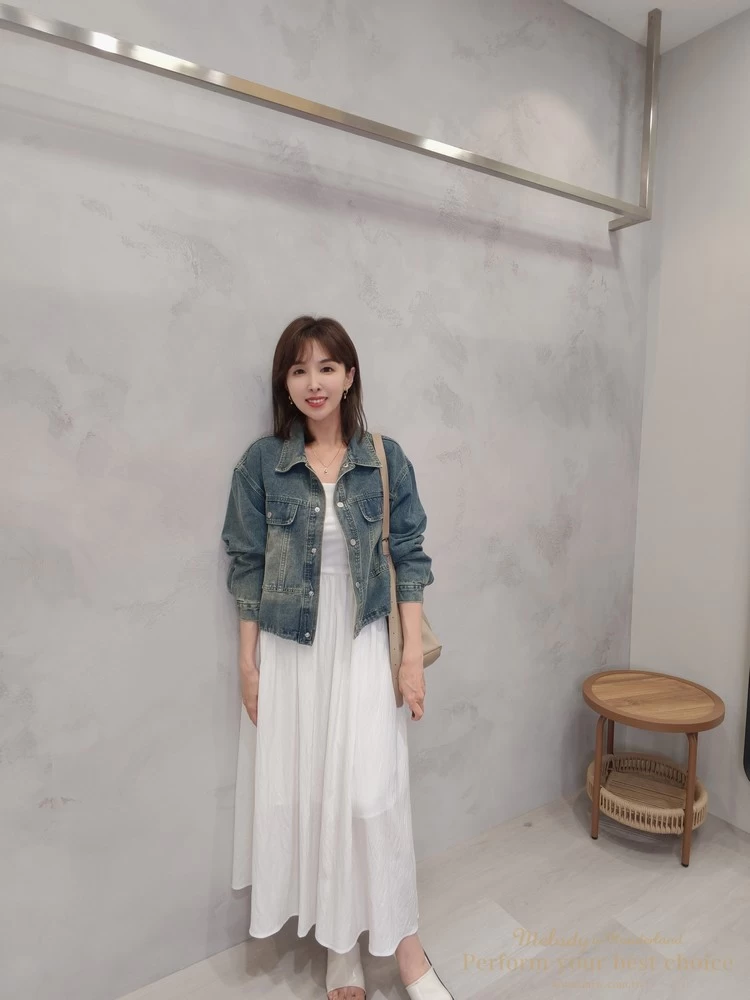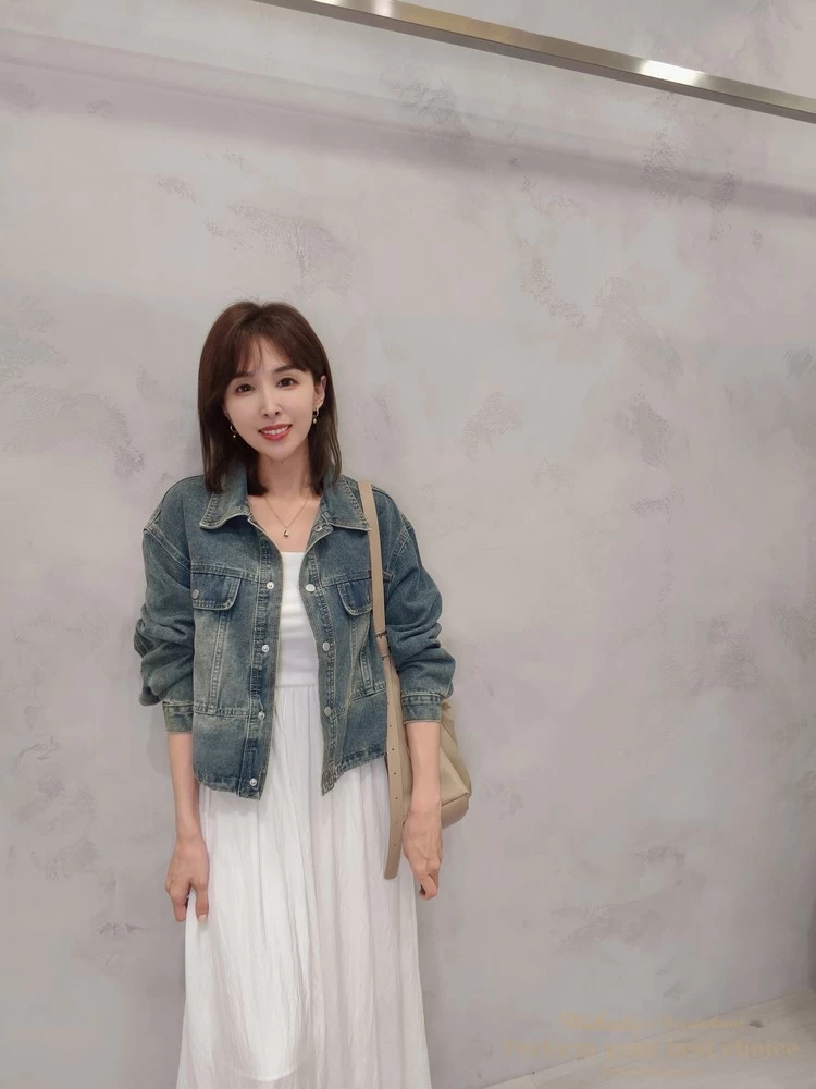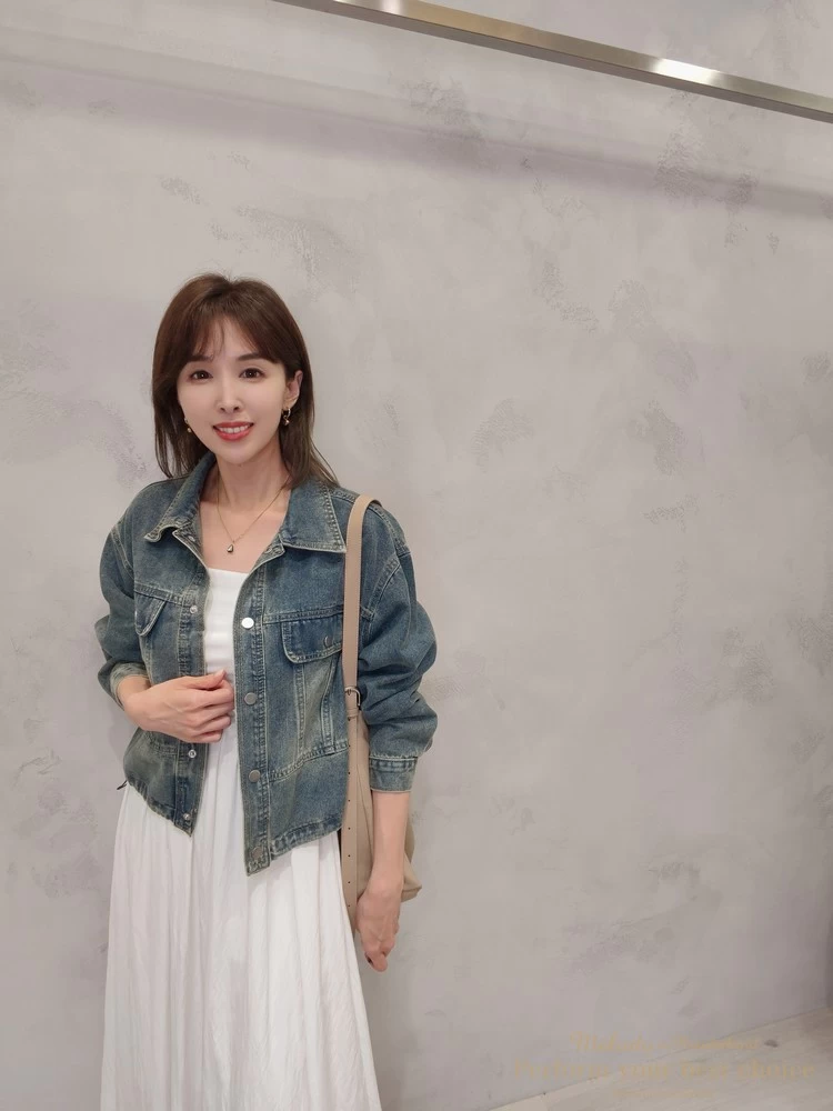 2603-042 仿舊刷色下擺抽繩造型牛仔外套(2色)
