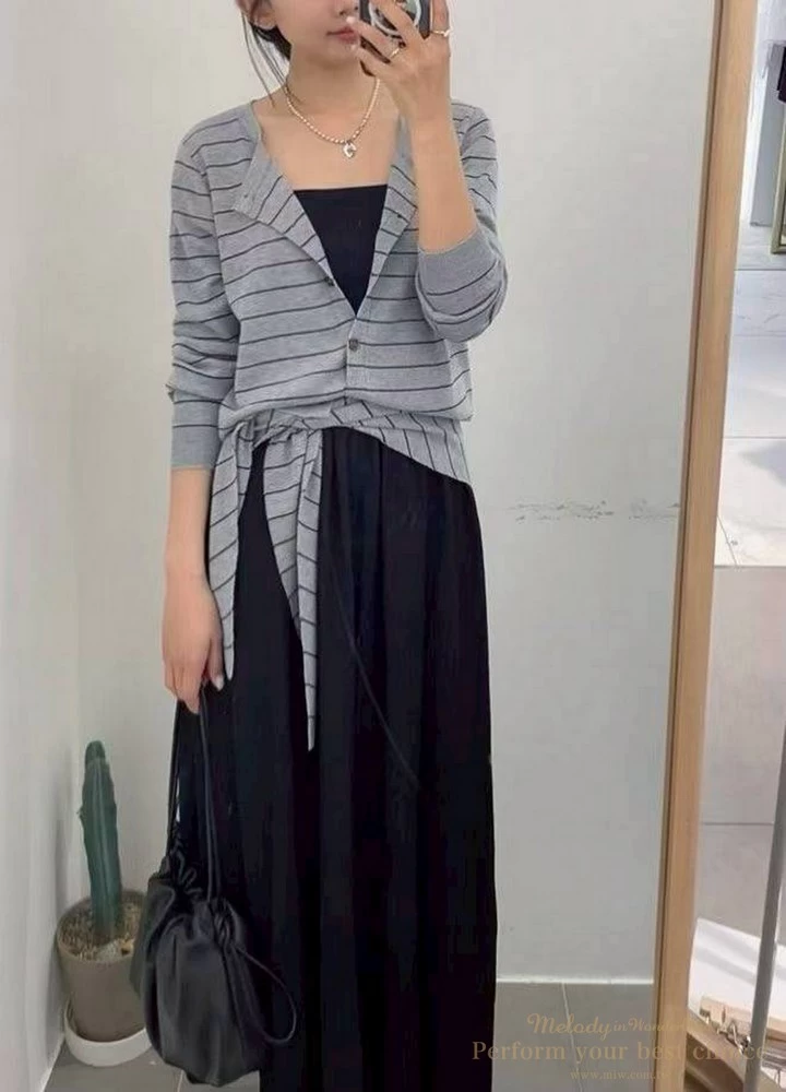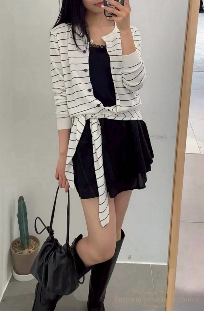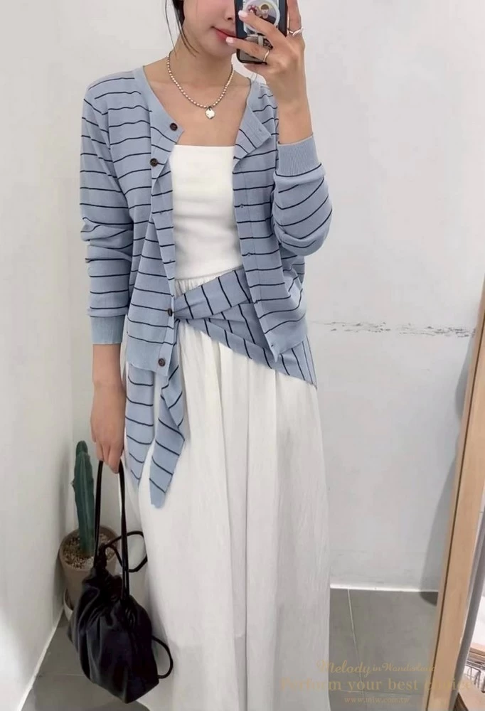 2603-043 休閒條紋針織外套-附披肩(3色)