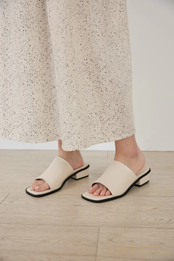 亮皮寬楦頭低跟涼拖鞋(3色)