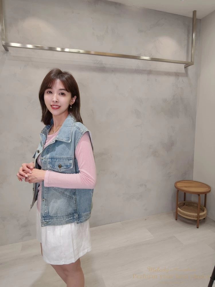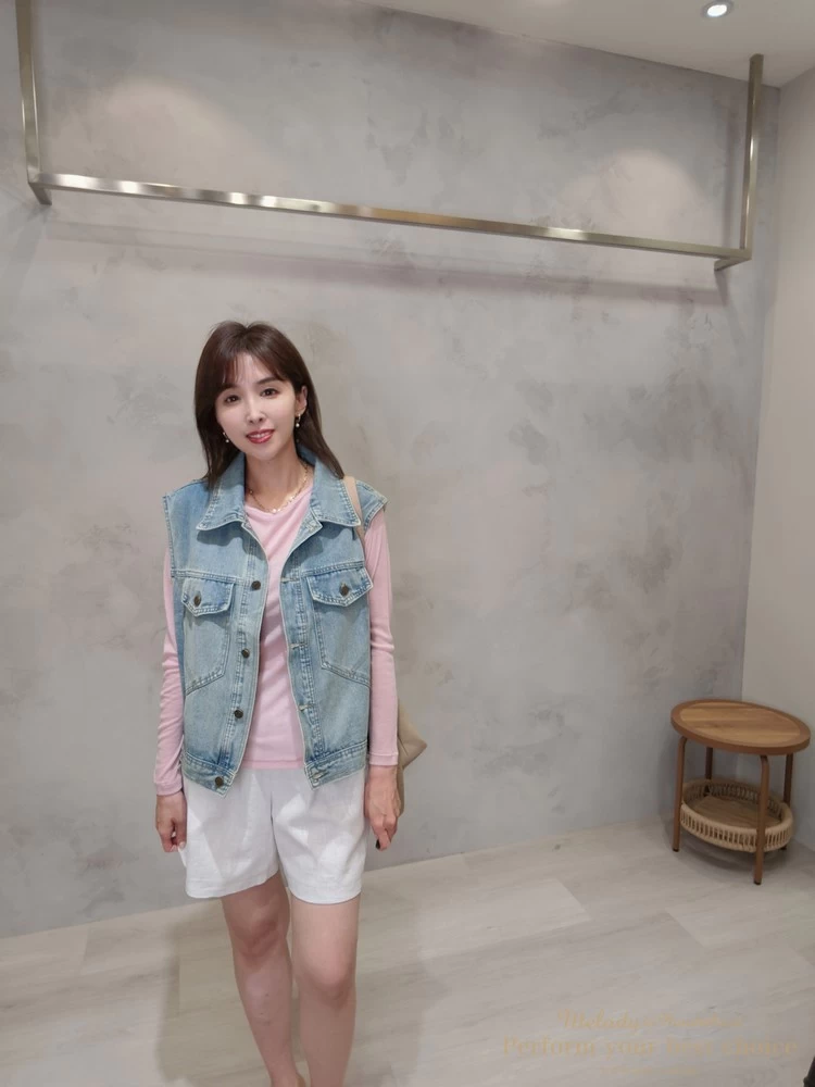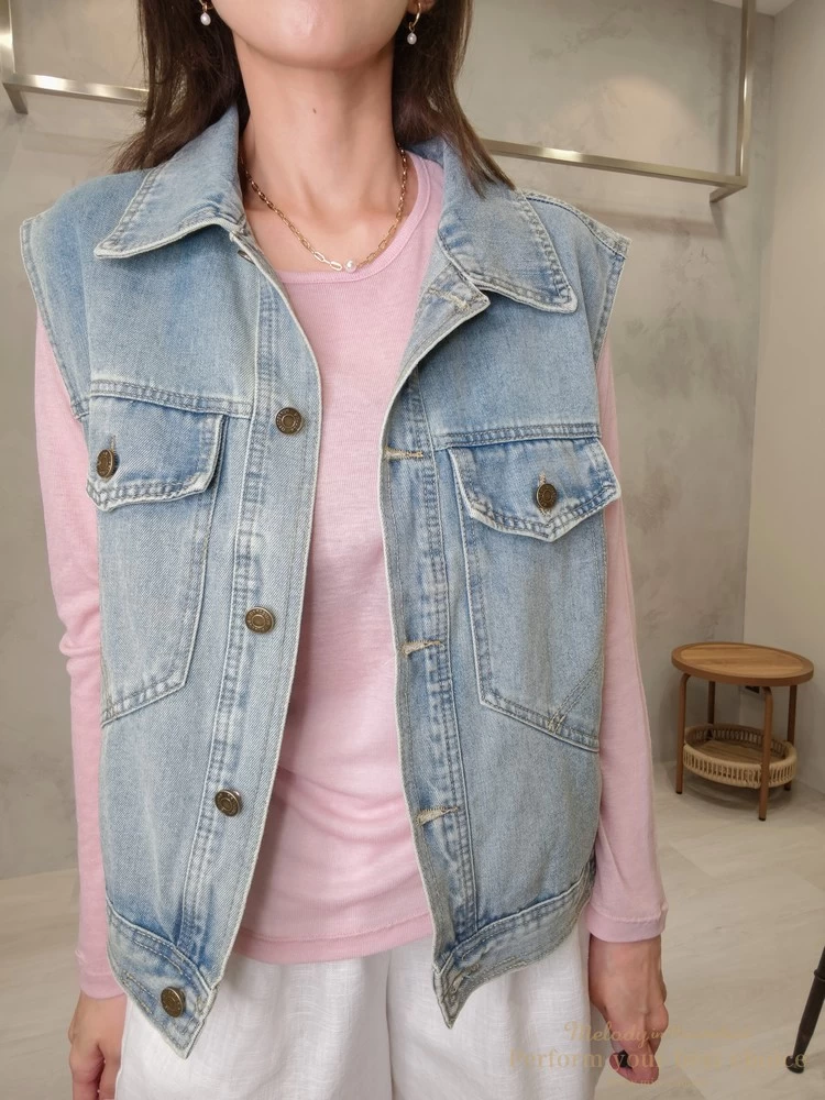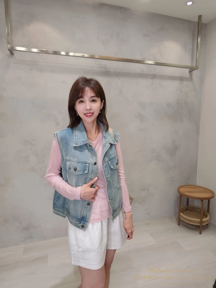 率性翻領雙口袋造型牛仔背心(2色)