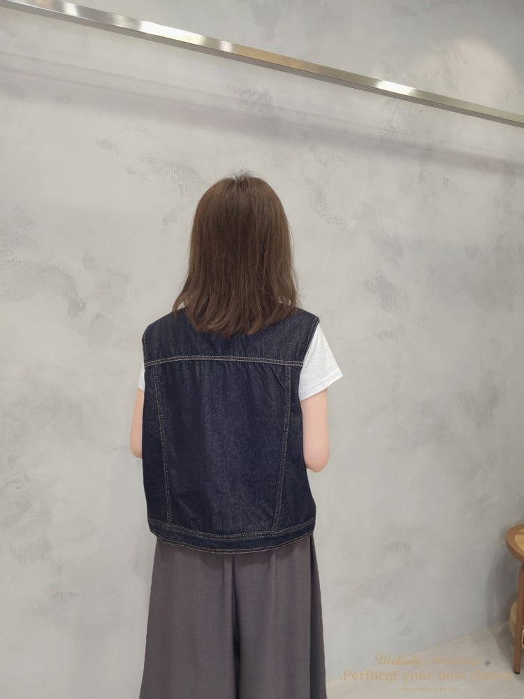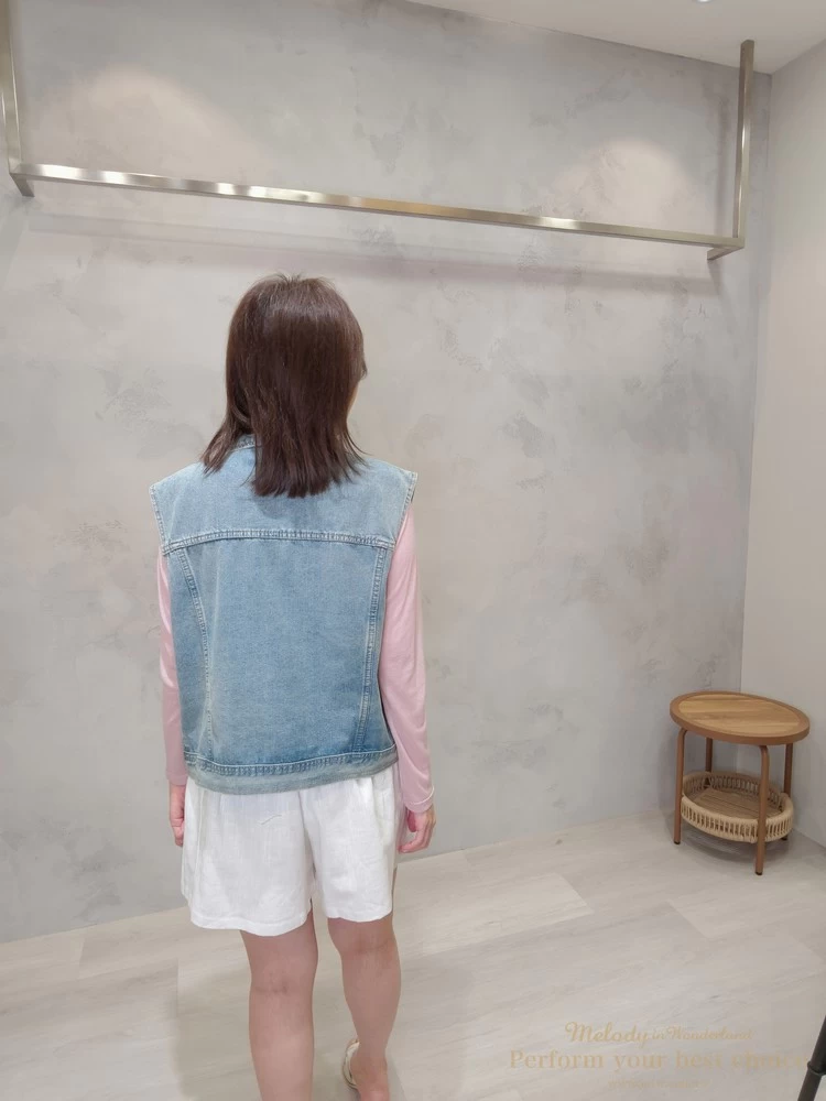2603-044 率性翻領雙口袋造型牛仔背心(2色)