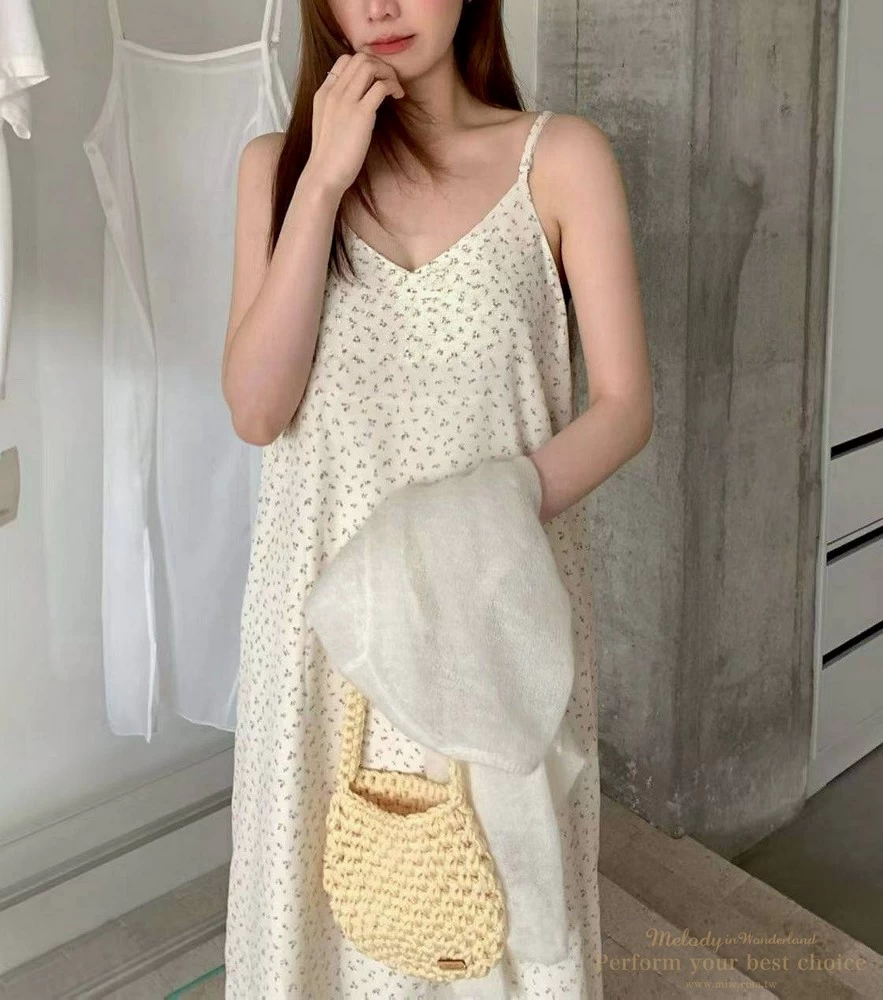 2603-052 氣質小花圖騰V領長洋(2色)