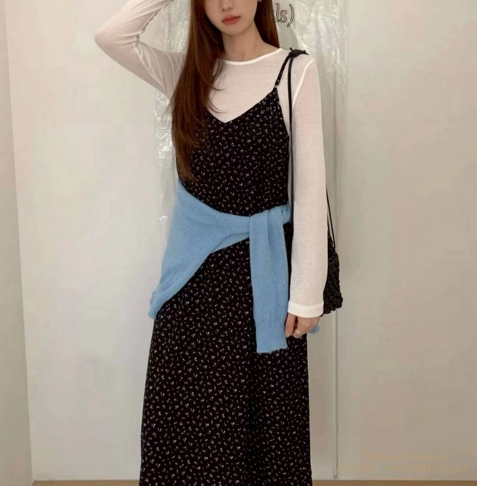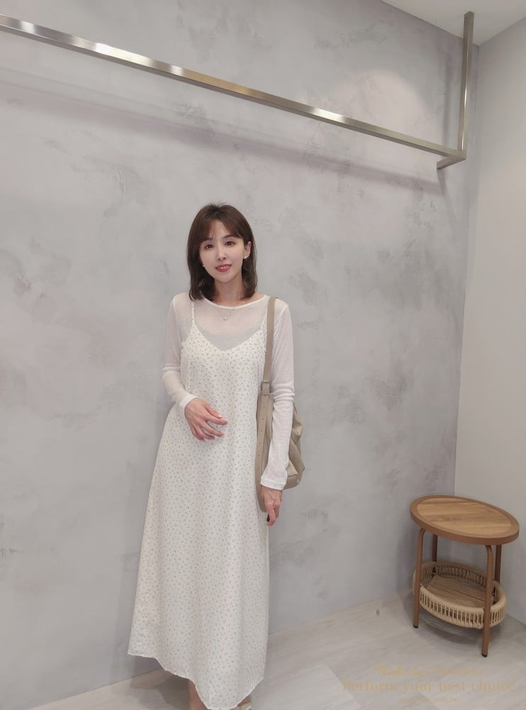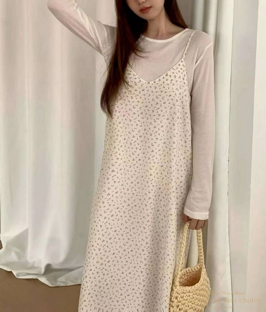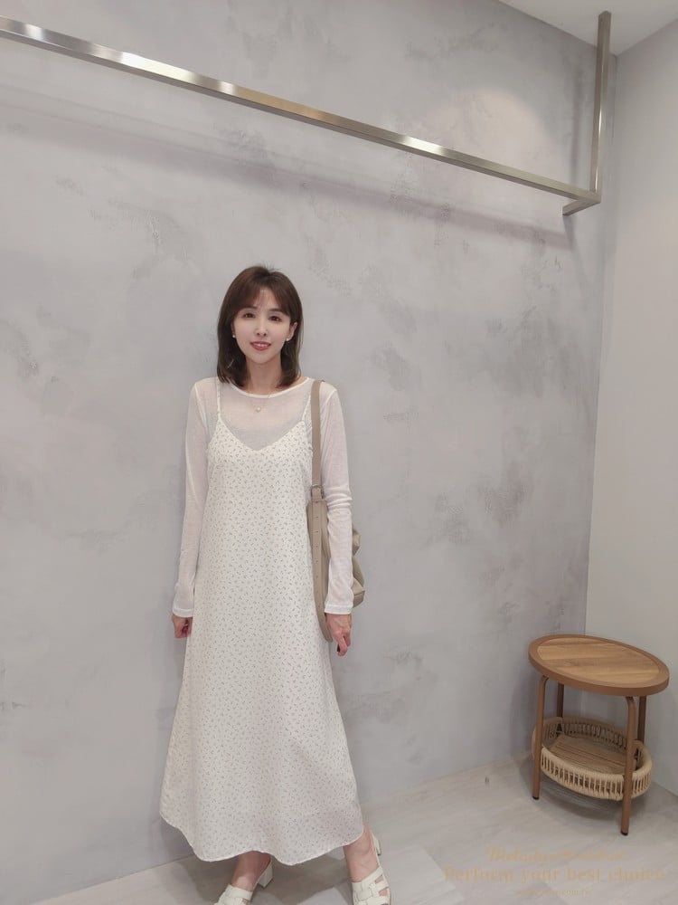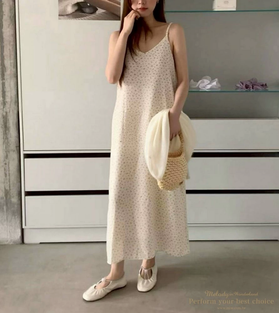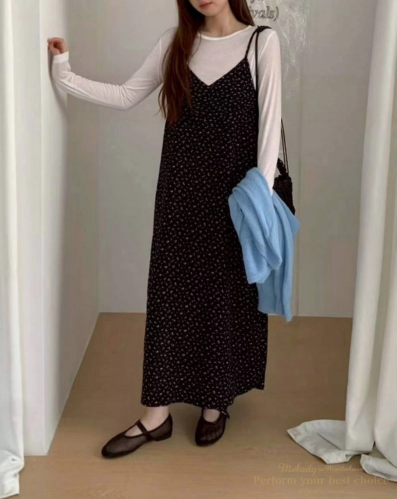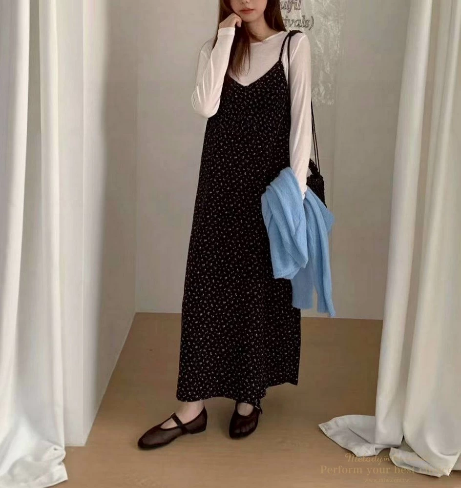 氣質小花圖騰V領長洋(2色)