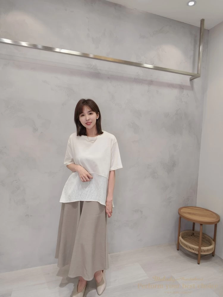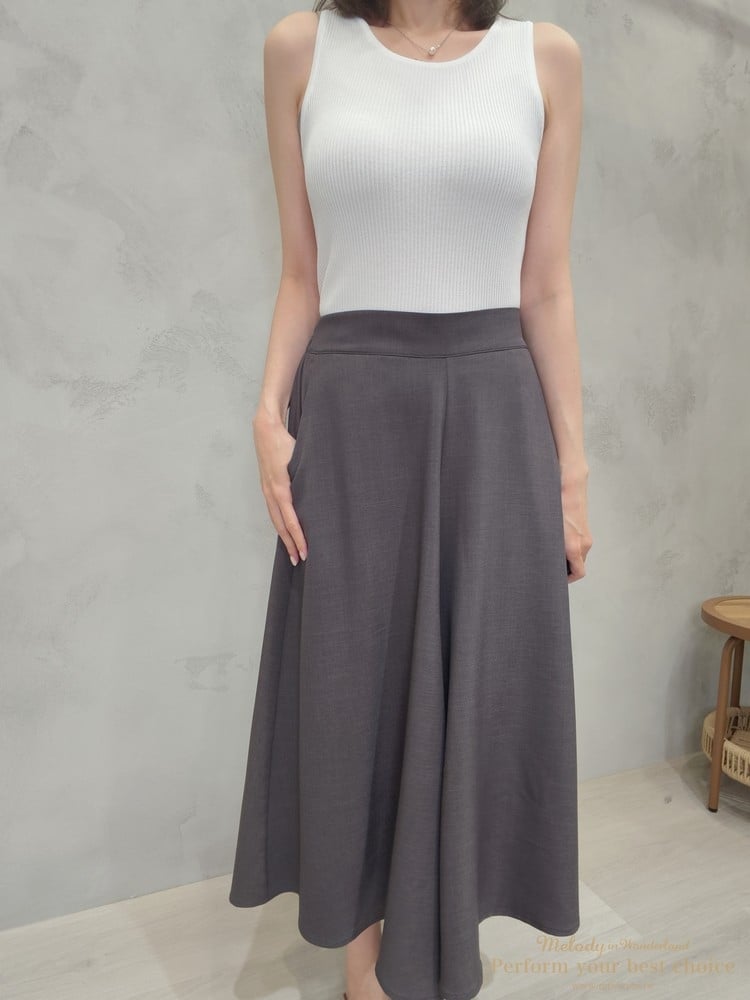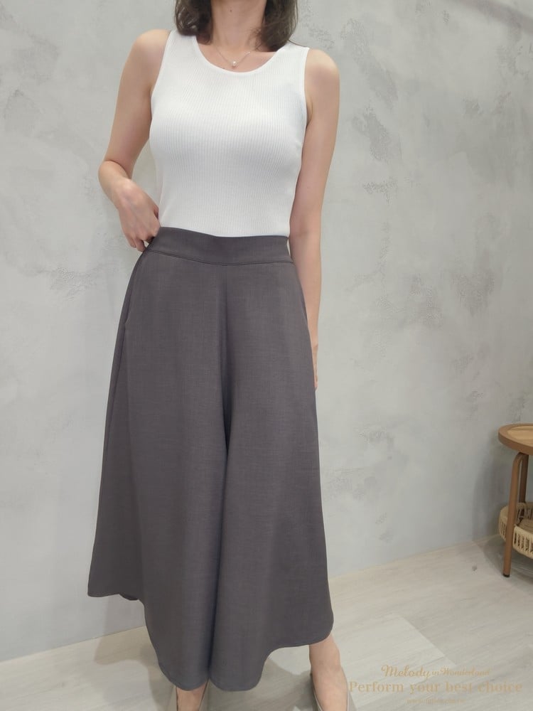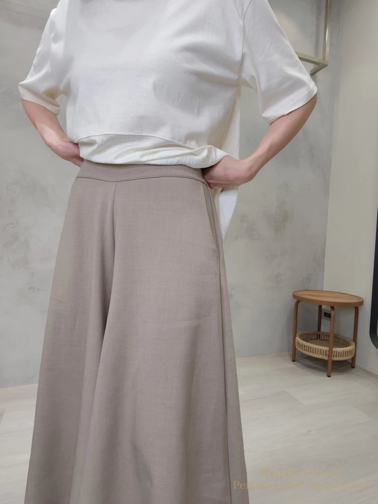 自訂款-簡約修身飄逸寬褲裙(4色)