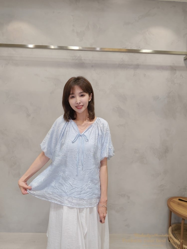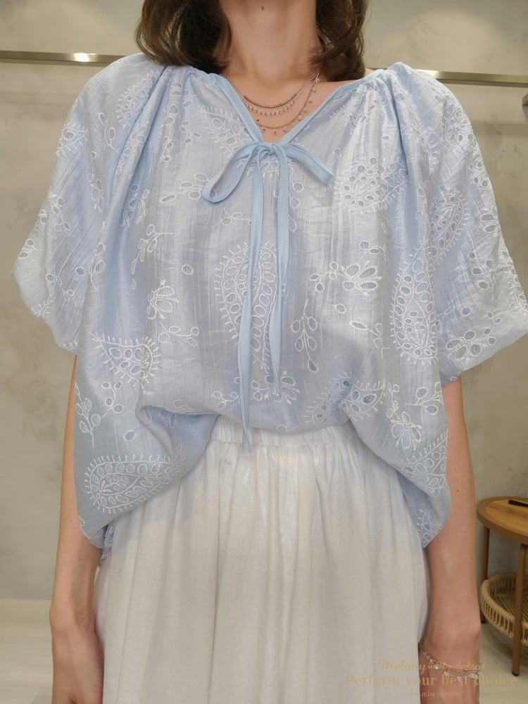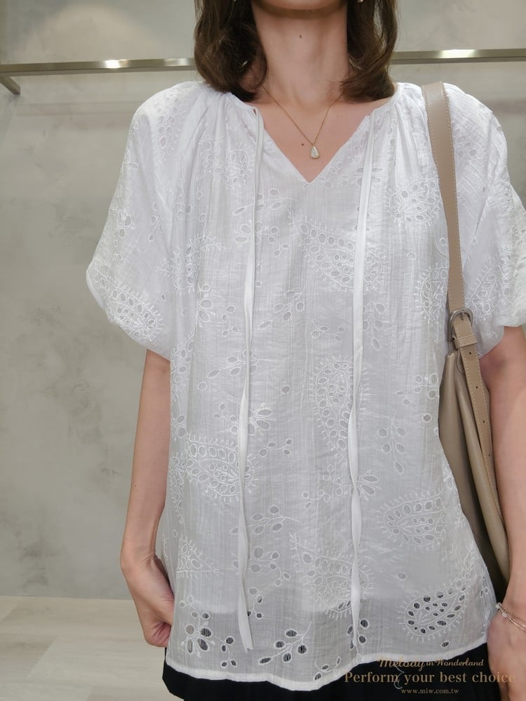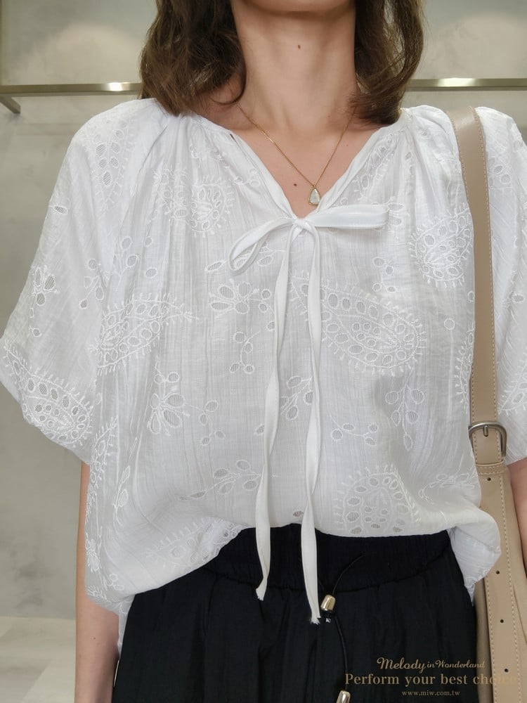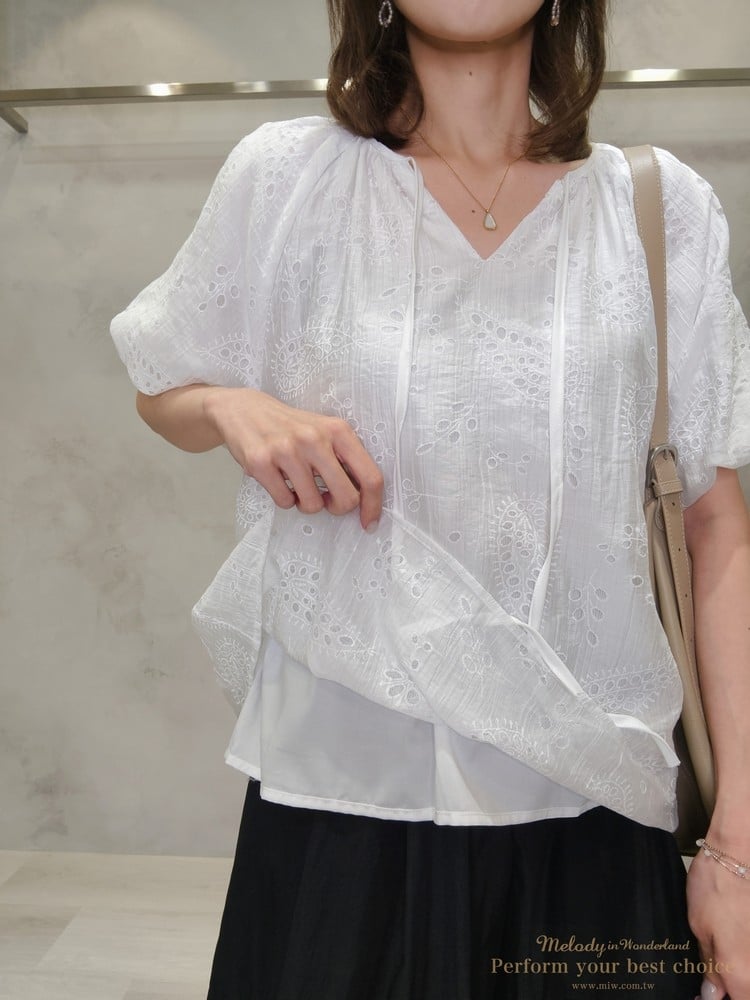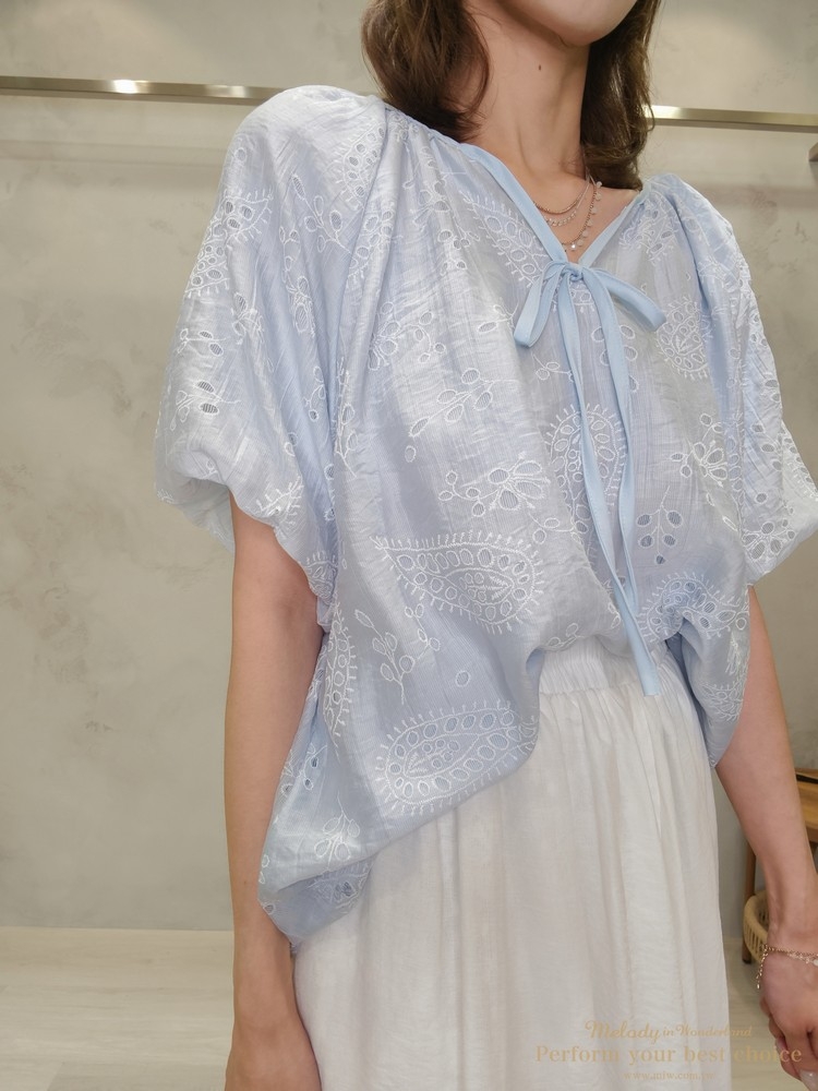 2605-006 質感變形蟲簍空圖騰袖擺造型上衣(3色)