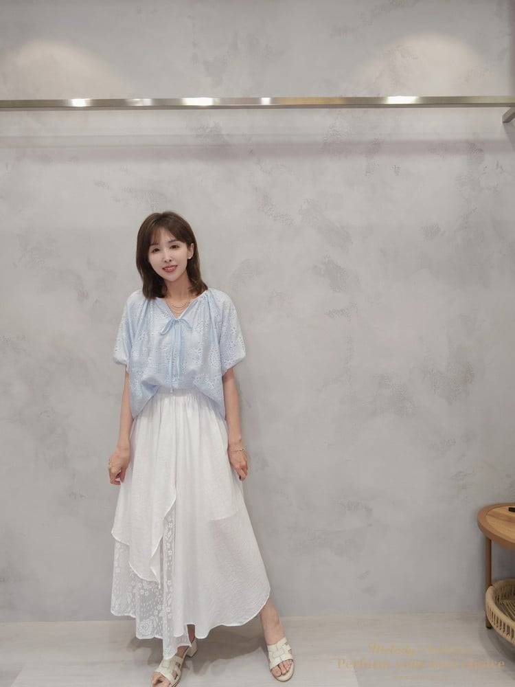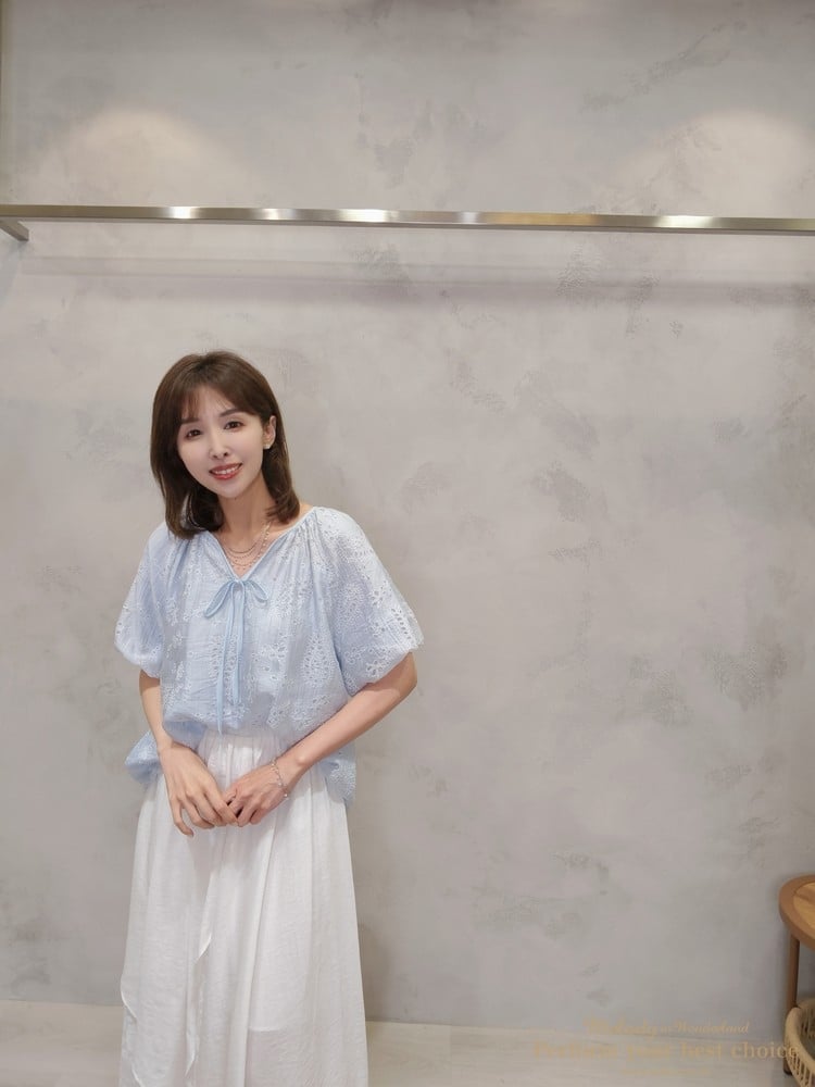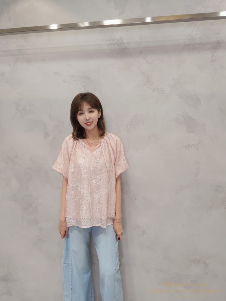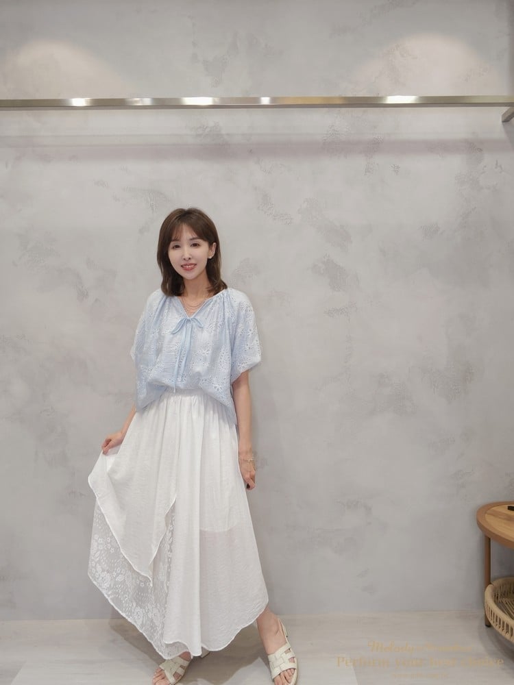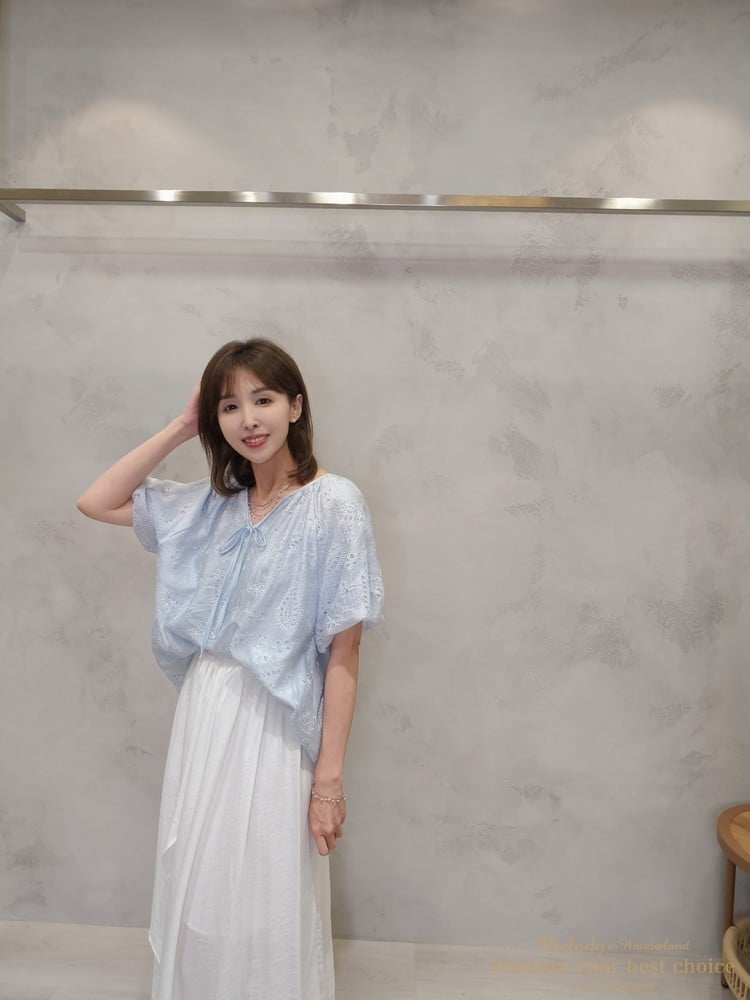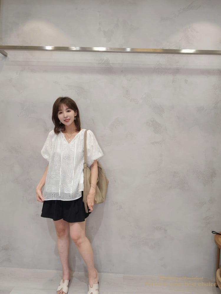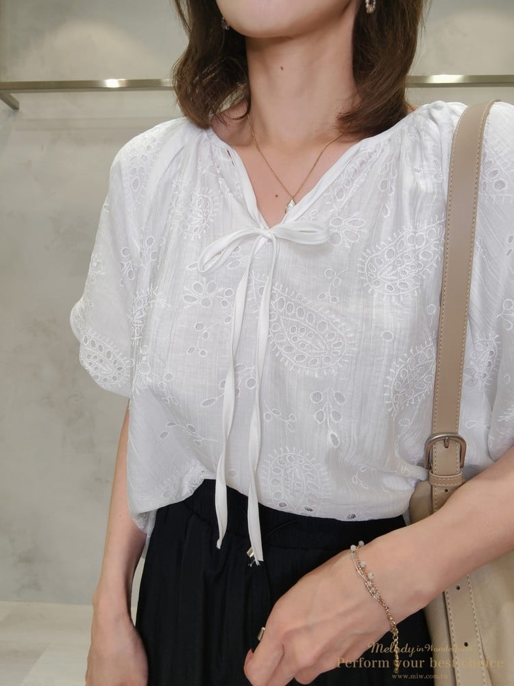 2605-006 質感變形蟲簍空圖騰袖擺造型上衣(3色)