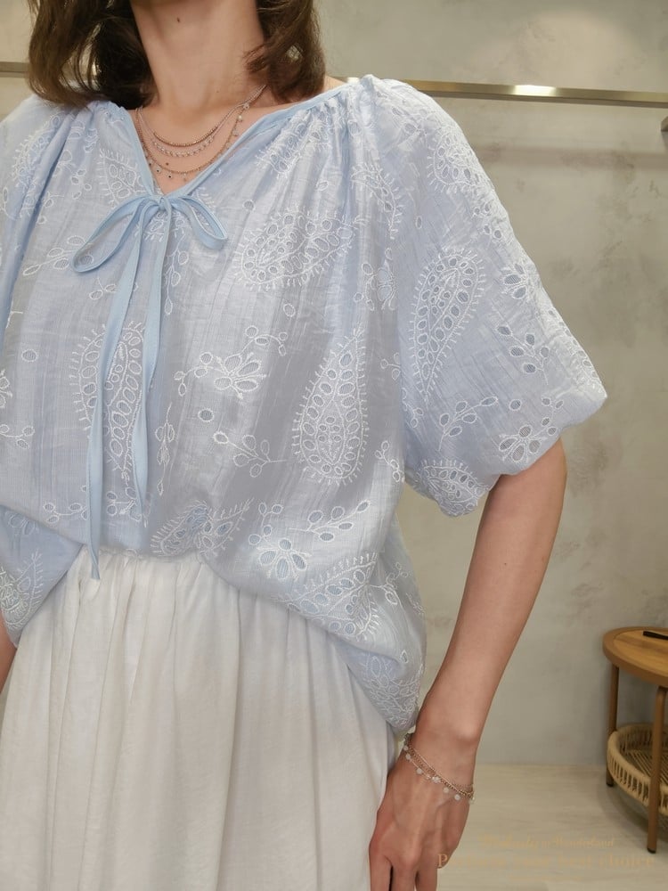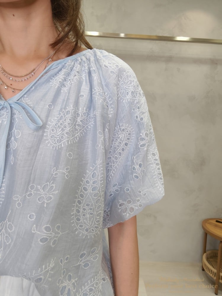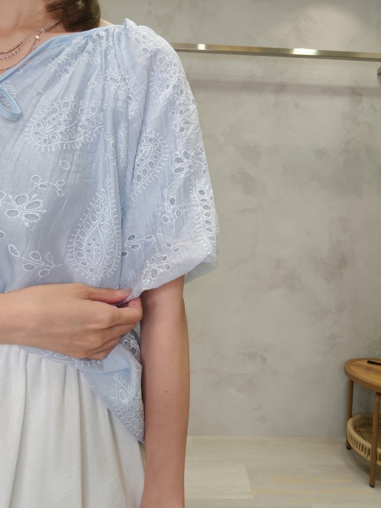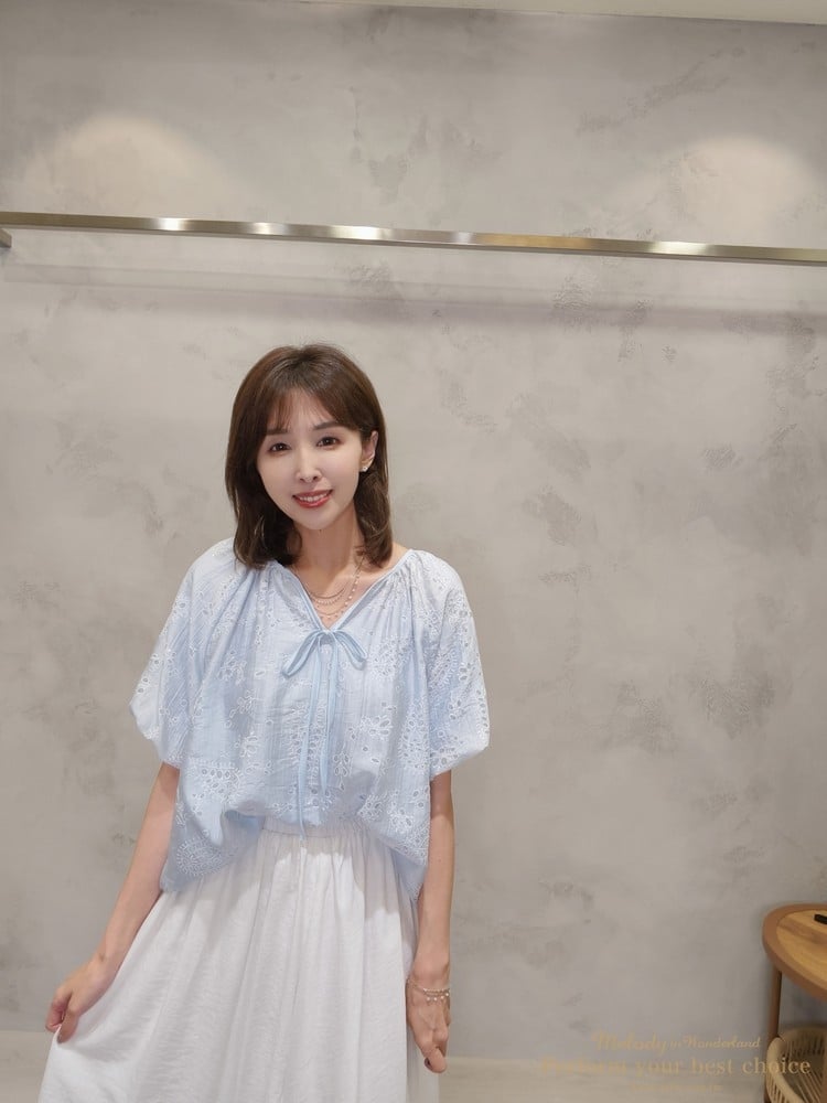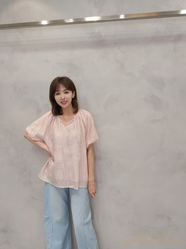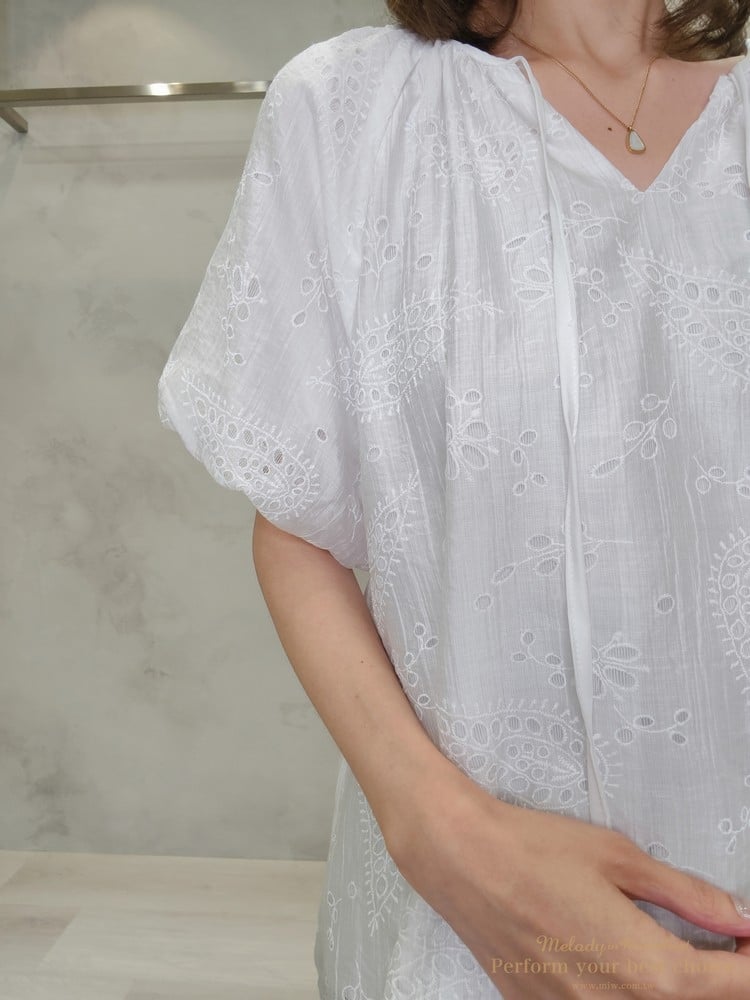 2605-006 質感變形蟲簍空圖騰袖擺造型上衣(3色)