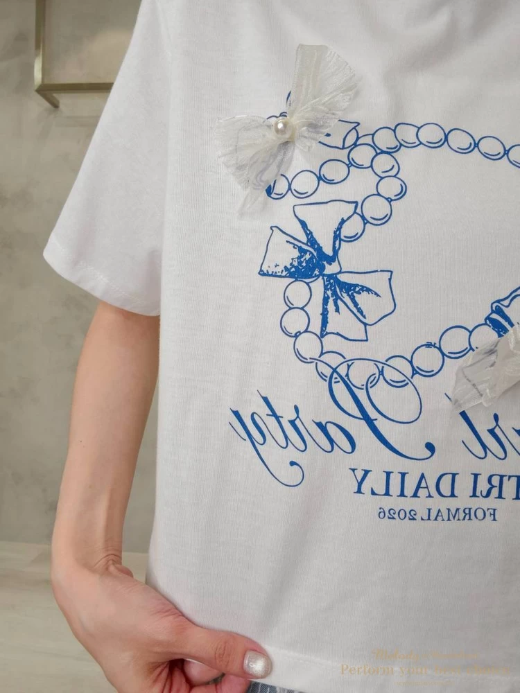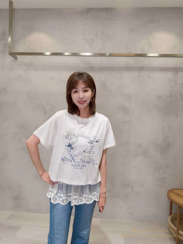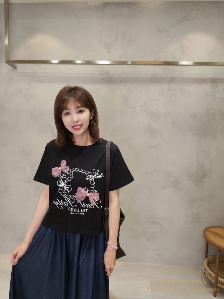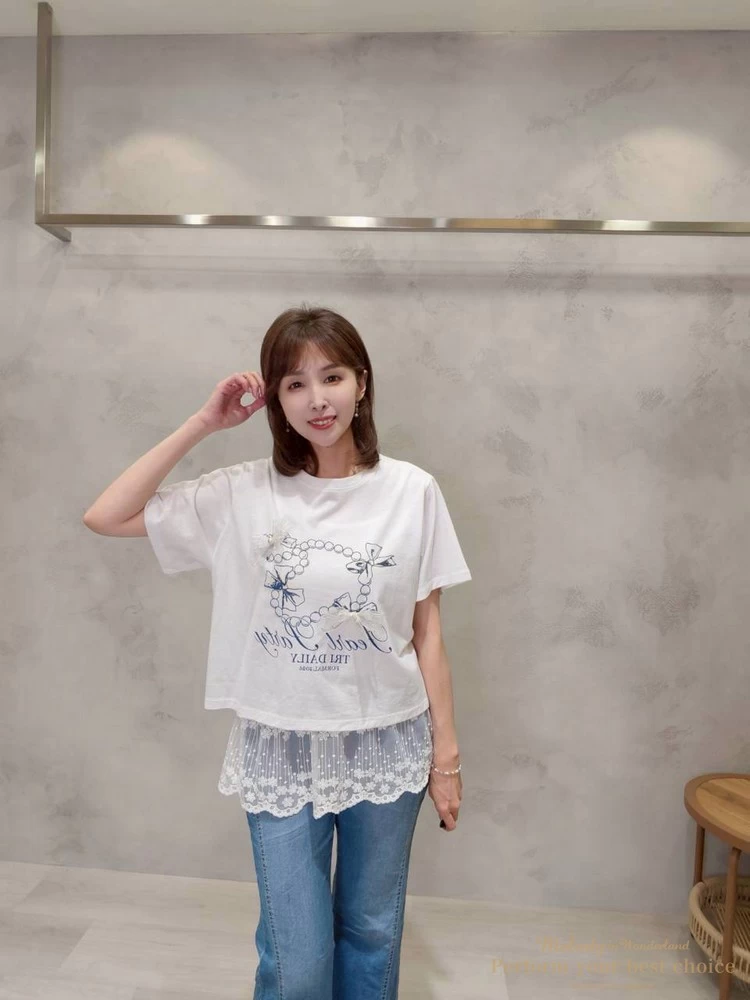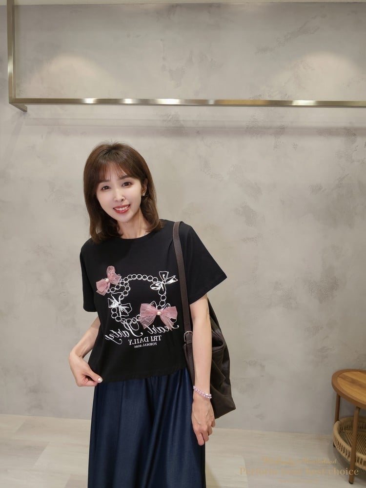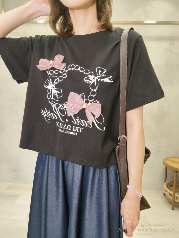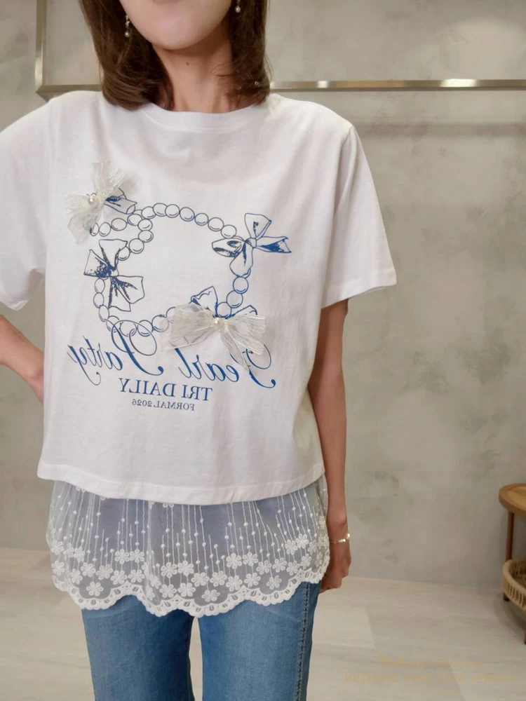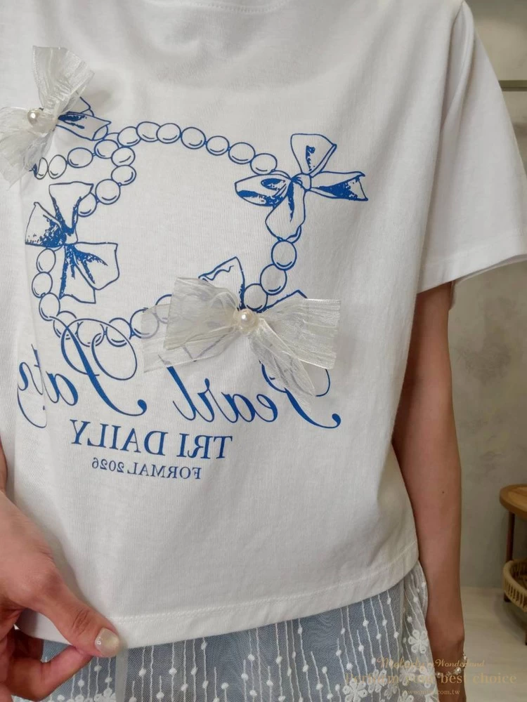 立體蕾絲蝴蝶結項鍊上衣(3色)
