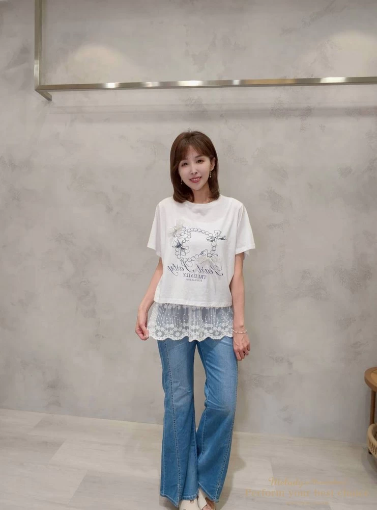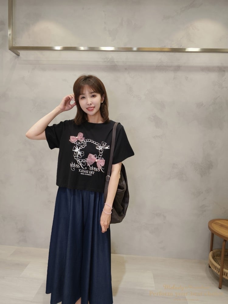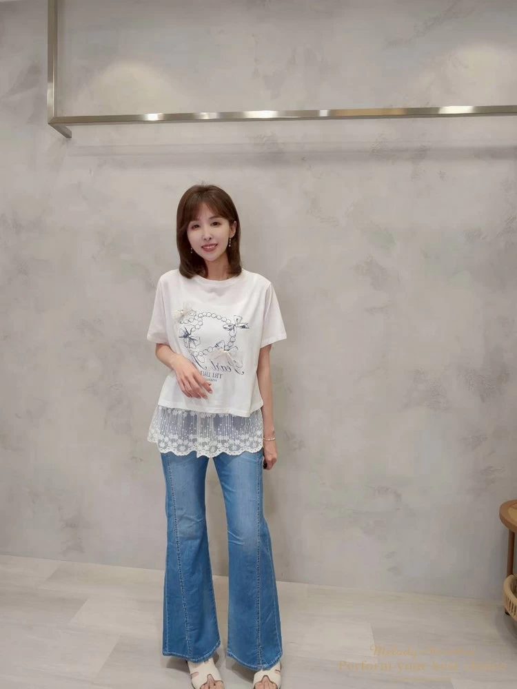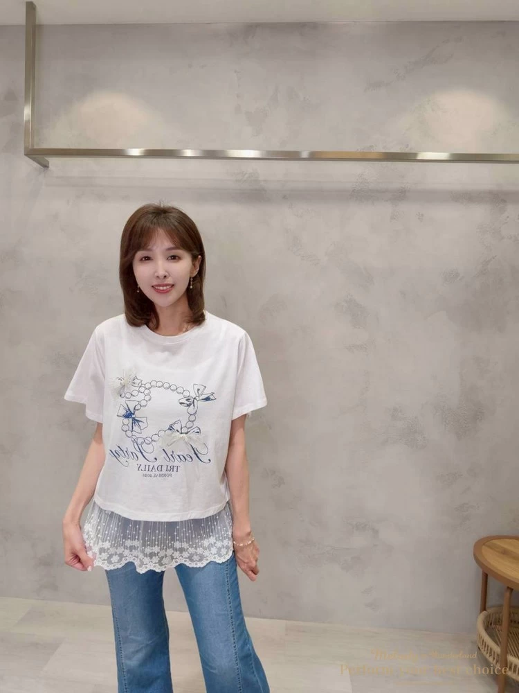 2605-033 立體蕾絲蝴蝶結項鍊上衣(3色)